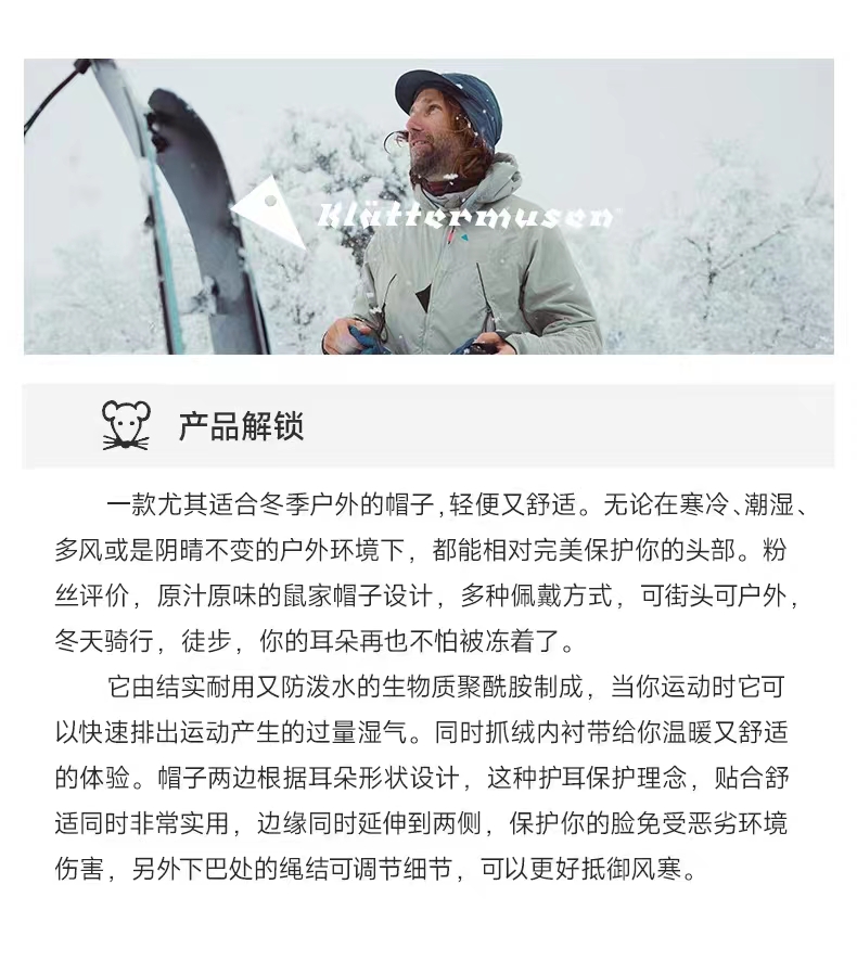 KLATTERMUSEN/攀山鼠秋冬户外防风加绒软壳帽子(财富指环)10065