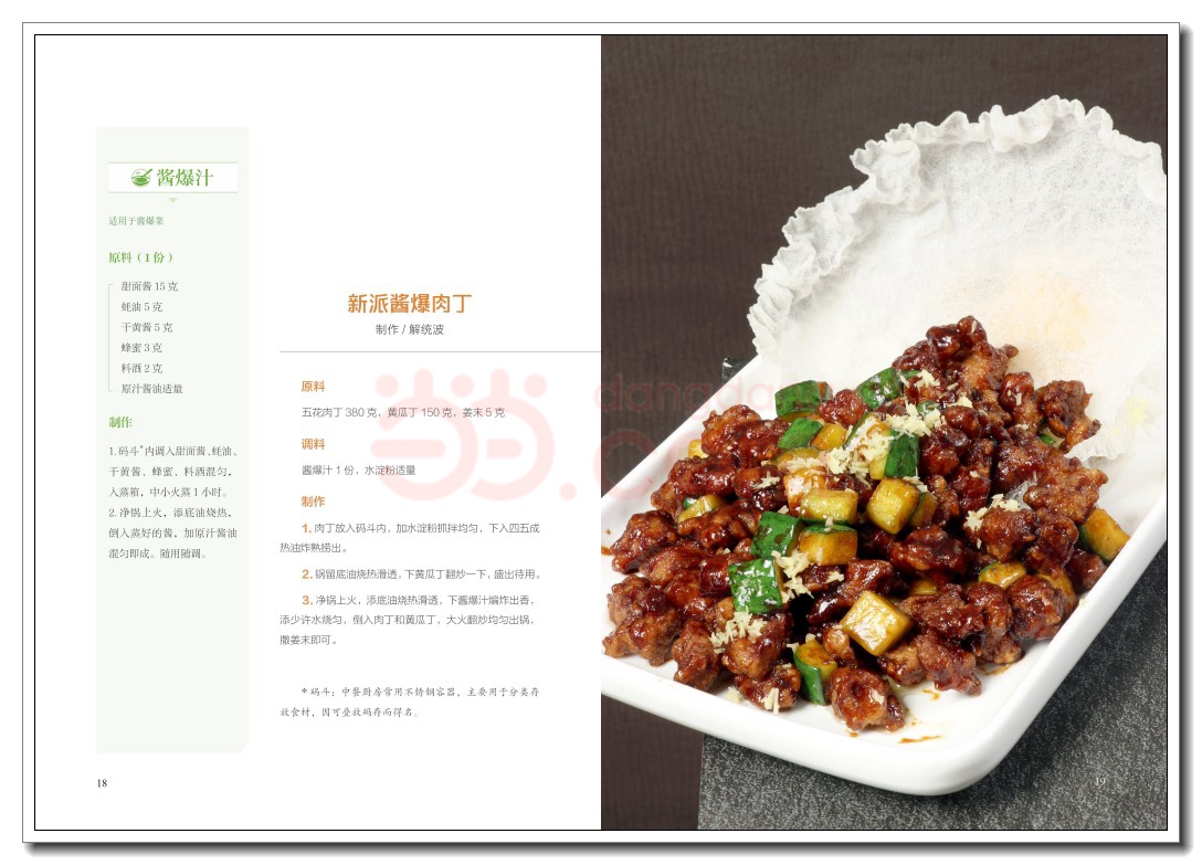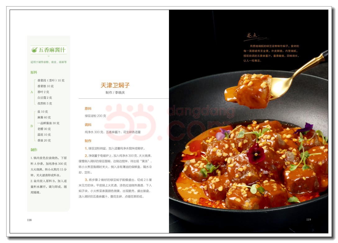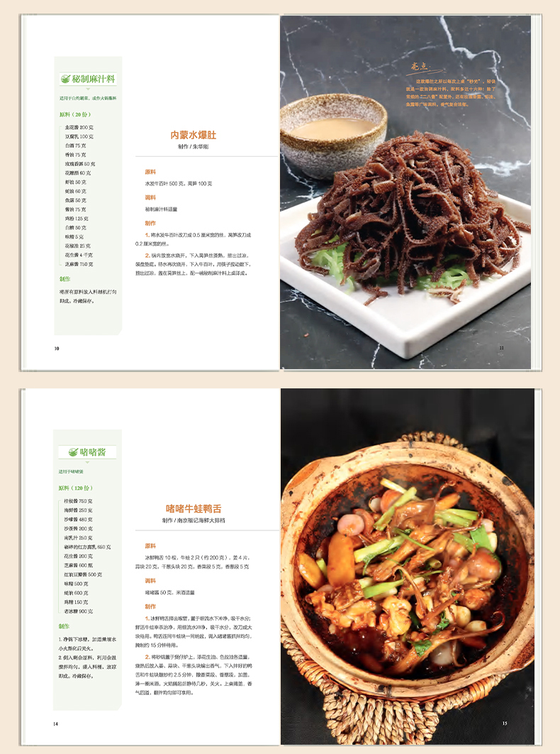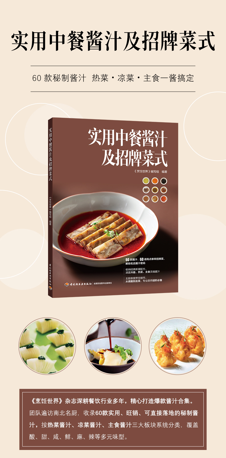 若食材为骨肉,那酱汁便是灵魂,是串联味觉的纽带,决定菜品风味走向与最终呈现。无论是中餐还是西餐,酱汁都在烹饪过程中占据着至关重要的地位,或提高走菜速度,或放大食材优势,或稳定成菜标准于厨师而言,一款成熟的酱汁便是一件法宝。《烹饪世界》编辑部遍访南北各地,搜罗了60 款常用、实用且旺销的酱汁,从中餐入手,将其系统梳理为三大板块热菜酱汁、凉菜酱汁与主食酱汁,其中涉及味型多样,包括酸辣味、酸甜味、咸鲜味、甜辣味、香辣味、麻辣味等。这些配方中既囊括了经典的椒麻酱、香辣汁、剁椒酱、啫啫酱,又收录了当下流行的黄椒酱、海鲜捞汁、醉汁、香槟汁等,为读者朋友呈现一幅清晰而广阔的味觉地图,每款皆配以菜式实拍图,将核心技艺与实战应用一网打尽。辽阔的地域赋予了中餐酱汁取之不尽的灵感源泉和琳琅满目的味觉载体,每款酱汁和招牌菜,皆是来自五湖四海的珍贵馈赠。打开这本书,邂逅鲁菜酱汁的酱香咸鲜、回味悠长,领略粤菜酱汁的清鲜和醇、原汁原味,感受川湘酱汁的麻辣鲜香、酣畅淋漓,体会江南酱汁的婉约甜润、精致细腻 无论是鸡鸭水产的鲜嫩、牛羊猪肉的丰腴,抑或是时蔬的清爽脆嫩、瓜果的鲜甜多汁,都可在书中找到与之完美契合的酱汁良伴,无论是借鉴思路还是捕捉灵感,本书都是厨师朋友们当仁不让的选择。酱香袅袅,滋味悠长。翻开这本书,开启与中餐酱汁的深度对话,让每一次烹饪,都成为一次通往至味的探索之旅。金无足赤,疏漏难免。本书如有不准确、不全面之处,欢迎批评指正,便于我们修改订正,使其日臻完善。