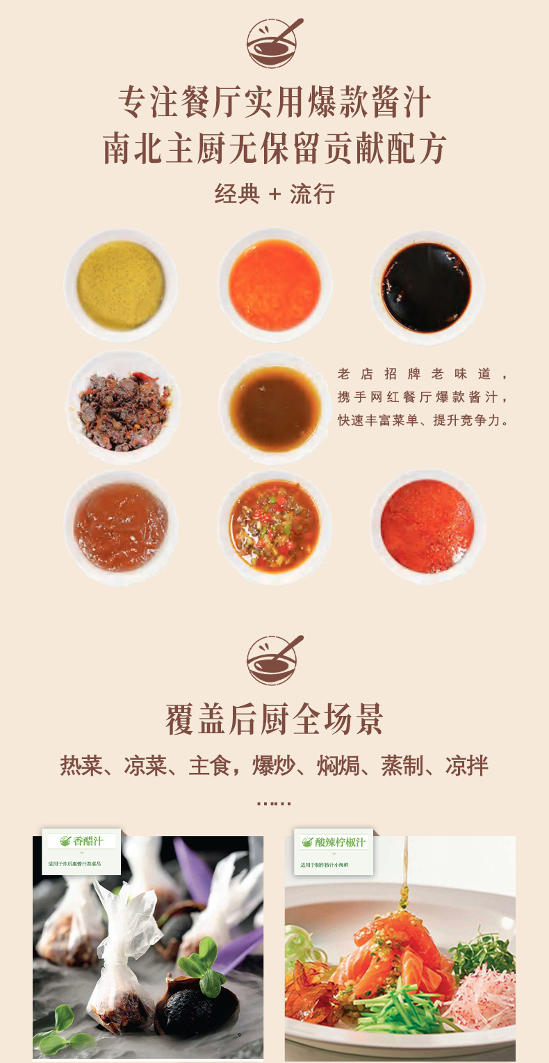 《实用中餐酱汁及招牌菜式》聚焦中餐酱汁,精选 60 款实用旺销配方,分为热菜、凉菜、主食酱汁三大板块,涵盖酸辣、酸甜、咸鲜、香辣、麻辣等多元味型。既有经典的椒麻、剁椒、啫啫酱,也收录流行的黄椒、醉汁、香槟汁等,适配肉类、水产、时蔬及各类主食。每款酱汁搭配实战菜式,清晰呈现制作要点与风味特点,融汇南北风味,助力稳定出品、提升效率,是厨师提升技艺的实用宝典。