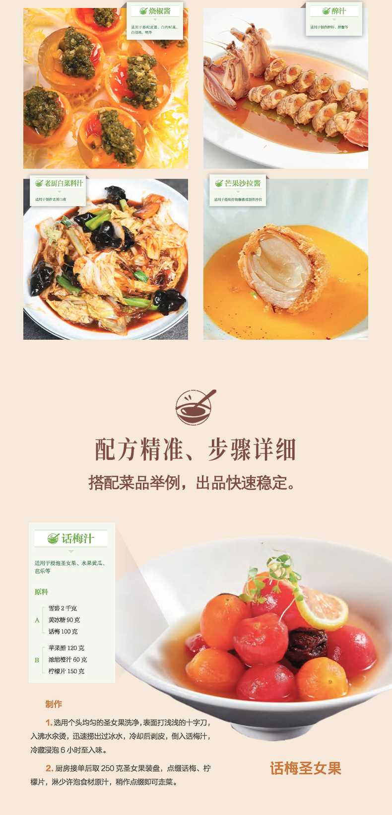 第一章 沸腾滋味:热菜酱汁家禽家畜烧烤风味汁| 火焰牛肉酒香汁| 青柠香酥雪花牛肉蒜爆酱汁| 蒜爆羊肉香醋汁| 黑蒜脆椒牛肉粒秘制麻汁料| 内蒙水爆肚煲仔酱| 古法双冬焖山羊啫啫酱| 啫啫牛蛙鸭舌压锅酱| 卤肉黄金勾酱爆汁| 新派酱爆肉丁蒸排骨料汁| 贝贝南瓜蒸排骨爆炒腰花料汁| 爆炒腰花烧肉姜汁| 姜汁烧肉玫瑰糖醋汁| 玫瑰锅包肉压锅猪手酱| 珐琅锅啤酒猪手炒鸡料汁| 秘制炒鸡复合辣酱| 油泼虎皮凤爪藤椒卤汁| 藤椒凤爪辣子鸡酱| 招牌辣子鸡水产青椒酱| 青椒酱沙窝焗黄鱼剁椒酱| 剁椒蒸江鳖秘制焗鱼酱| 生焗舟山带鱼糖醋汁| 乔府醋鱼发酵红酸酱| 树番茄酸汤煮花胶筒抽炝汁| 抽炝花螺红油金蒜料| 红油金蒜波士顿龙虾黄椒酱| 永安黄椒蒸老蛏芥末海胆酱| 芥味海胆虾球香辣汁| 香酥带鱼椒麻酱| 椒麻长鱼黄焖酱| 黄焖甲鱼时蔬风味茄子料汁| 风味茄子茄子豆角烧汁| 茄子烧豆角肉末辣酱| 肉香青豆时蔬煲仔酱| 党参焗老南瓜老厨白菜料汁| 老厨白菜第二章 开胃冷盘:凉菜酱汁家禽家畜炝拌汁| 鲜椒炝拌腰花红油蒜泥汁| 白卤蒜泥猪手话梅果醋汁| 话梅汁冰霜贵妃肉鲜椒卤汁| 鲜椒泡猪手白浇汁| 白浇红面鸭捞嗦粉皮酸梅酱| 梅子捞青头鸭烧椒酱| 烧椒溏心皮蛋水产酸辣柠椒汁| 捞拌三文鱼熏鱼汁| 茉莉花脱骨熏鱼鲜味捞汁| 果芹捞汁鱼肚醉汁| 福建老酒醉溏心富贵虾红油汁| 孜香小银鱼芥辣豉油汁| 辣汁乳山生蚝拌鱼汁| 秘制凉拌鱼青花椒酱| 椒麻虾仁时蔬香槟汁| 香槟芭乐果擂辣椒酱| 秘制擂茄子醋椒汁| 醋椒藕条话梅汁| 话梅圣女果芥末沙拉酱| 春日沙拉芒果沙拉酱| 蜂窝炸百合泡椒水| 葱香鲜笋第三章 五谷之道:主食酱汁鸭肉蘑菇酱| 大鸭饭五香麻酱汁| 天津卫焖子粉皮料汁| 五彩粉皮