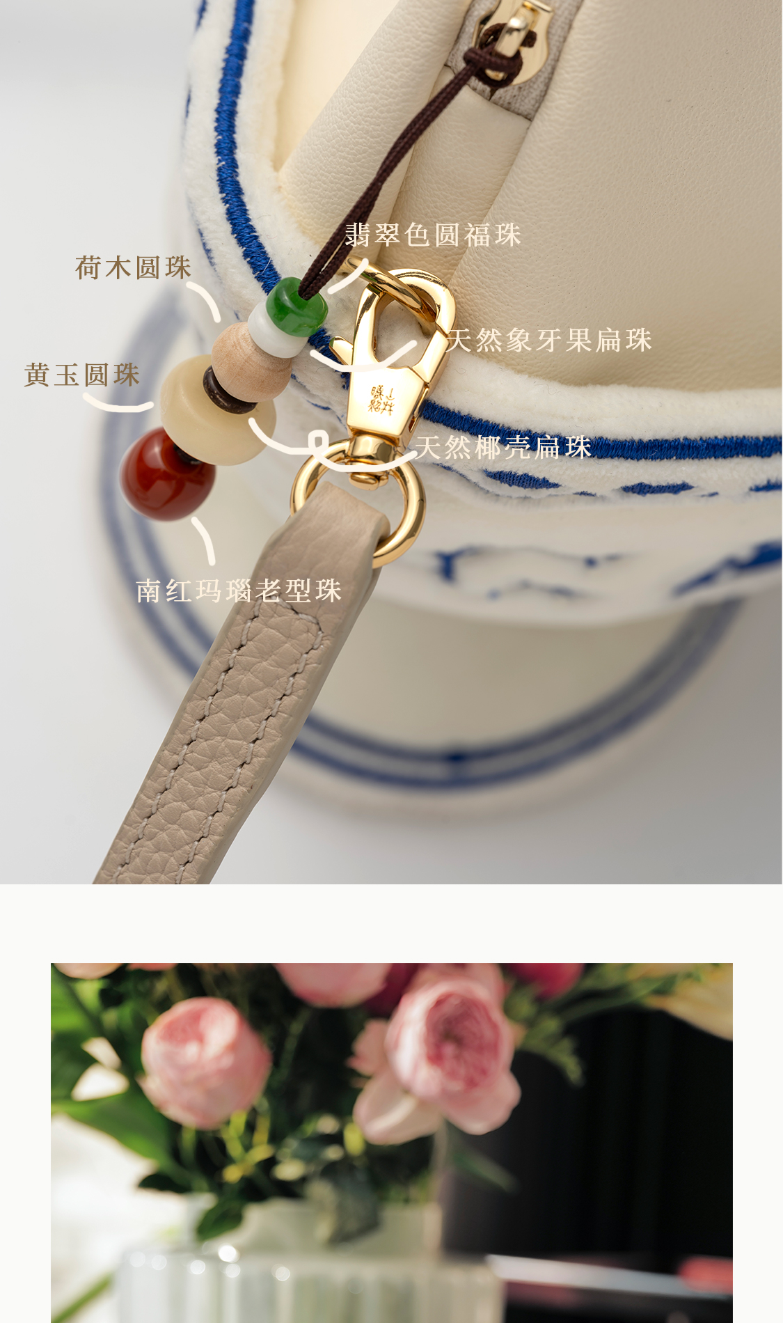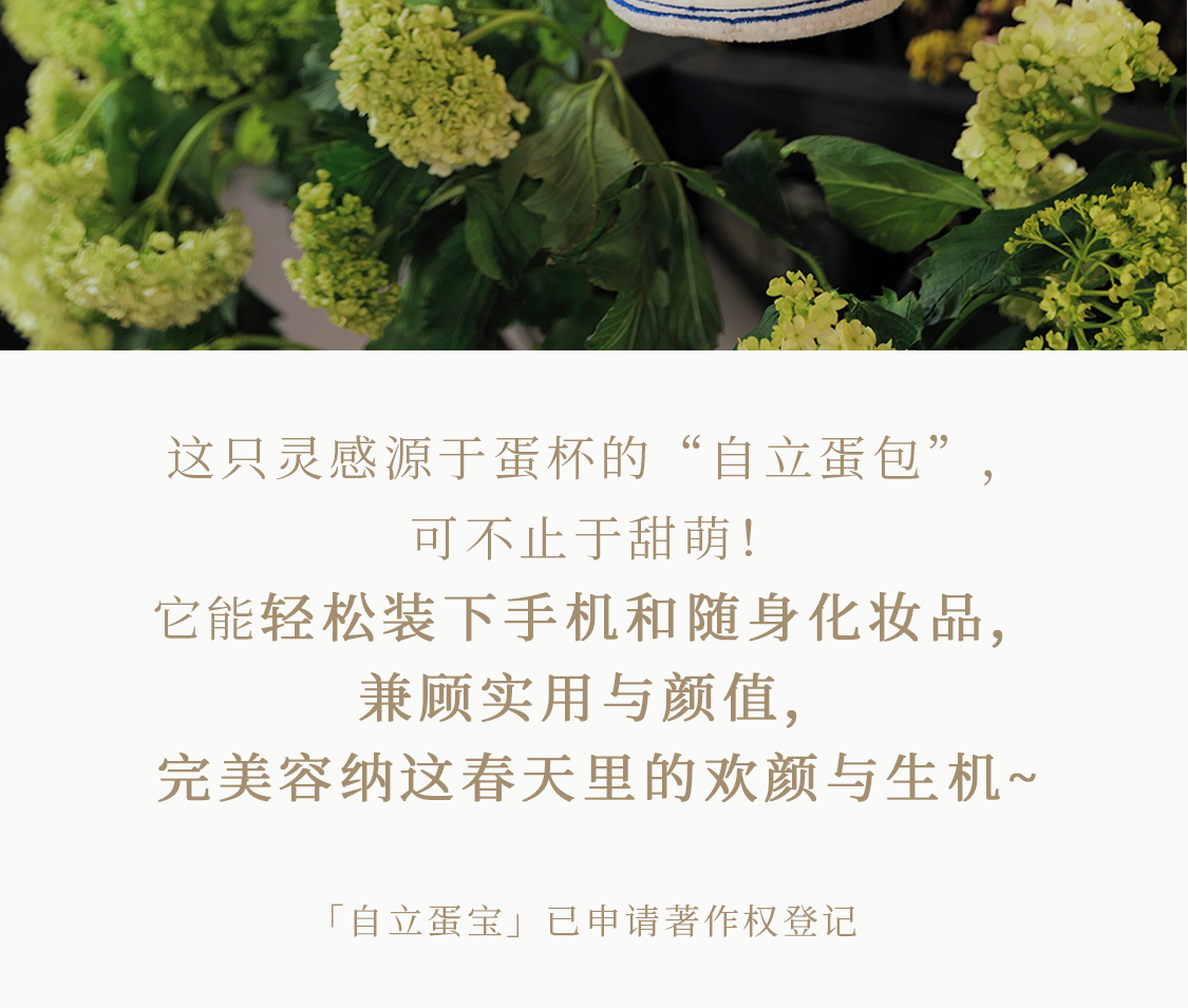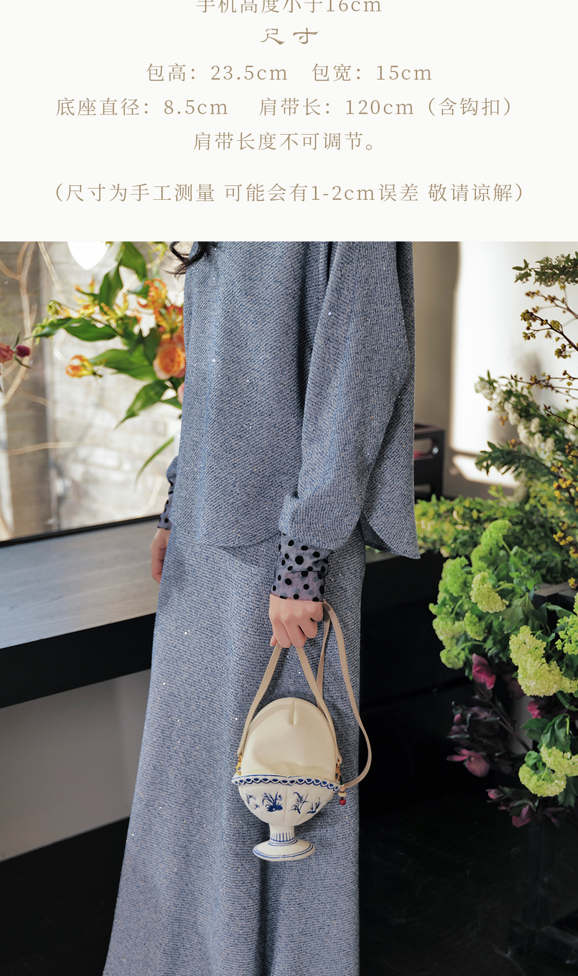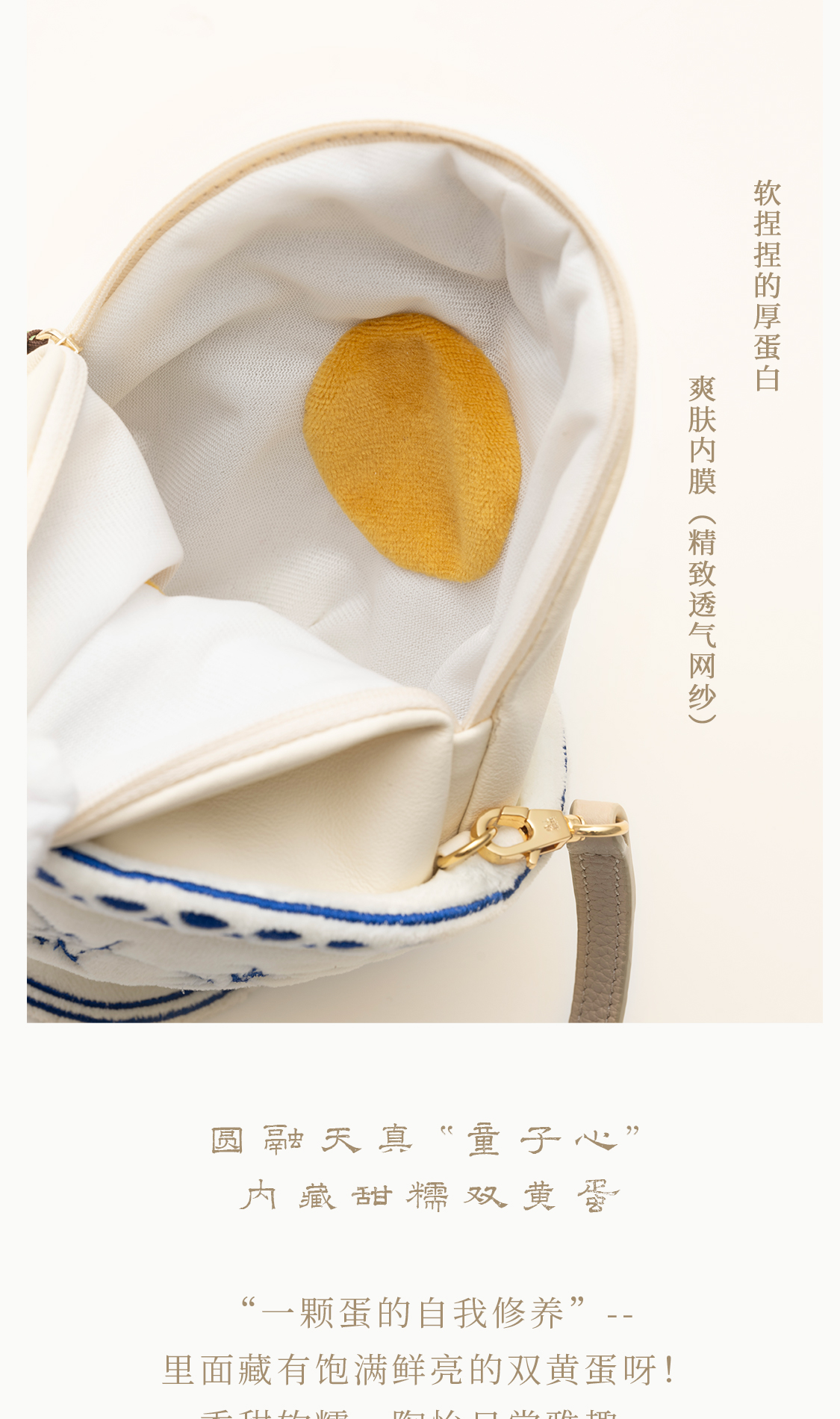 自立蛋宝 丝绒刺绣软牛皮 青花瓷杯双黄蛋小挎包 山林曦照
