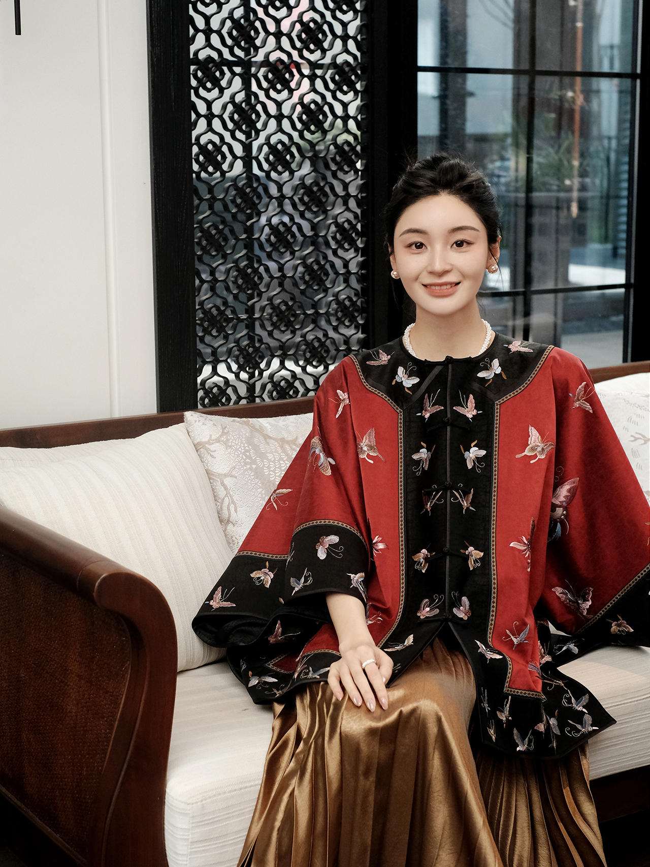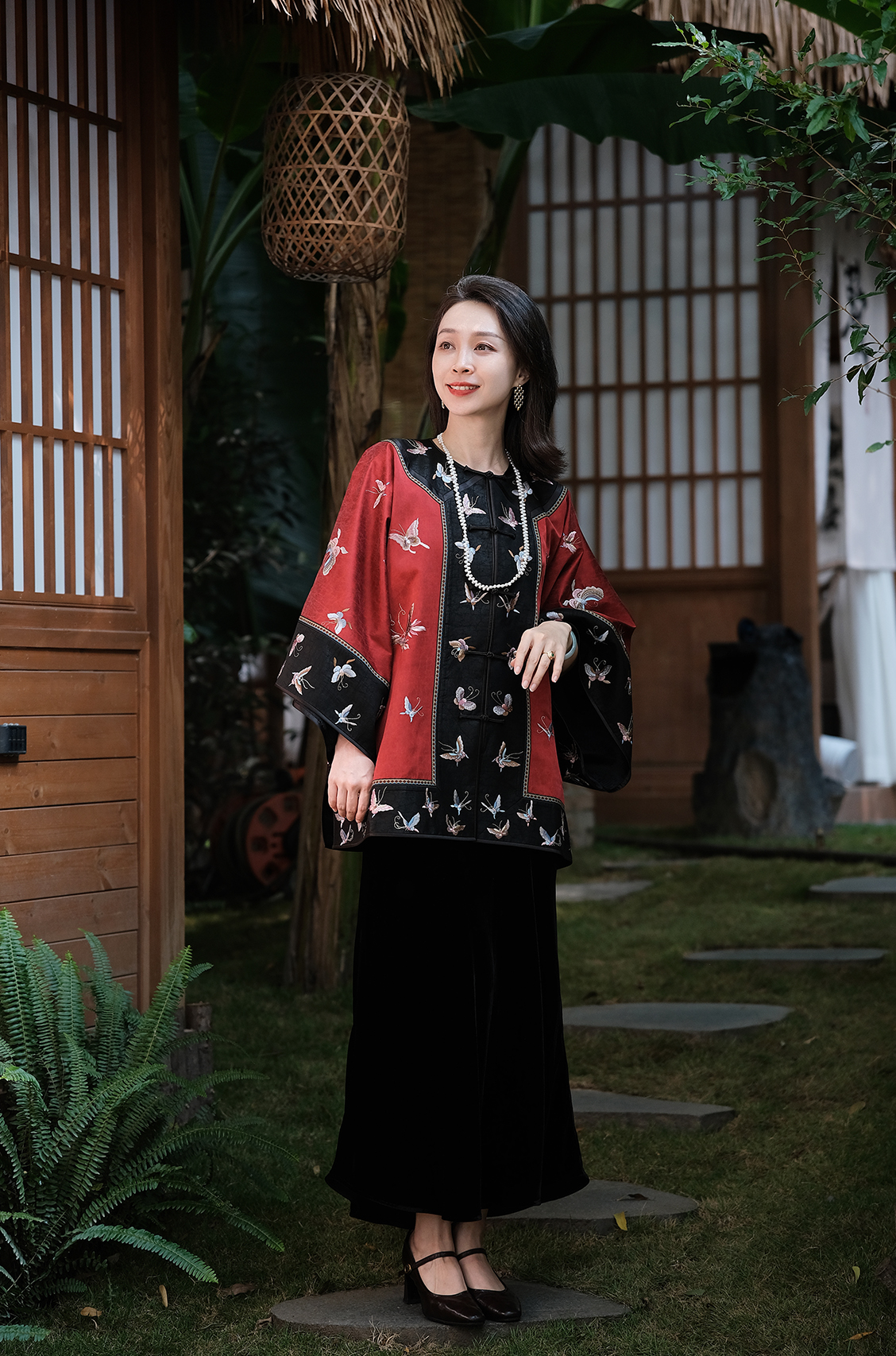 盛唐牡丹盛奢系列 | 手推绣蝴蝶对襟上衣