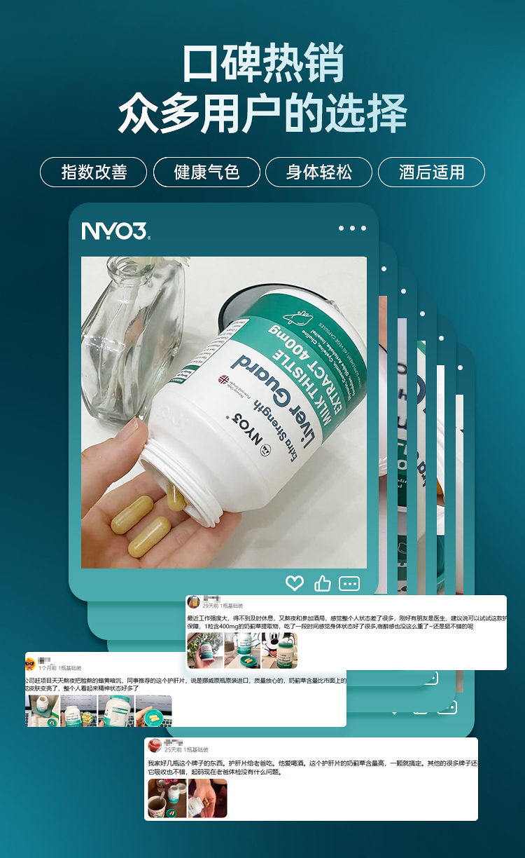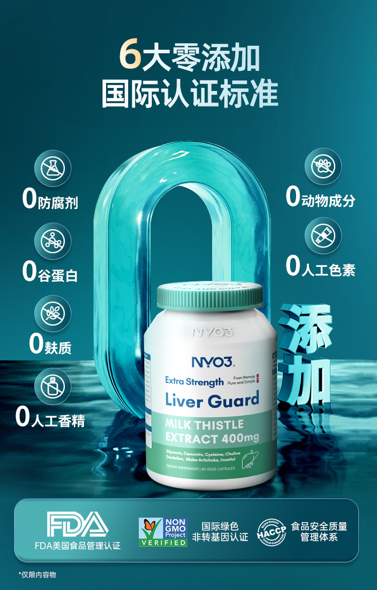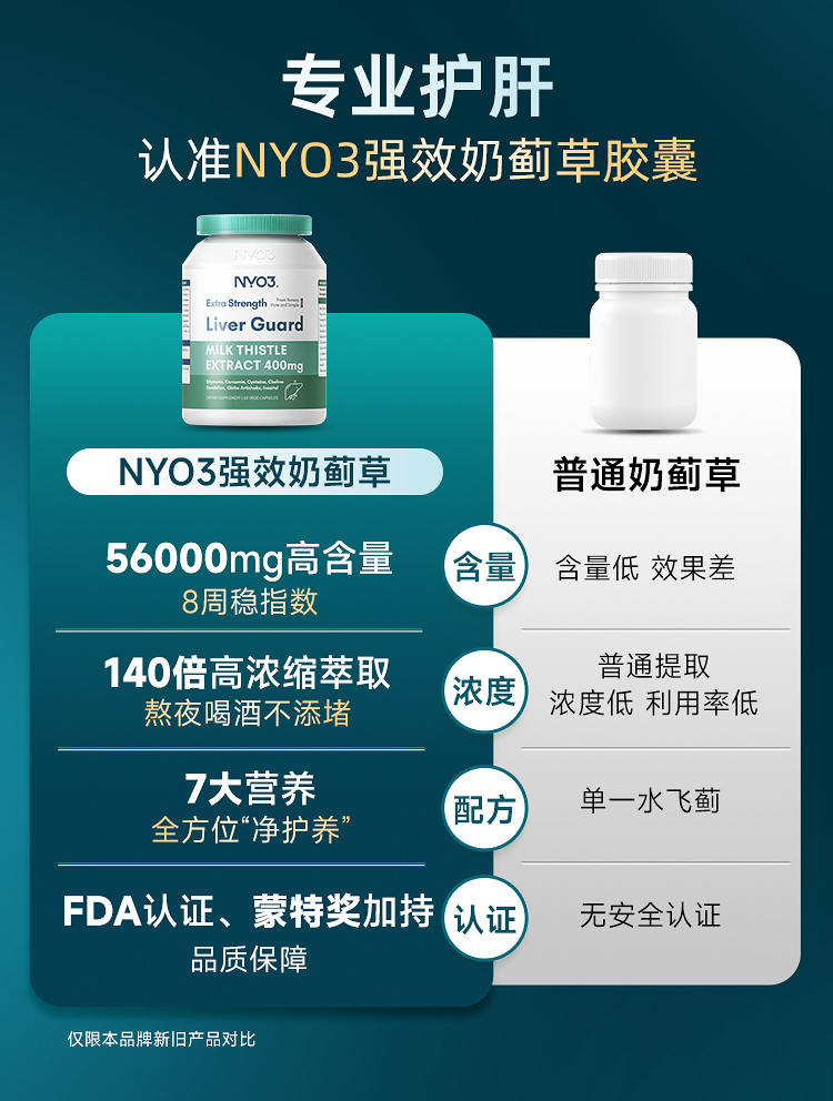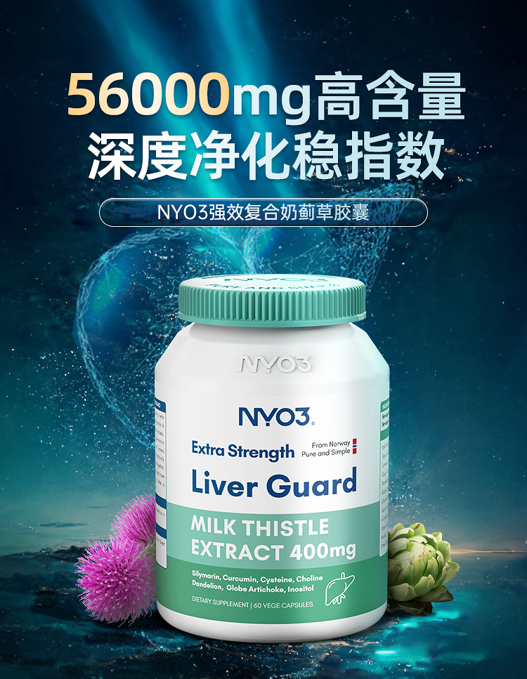 NYO3诺威佳官方旗舰店护肝片140倍奶蓟草小绿盾水飞蓟素加班熬夜应酬保健60粒