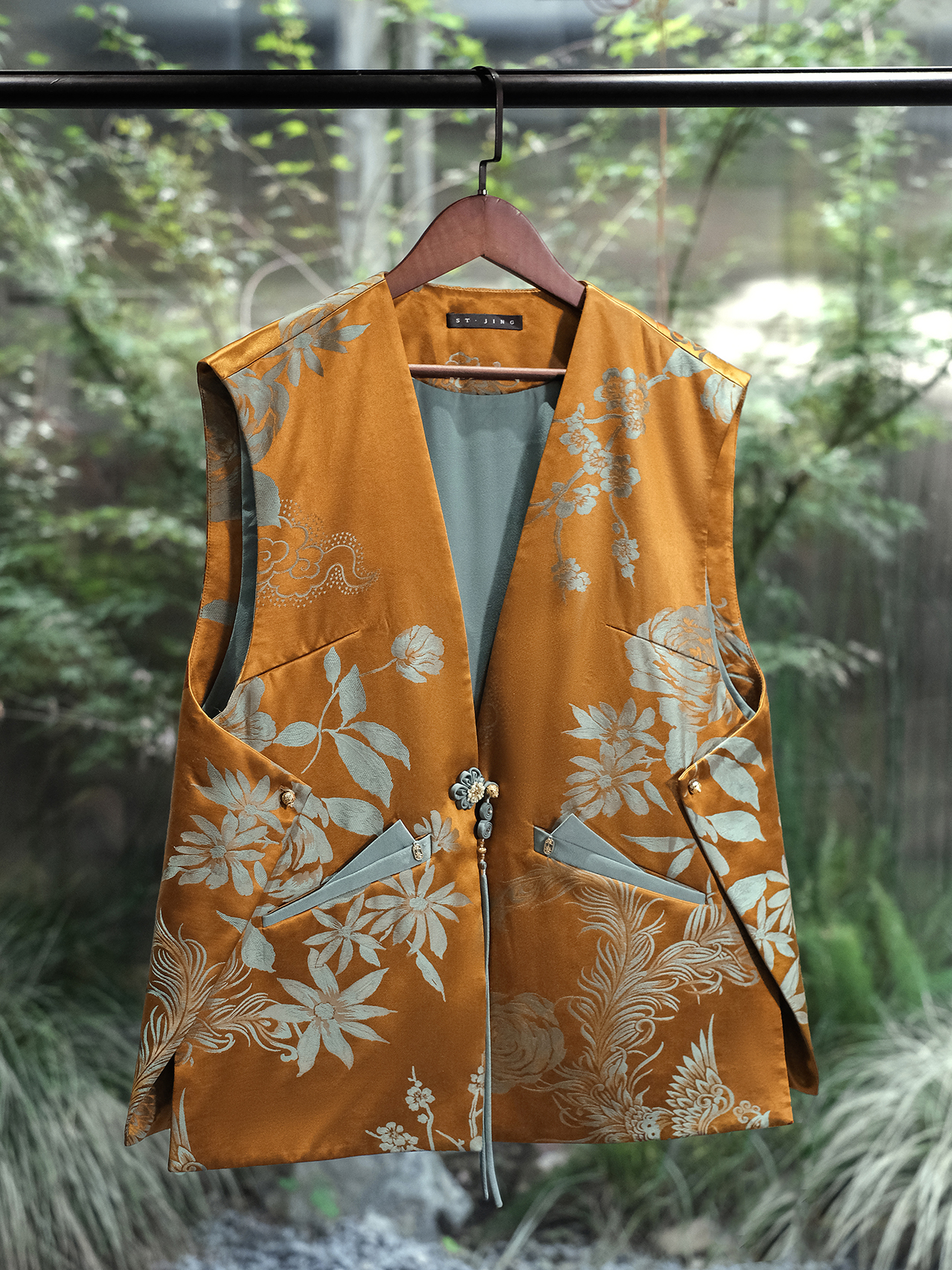 盛唐婧 | 轻奢时尚新中式老缎重工花扣马甲