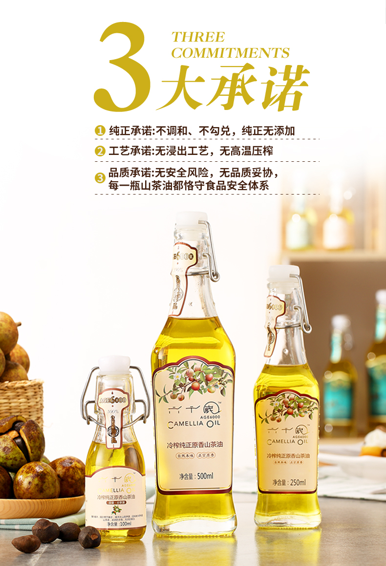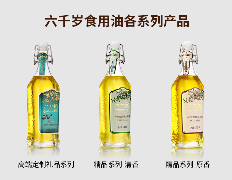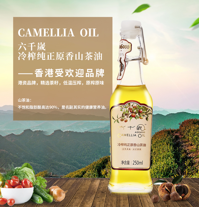 香港最受欢迎品牌 送礼佳品-健康营养油 六千嵗传统压榨山茶油 礼盒装250ml*6
