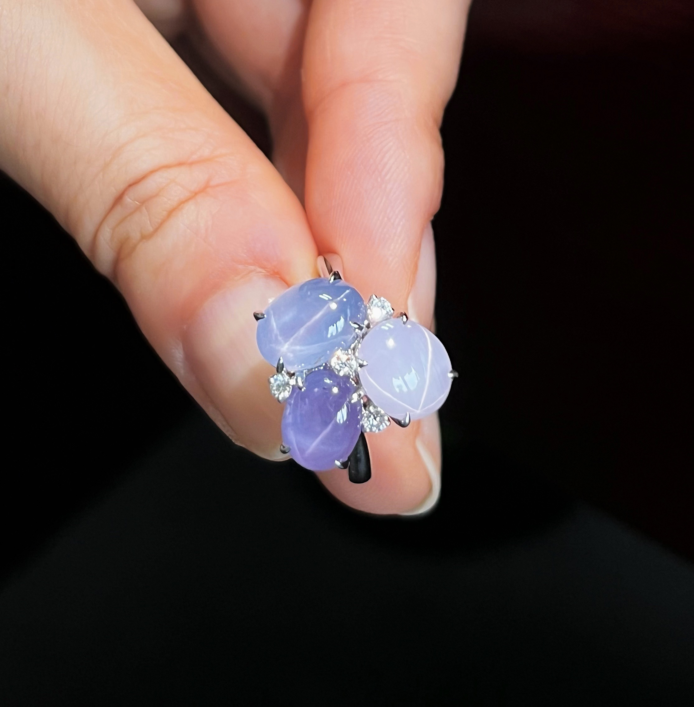 作品名称:18K镶钻石和天然星光蓝宝石戒指