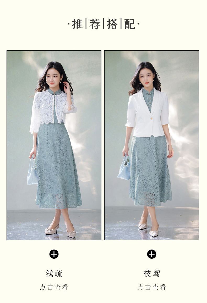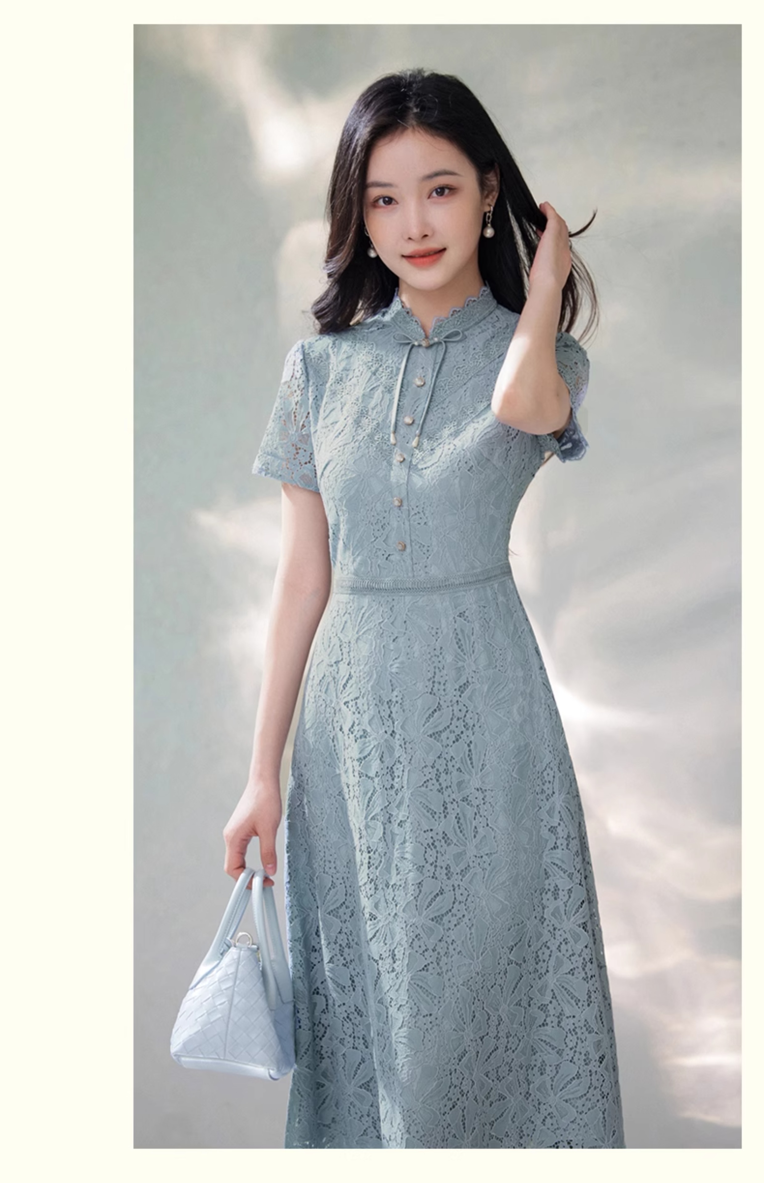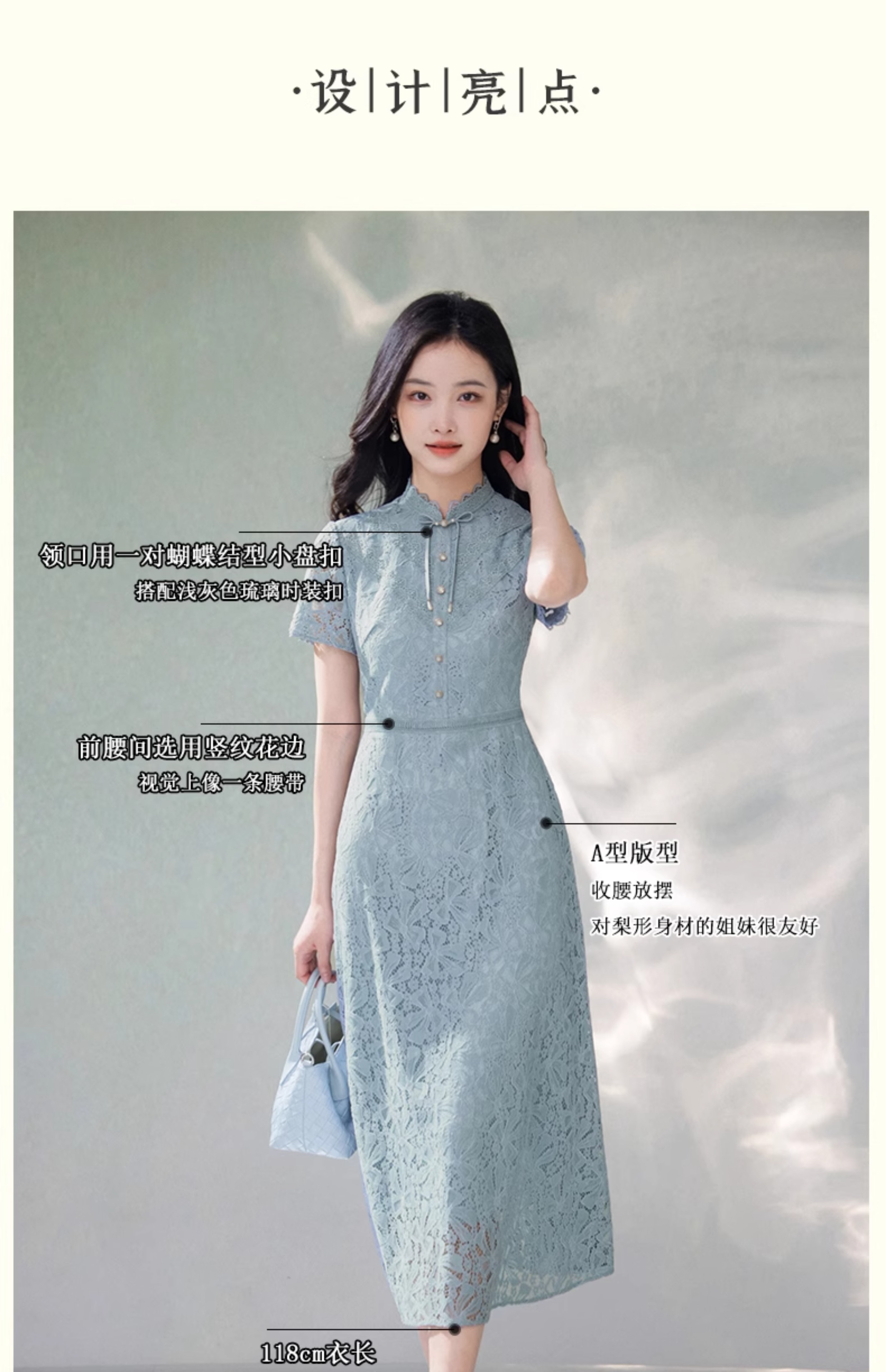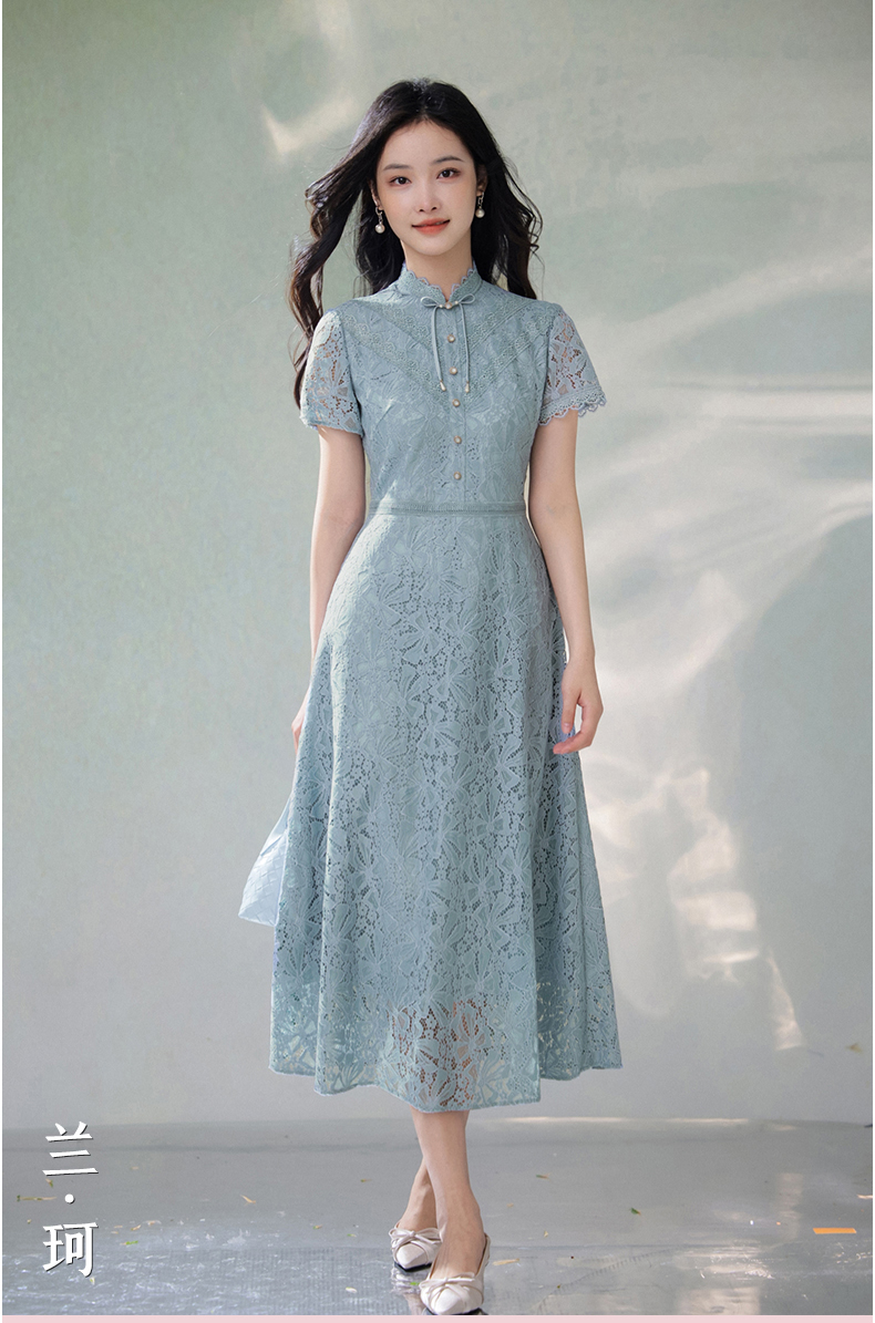 逸红颜兰珂2025夏新款学院风骨线蕾丝A摆新中式气质复古连衣裙女