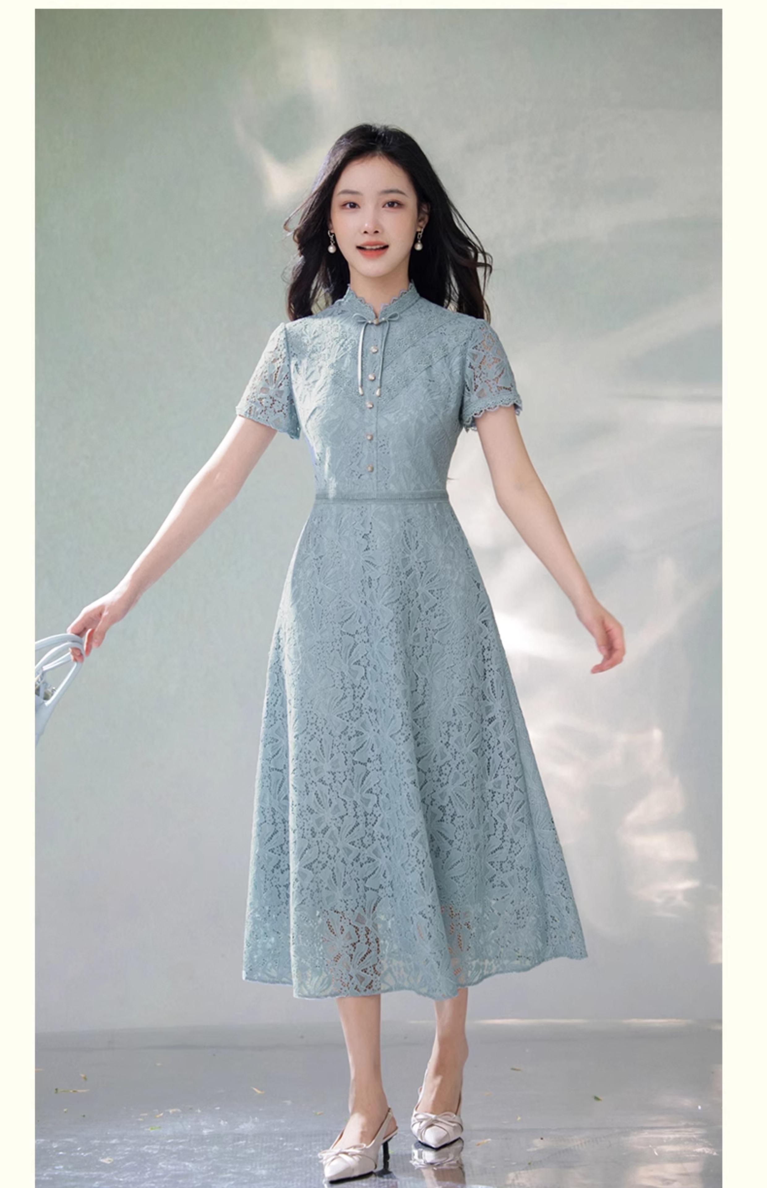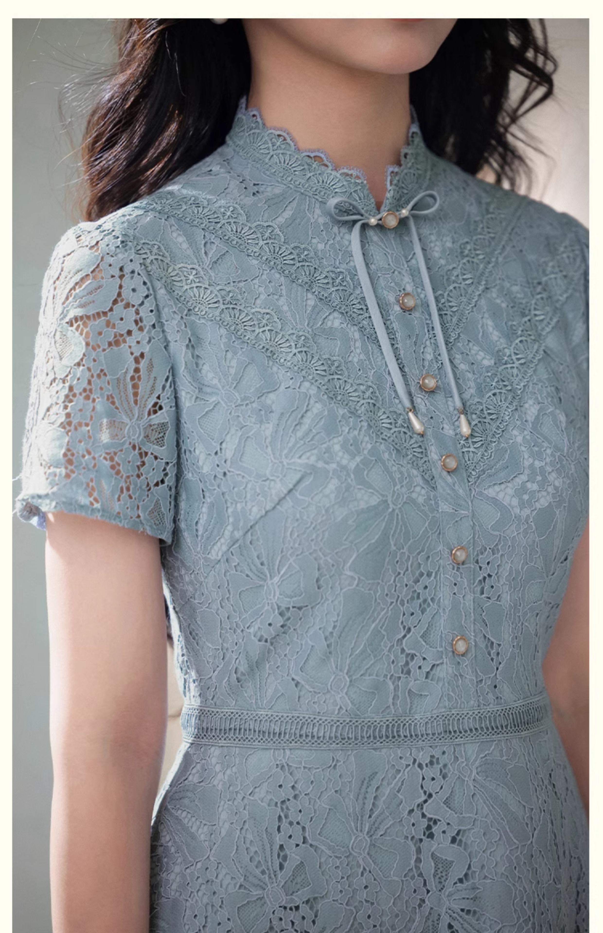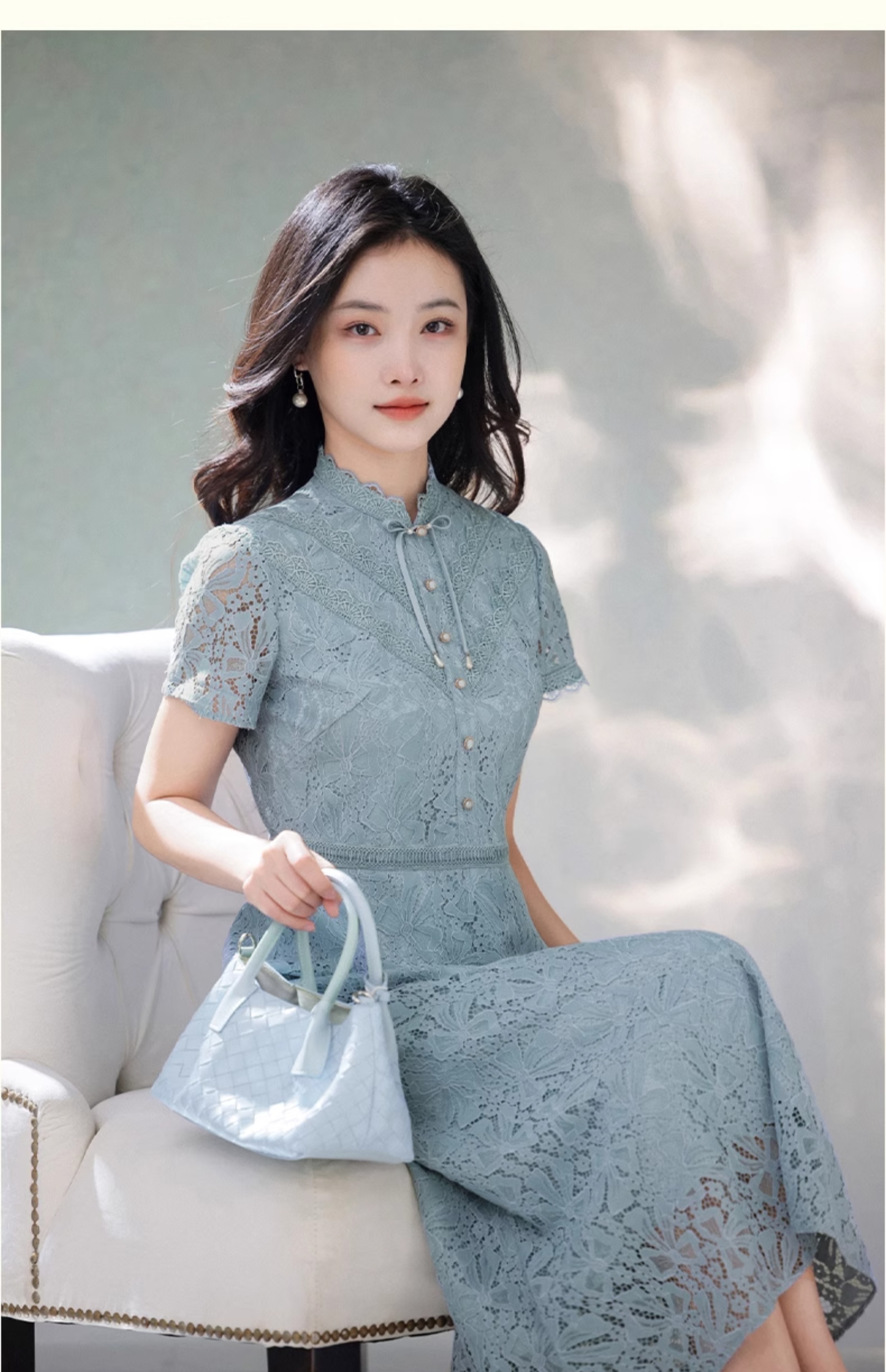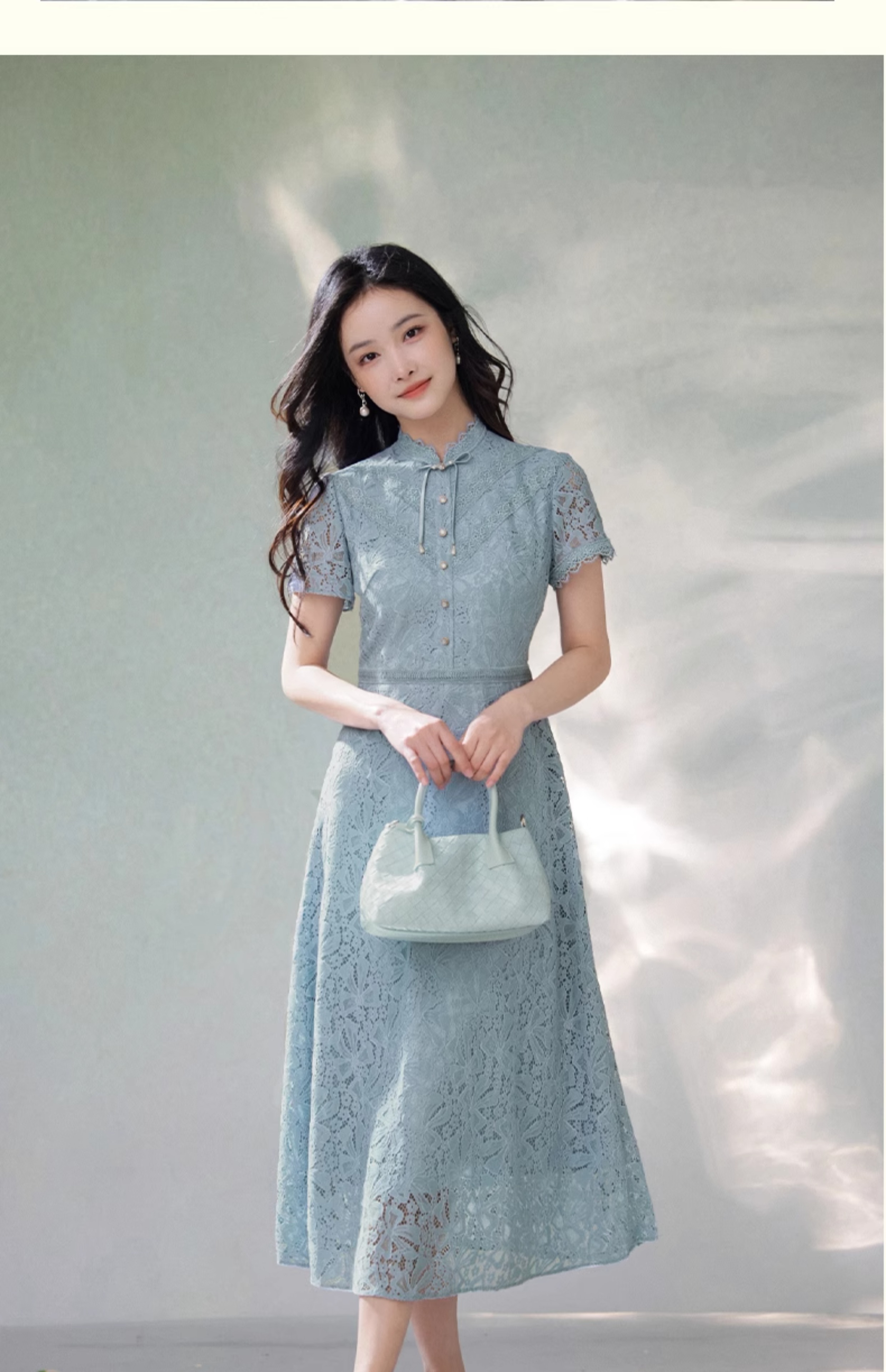 逸红颜兰珂2025夏新款学院风骨线蕾丝A摆新中式气质复古连衣裙女