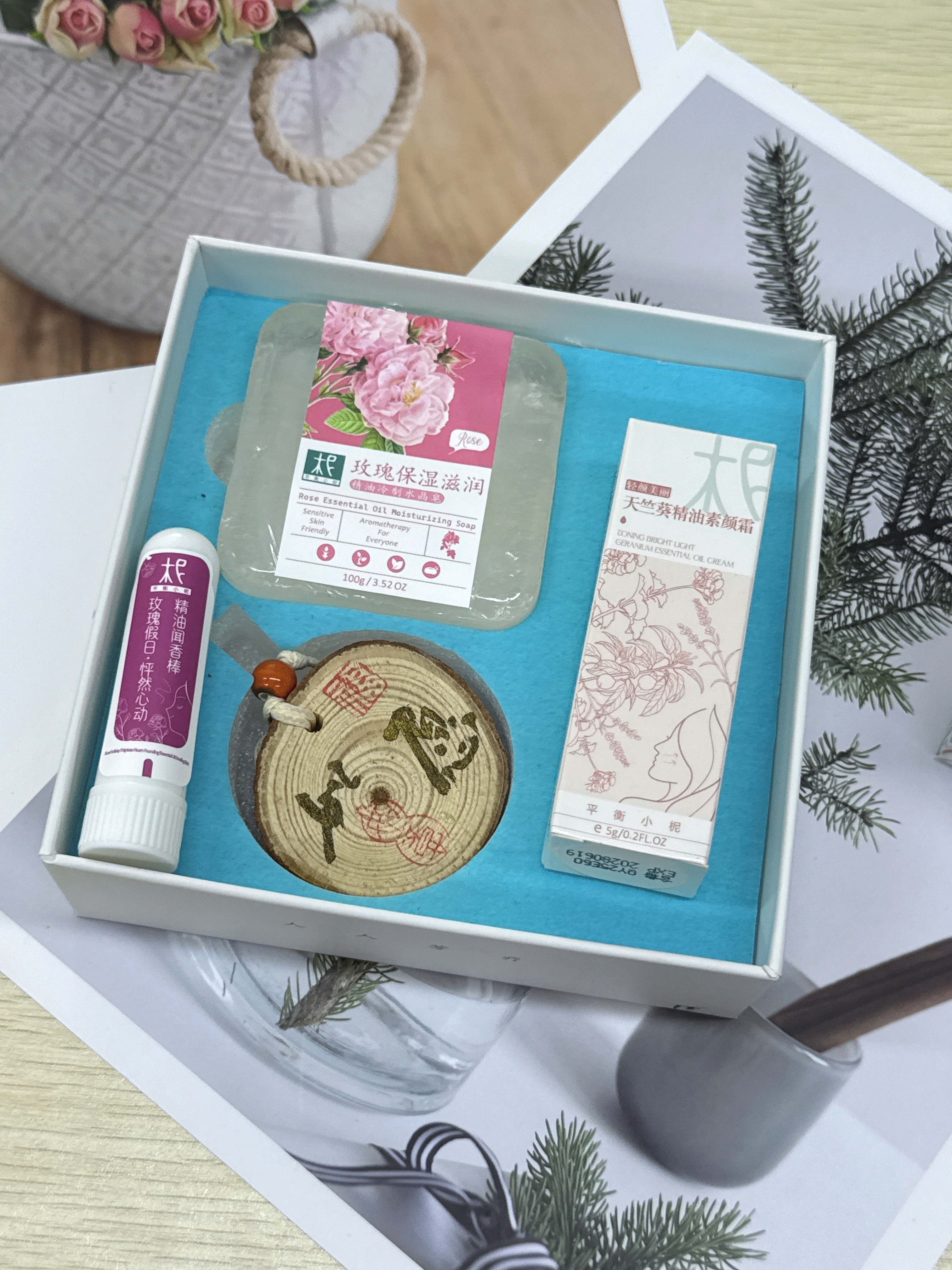 套装玫瑰水晶皂 闻香棒以及松木片 素颜霜试用 套装