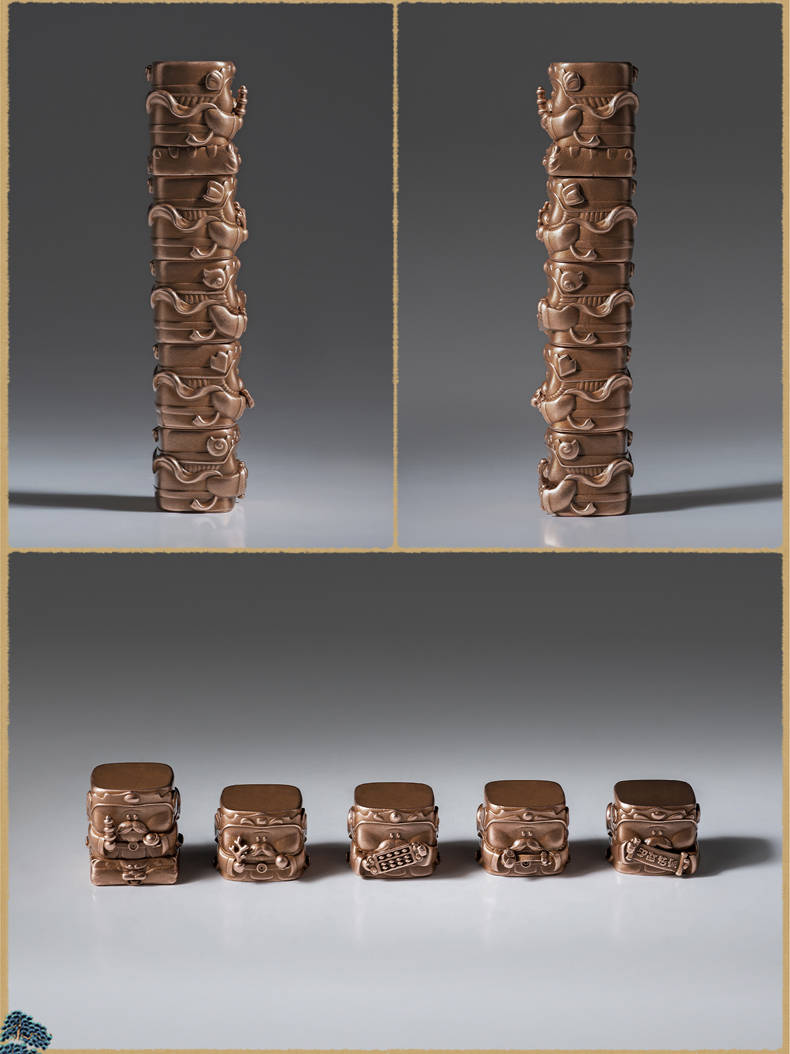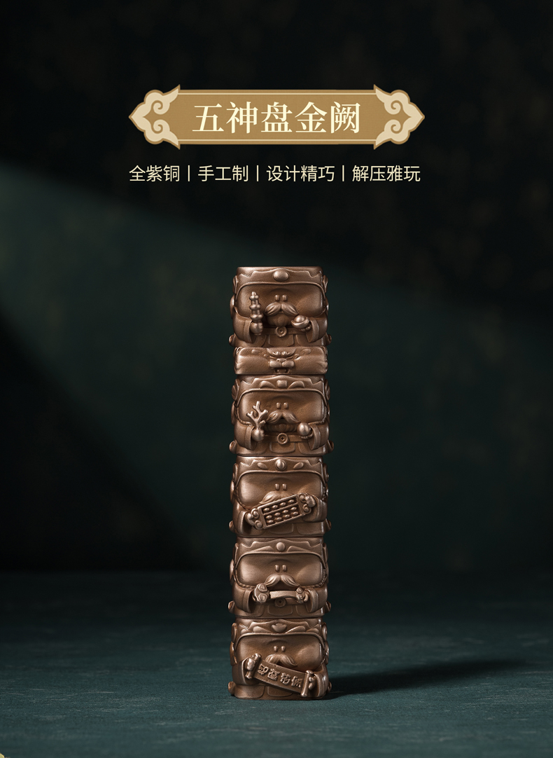 铜师傅《五神盘金阙》中式创意铜摆件 客厅装饰艺术品