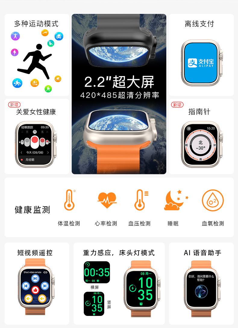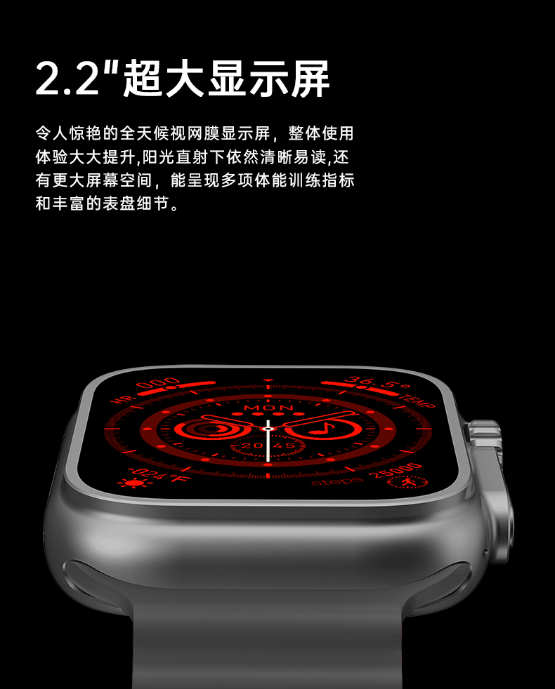 GS Ultra8+智能手表 2.2英寸高清ID全面屏 各种内容一目了然