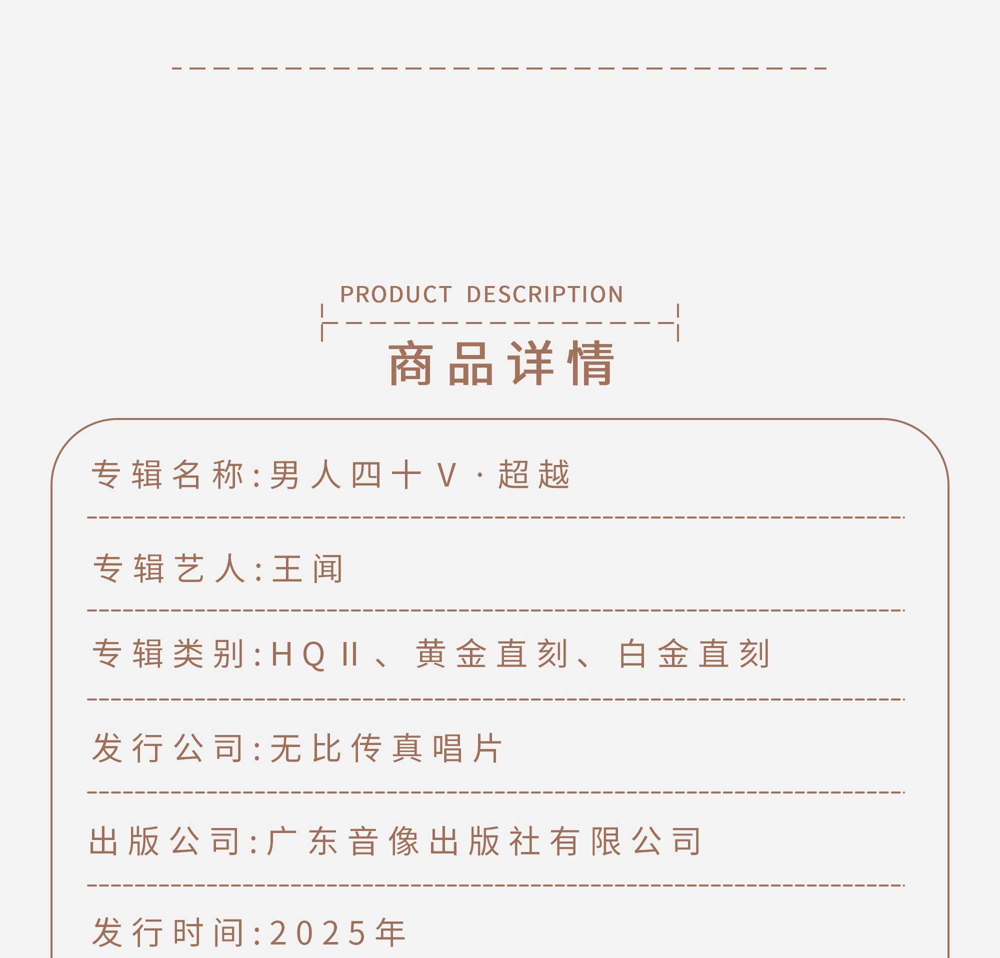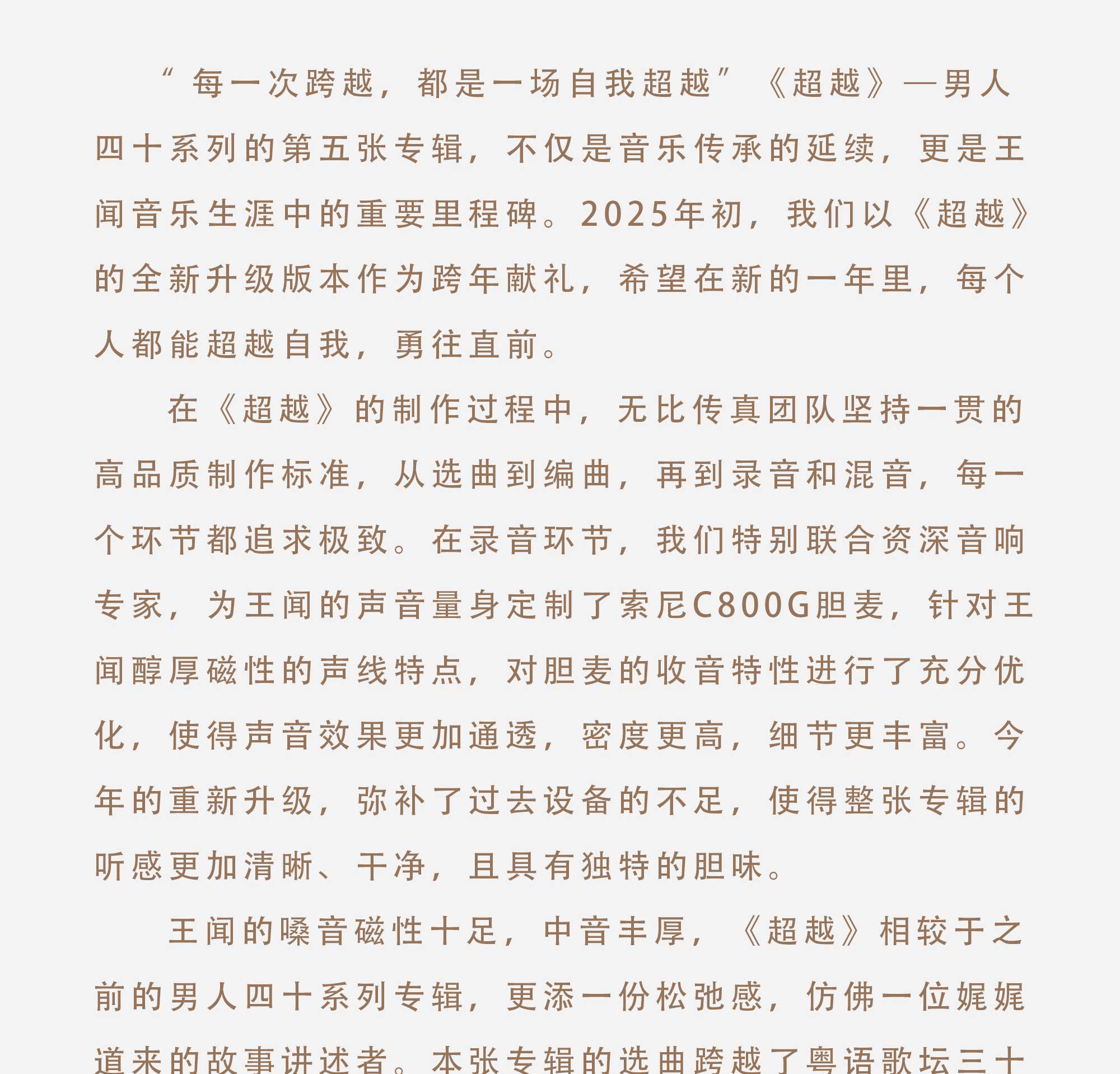王闻 男人四十5《超越》专辑纯银&HQ&HQⅡCD&1:1直刻&1:1黄金直刻 无比传真