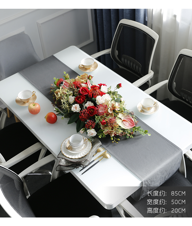 餐桌花摆花桌面西餐厅长桌仿真花假花酒店别墅会议室中间高档现代