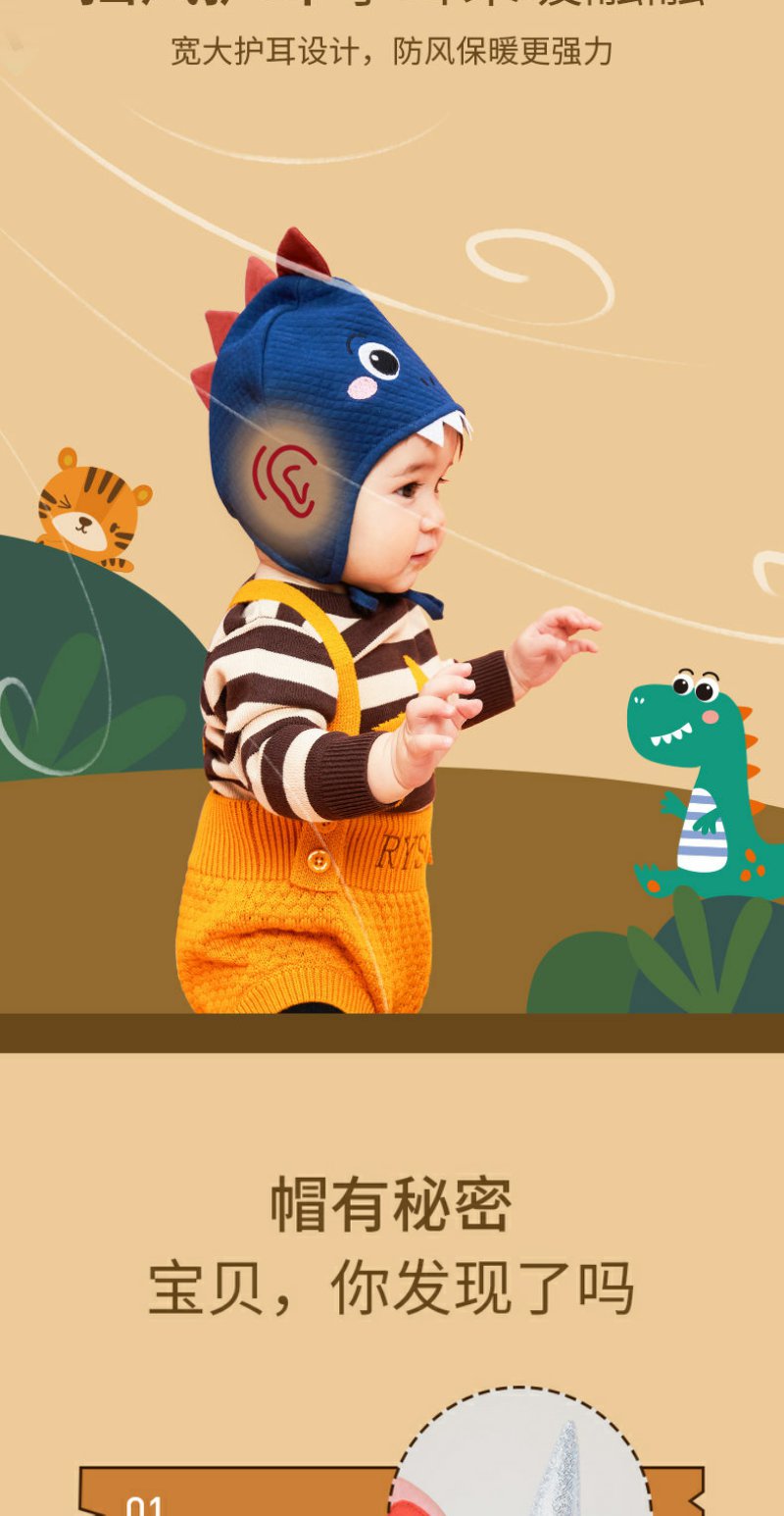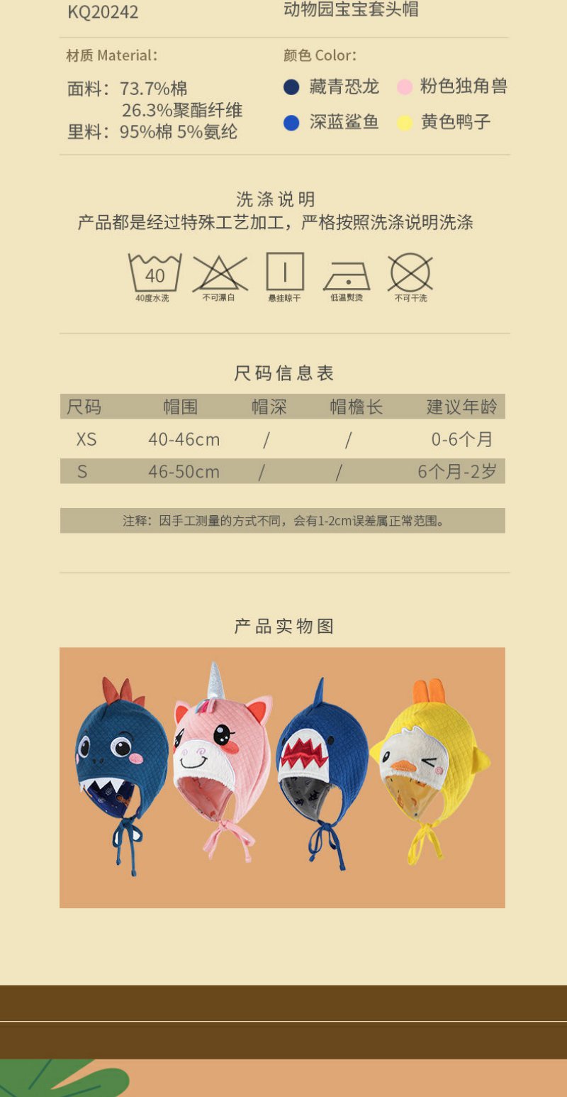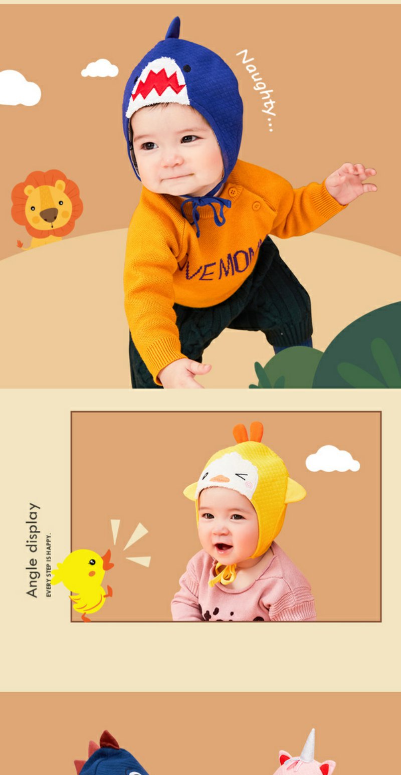 婴儿帽子春秋季男童女童可爱超萌护耳帽婴幼儿新生宝宝套头帽