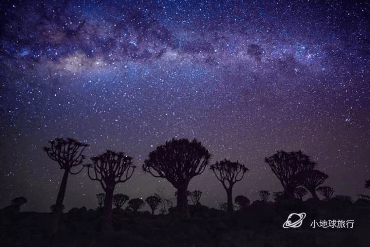 下午:稍事休息,傍晚可拍摄箭袋树日落,晚上以箭袋树为前景拍摄星空。