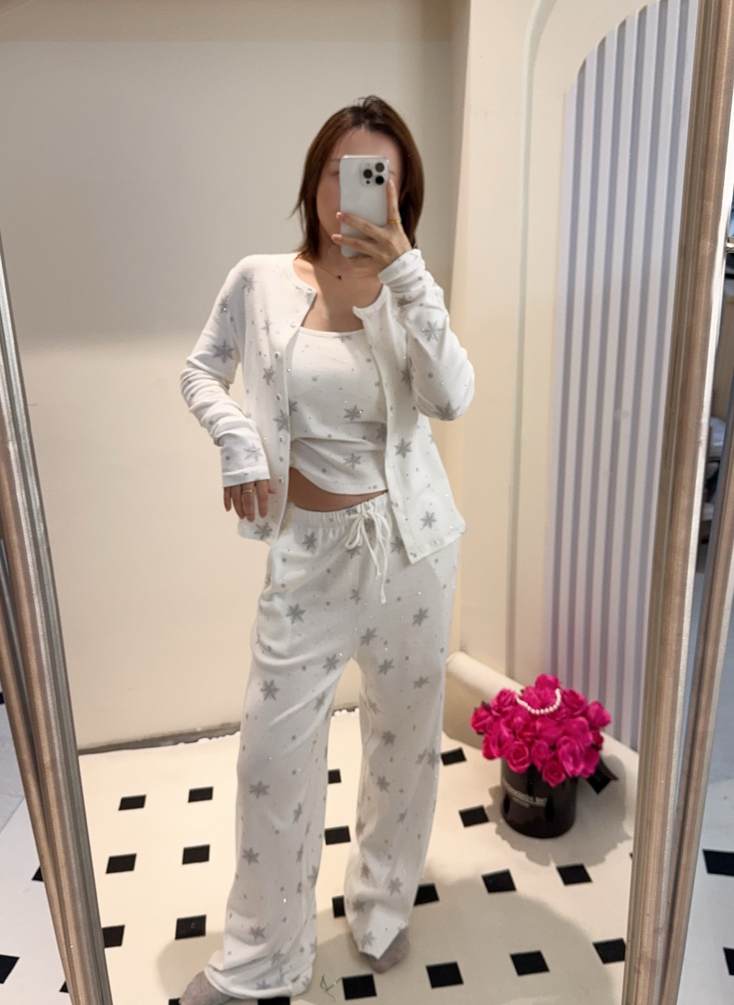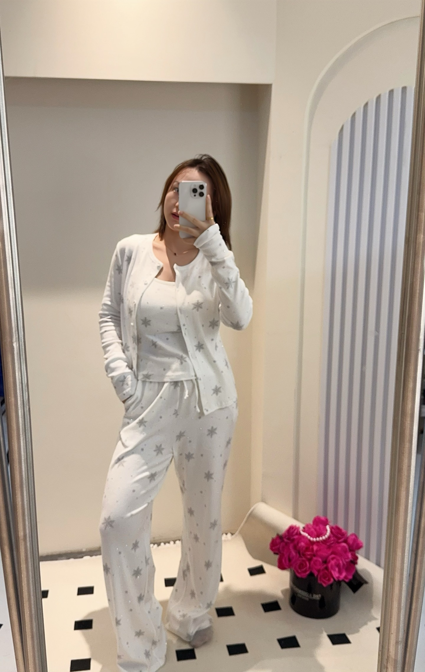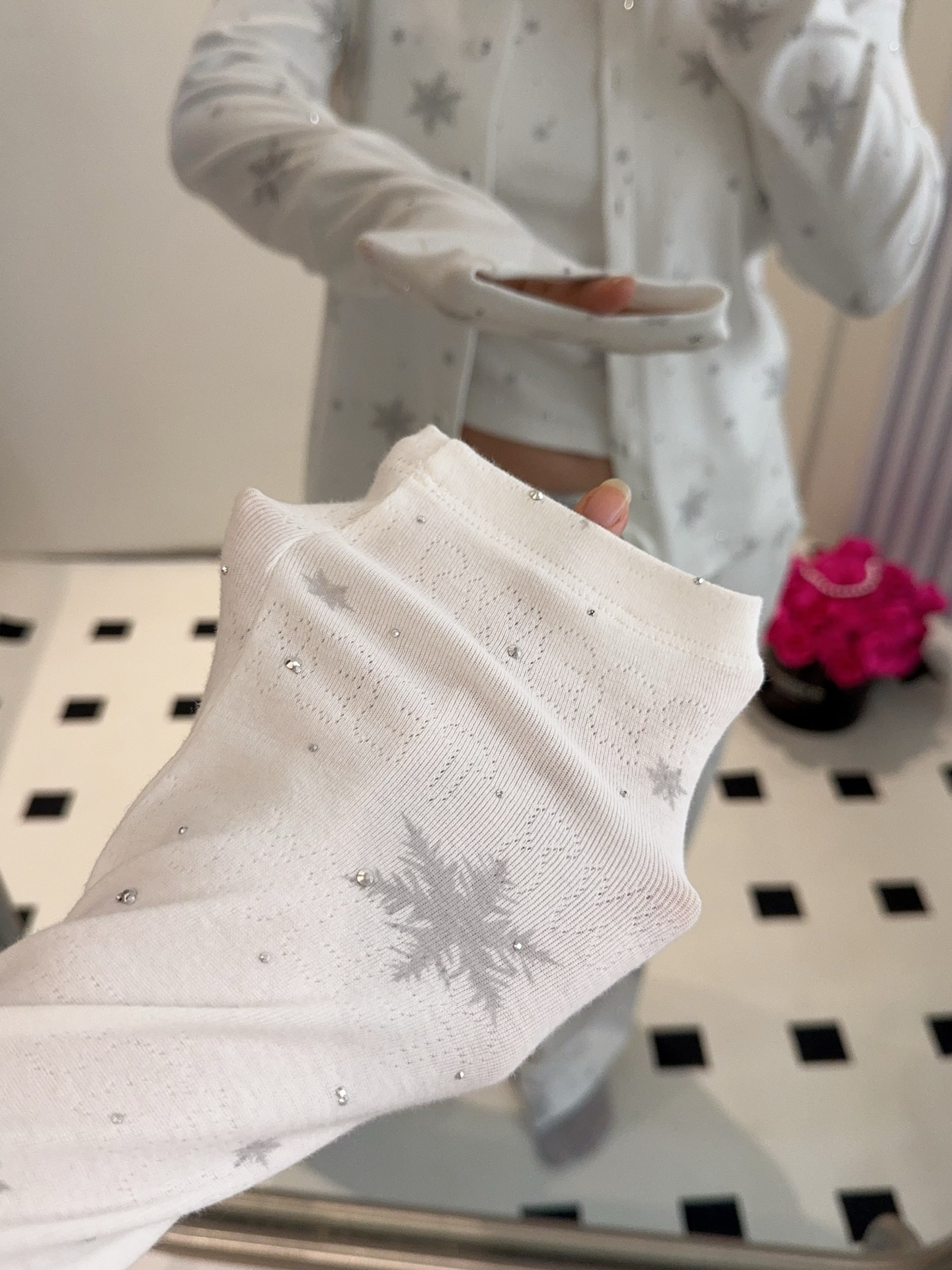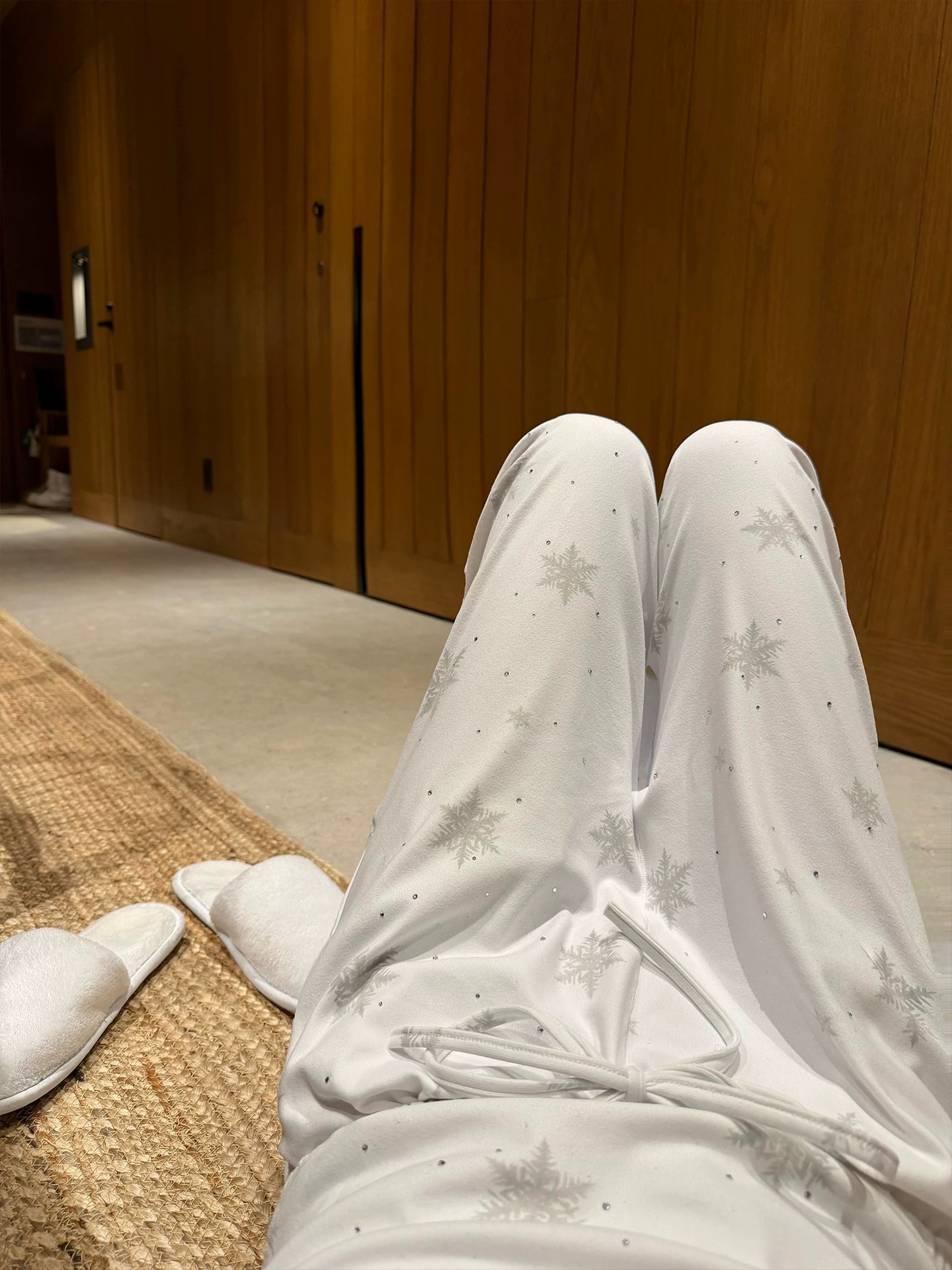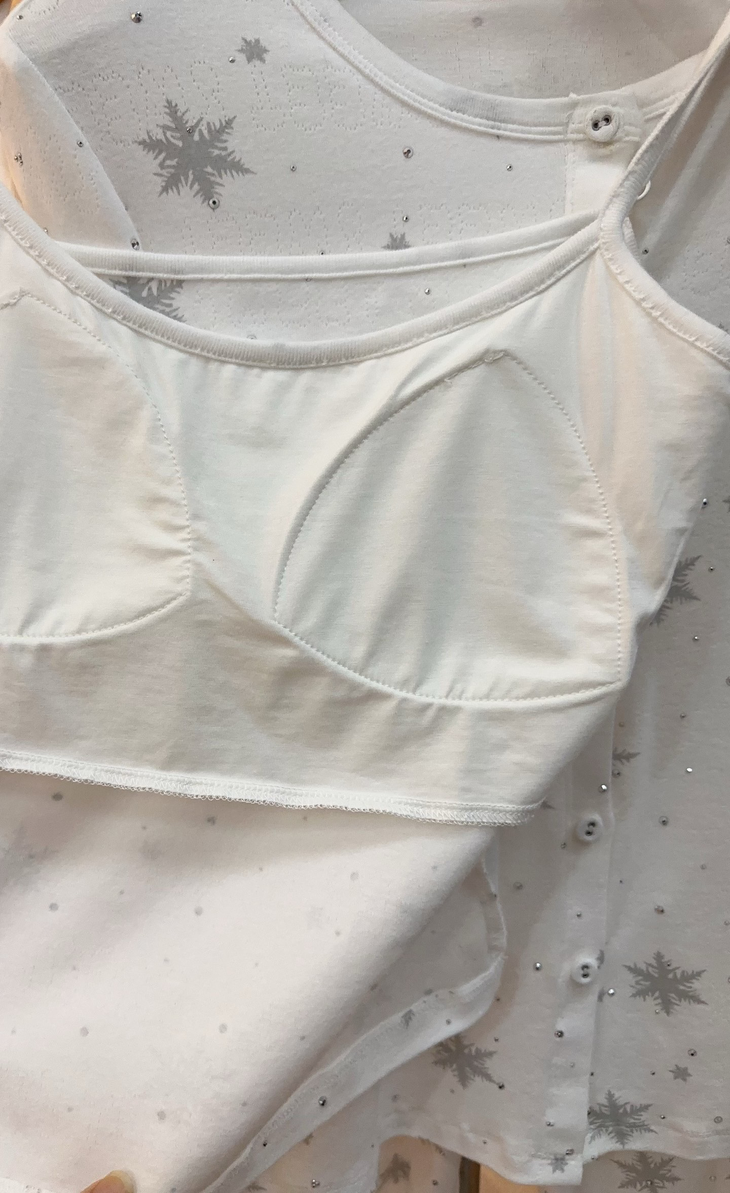 温柔显贵~skim雪花烫钻睡衣三件套 免穿文胸吊带+长袖开衫+长裤 雪花图案 blingbling烫钻 镂空提花 精致家居服