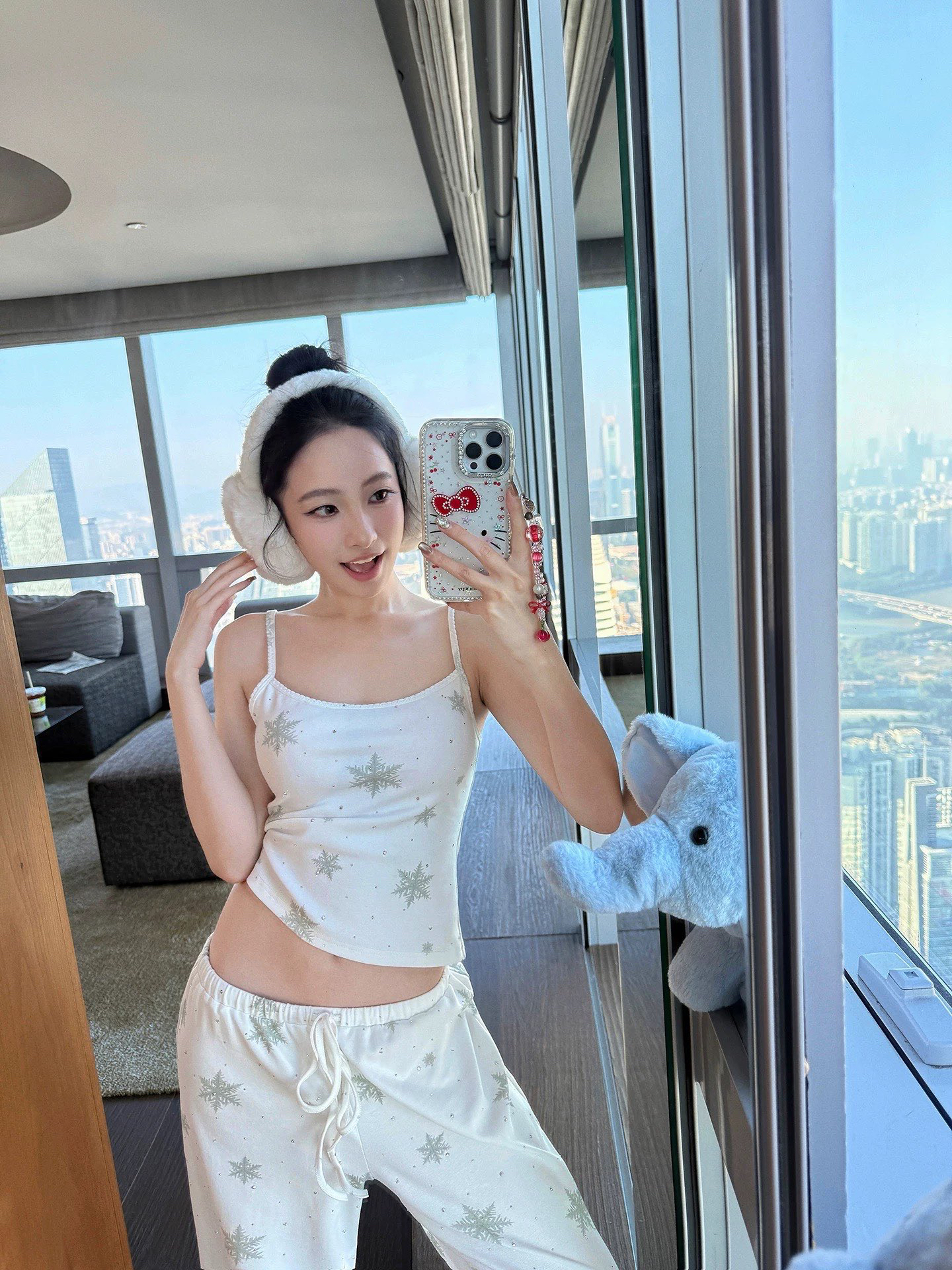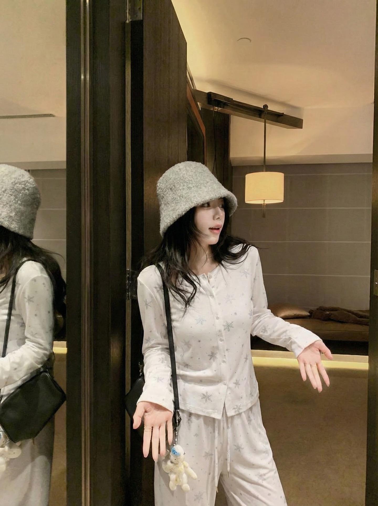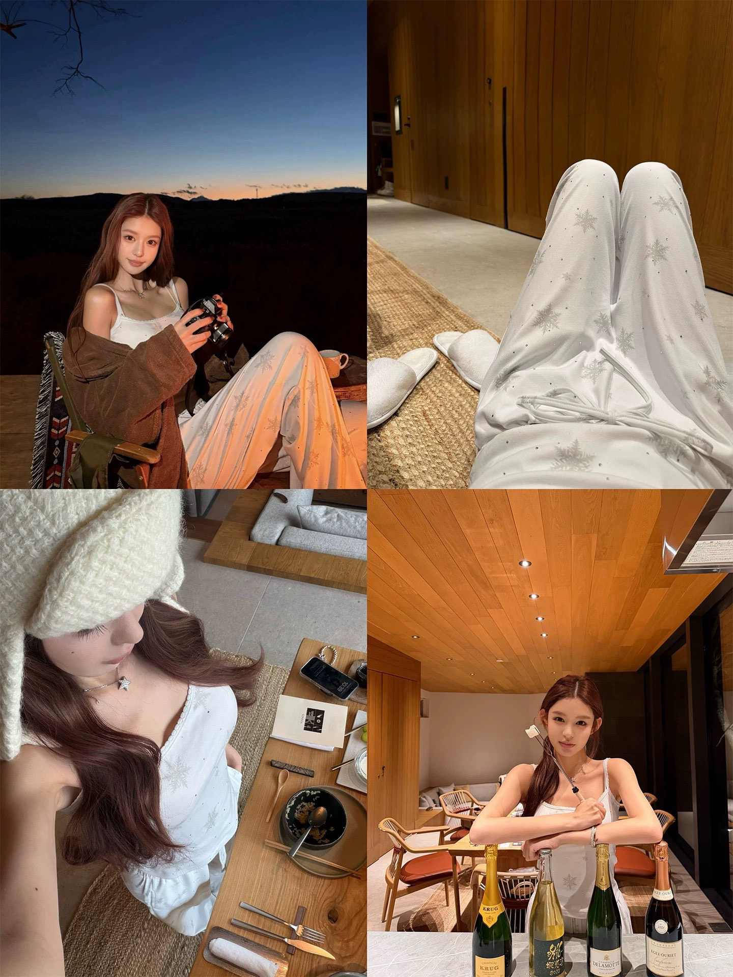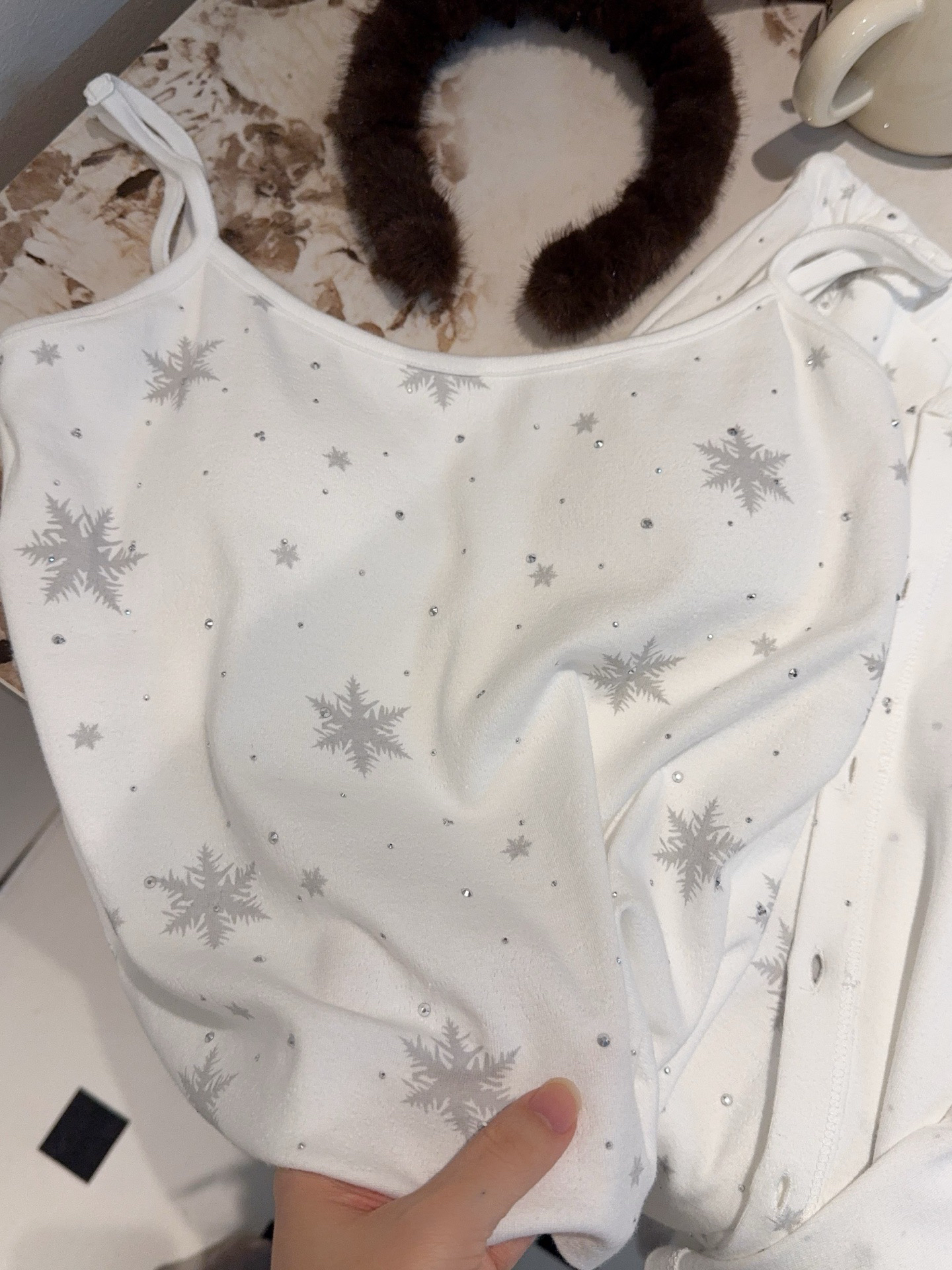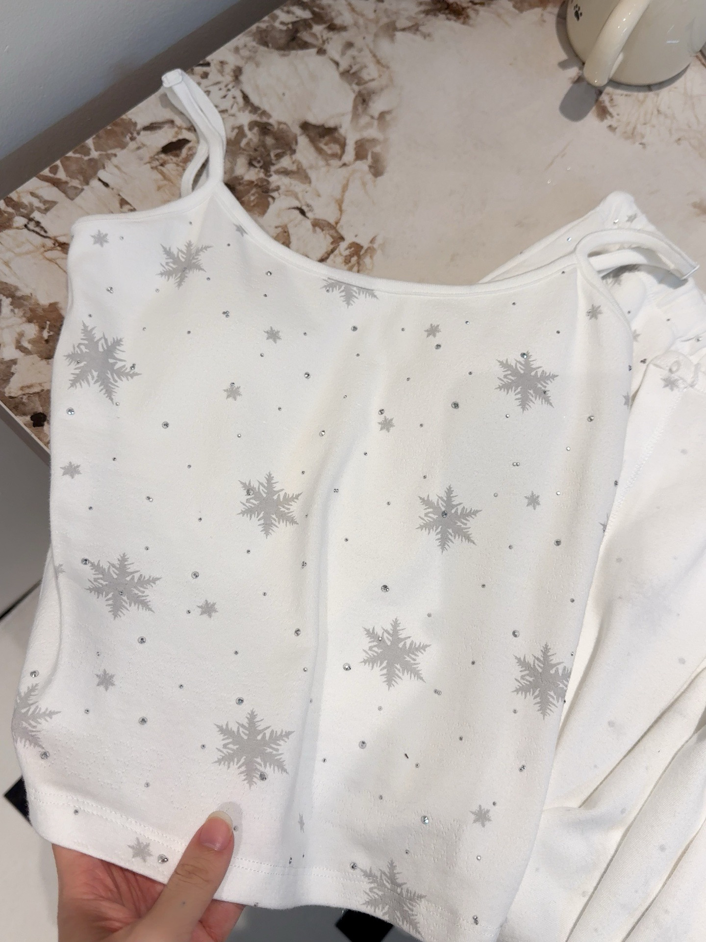 温柔显贵~skim雪花烫钻睡衣三件套 免穿文胸吊带+长袖开衫+长裤 雪花图案 blingbling烫钻 镂空提花 精致家居服