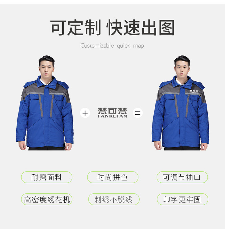 梵可梵冬季工作服棉衣男加厚棉袄劳保服冷库防寒服车间厂服冬装