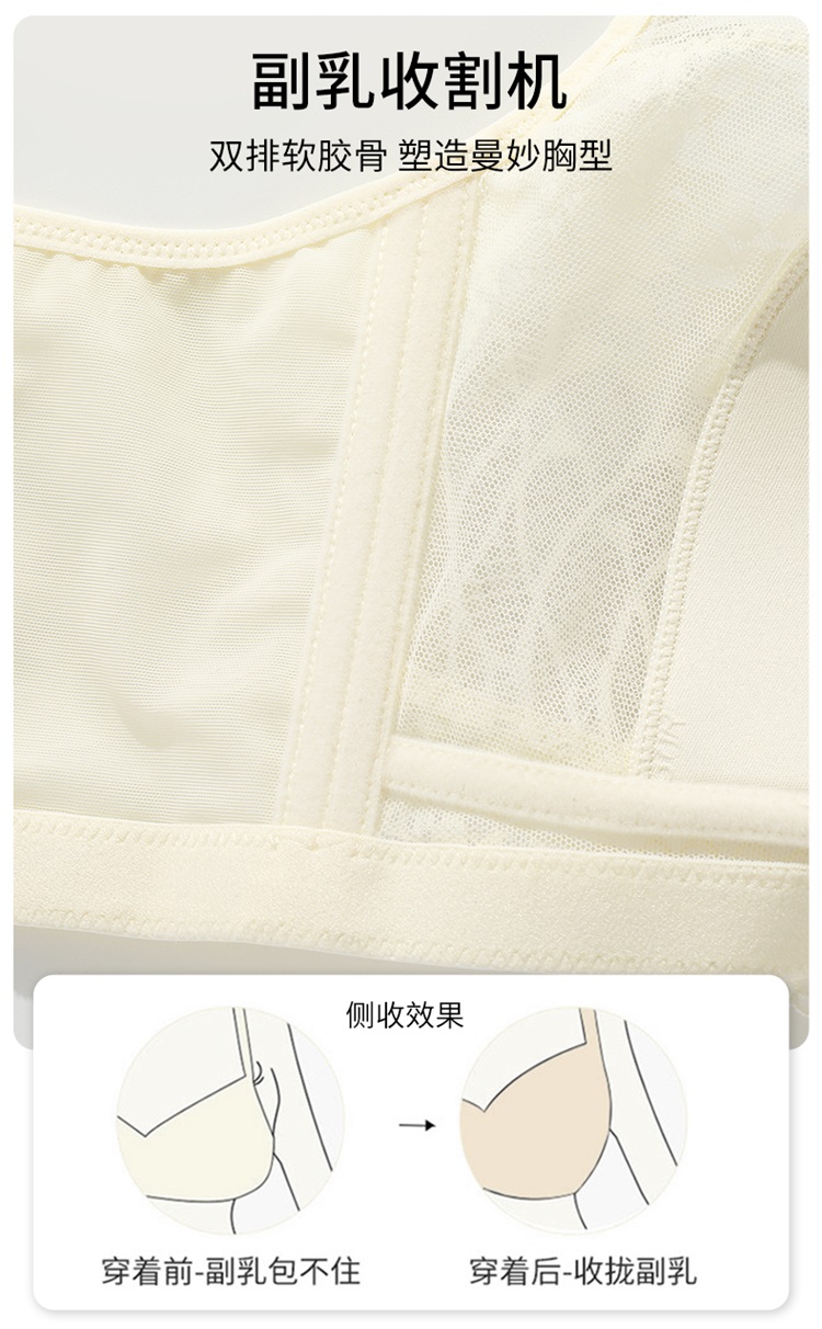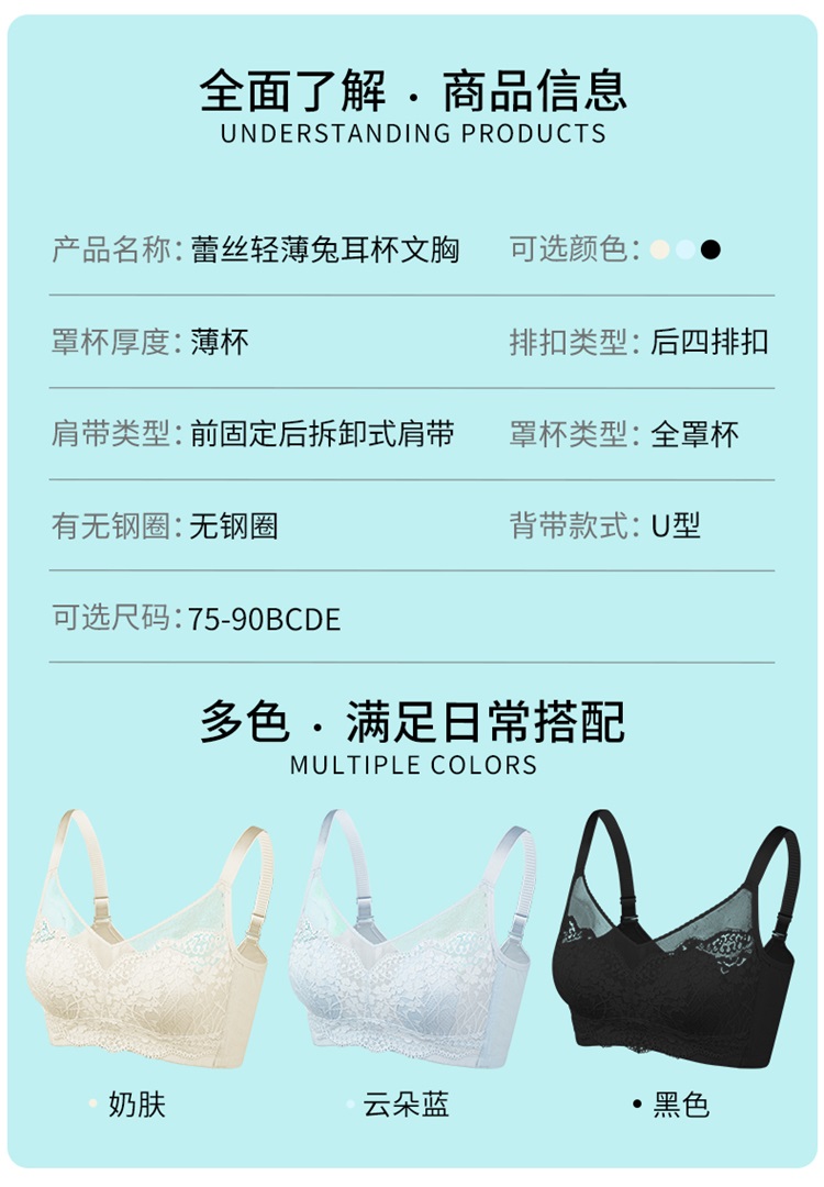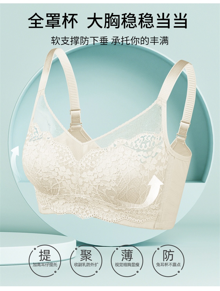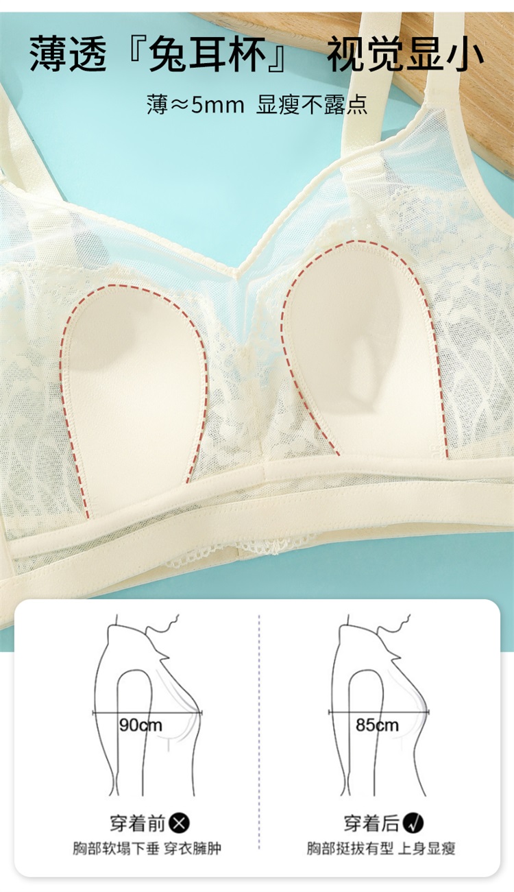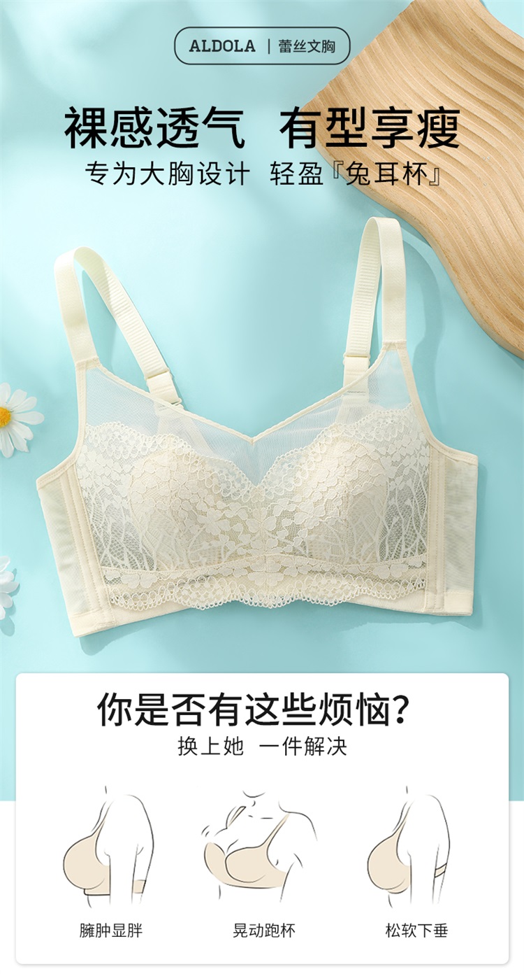 雅黛丽兔耳朵内衣女大胸显小薄款全罩杯性感蕾丝收副乳大码文胸女