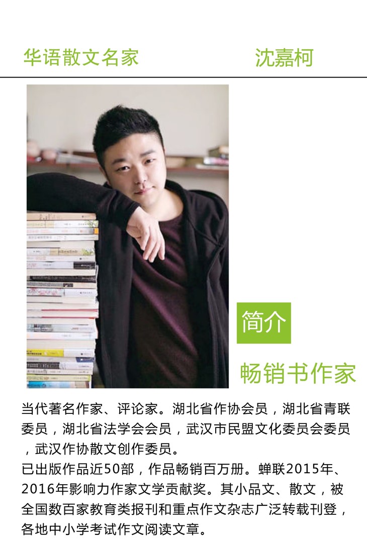百万畅销书作家沈嘉柯经典散文精选集。包括《这世界,如你所愿的美好》《岁月很长,不必慌张》《远方的夜空有星光》三本代表作,收录沈嘉柯经典美文200余篇。书中多篇文章被设计成语文考试现代文阅读材料,连续十年被选作各类试题。书中所选文章全部在全国数百家作文与教学杂志刊载。入选全国知名特级教师、清华附小校长窦桂梅作品《窦桂梅教你阅读》。