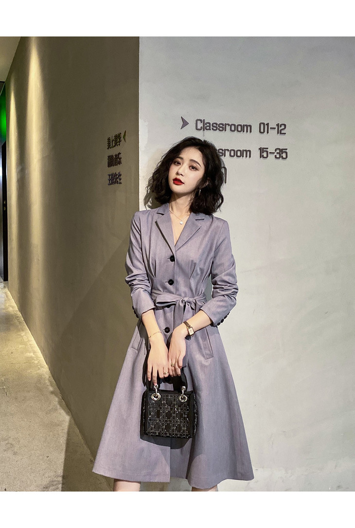 【服饰鞋包】女装时尚气质韩版修身风衣连衣裙女小香风裙子中长款