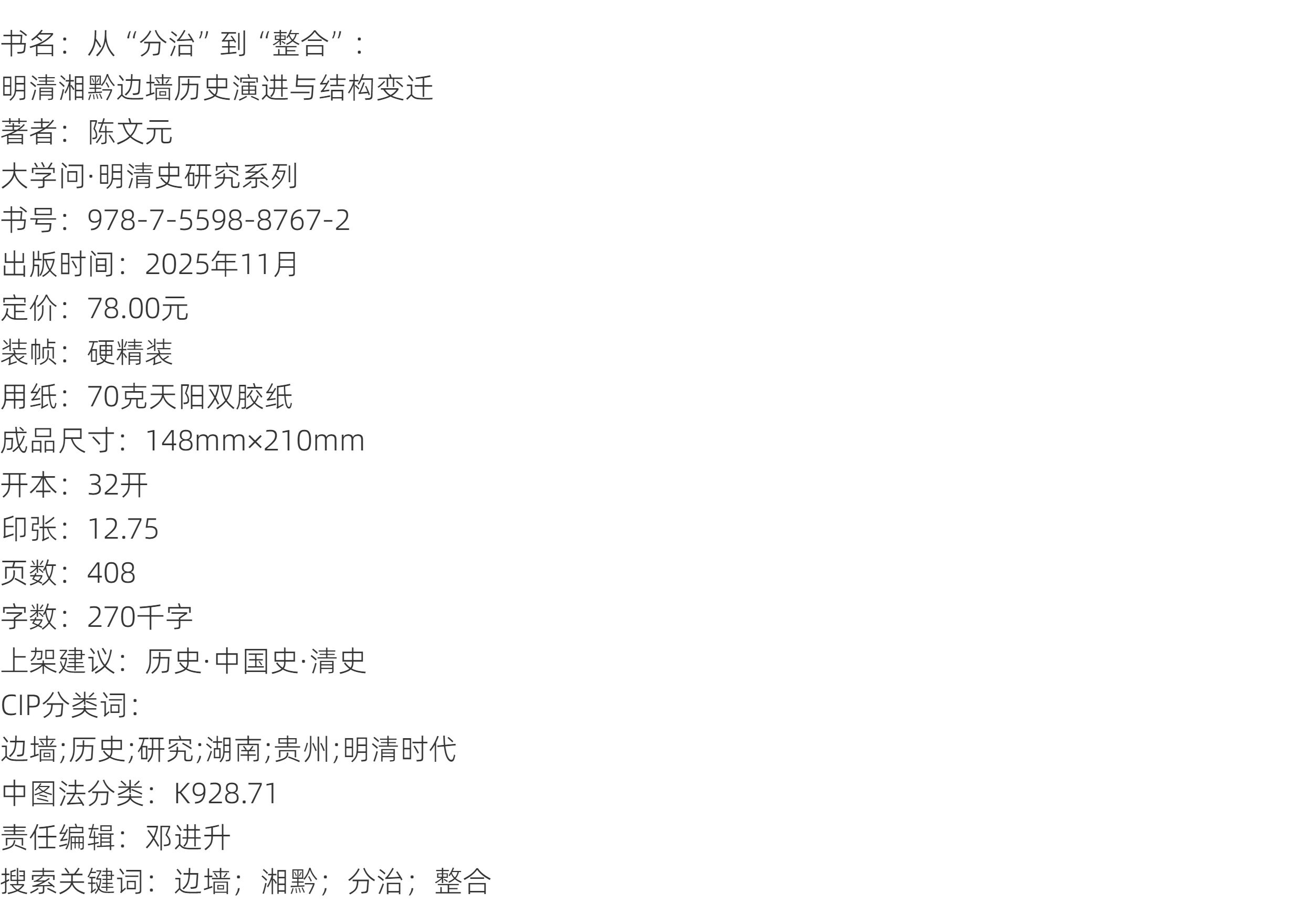 从“分治”到“整合”:明清湘黔边墙历史演进与结构变迁 著/陈文元 边墙;湘黔
