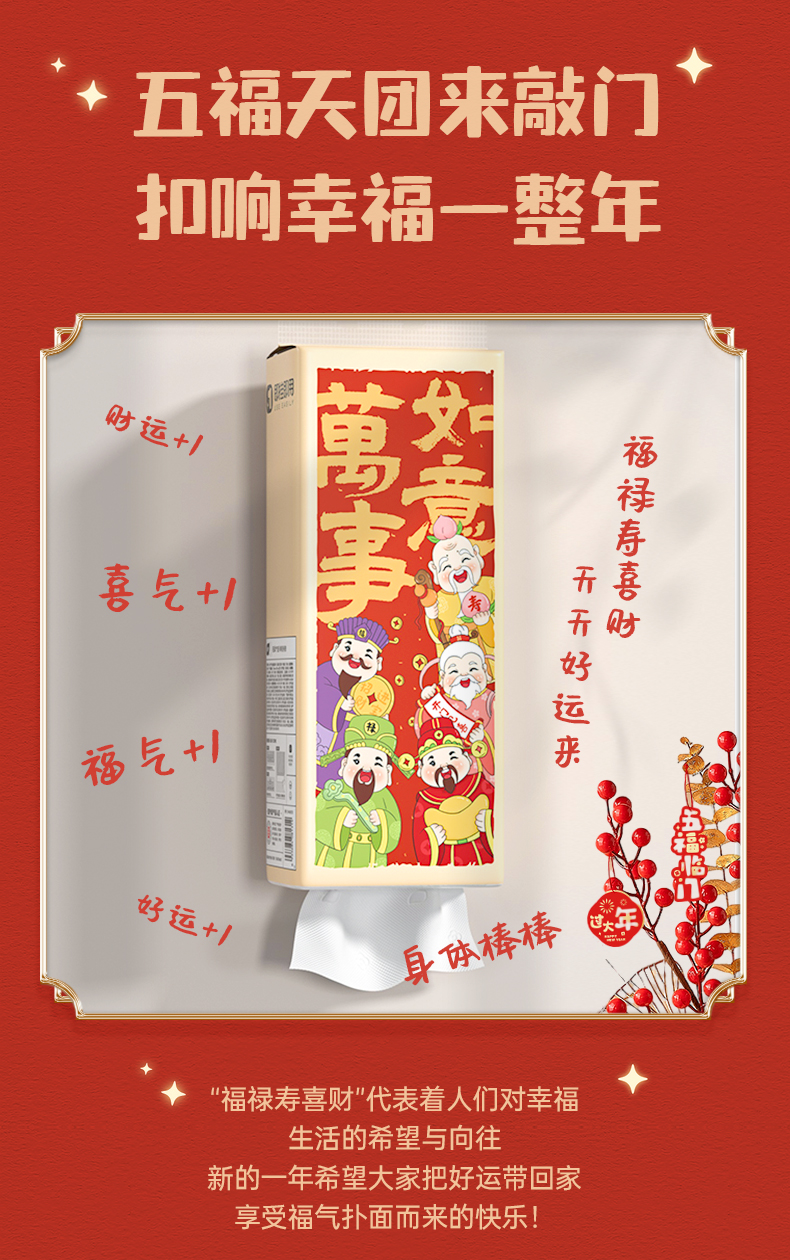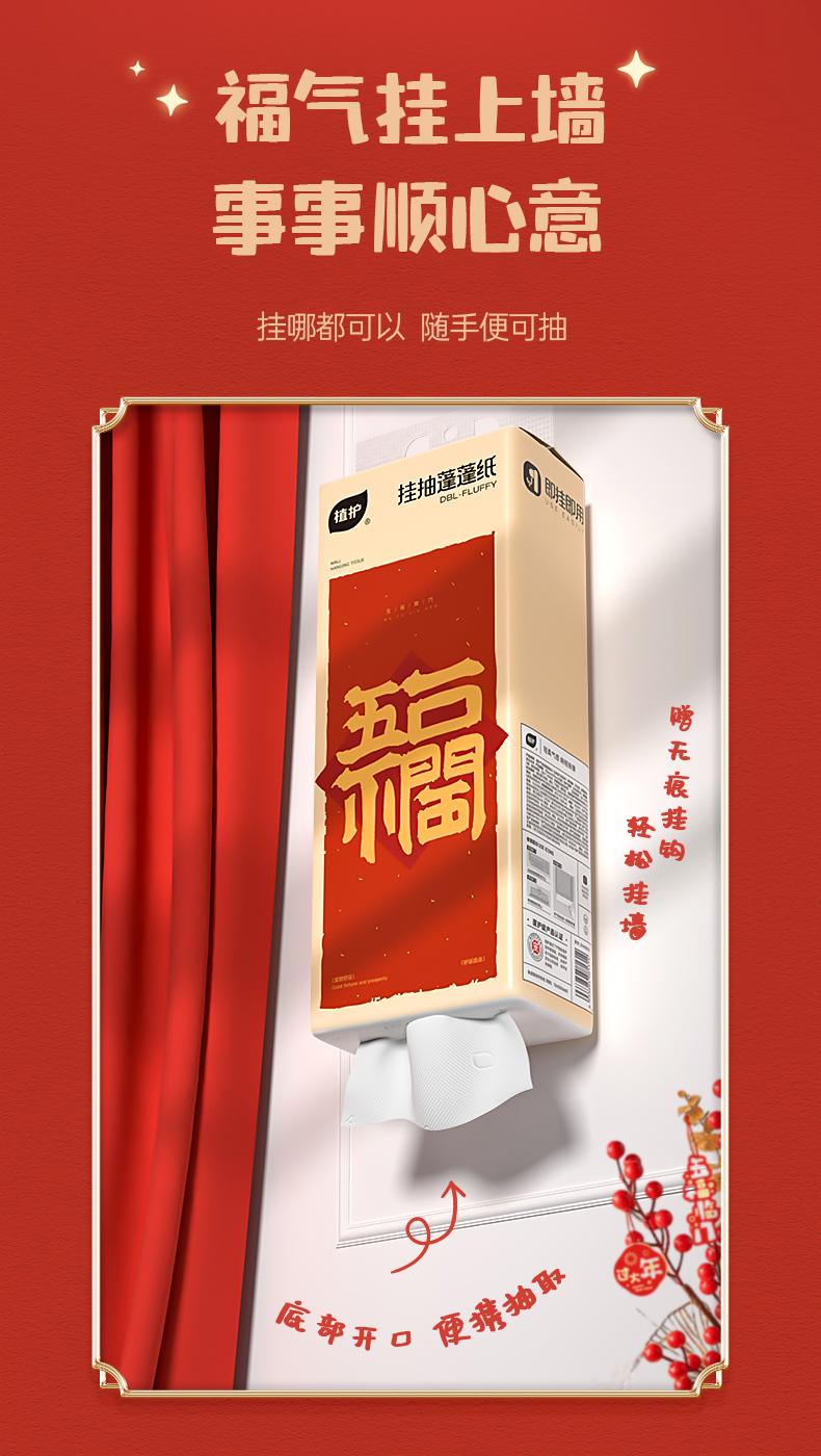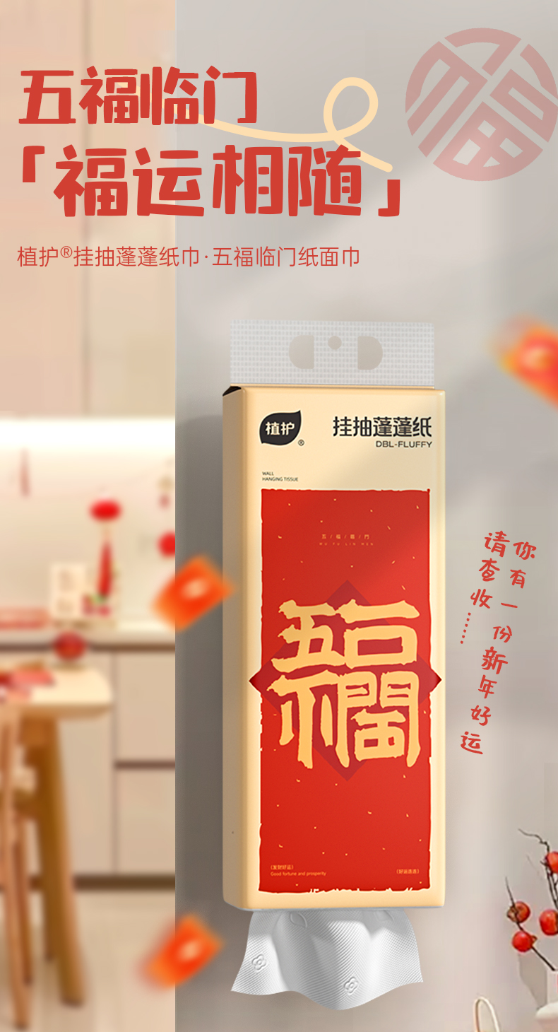 植护悬挂式抽纸大包餐巾纸五福临门家用整箱实惠装擦手卫生纸。