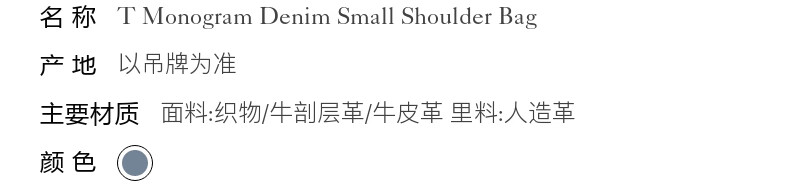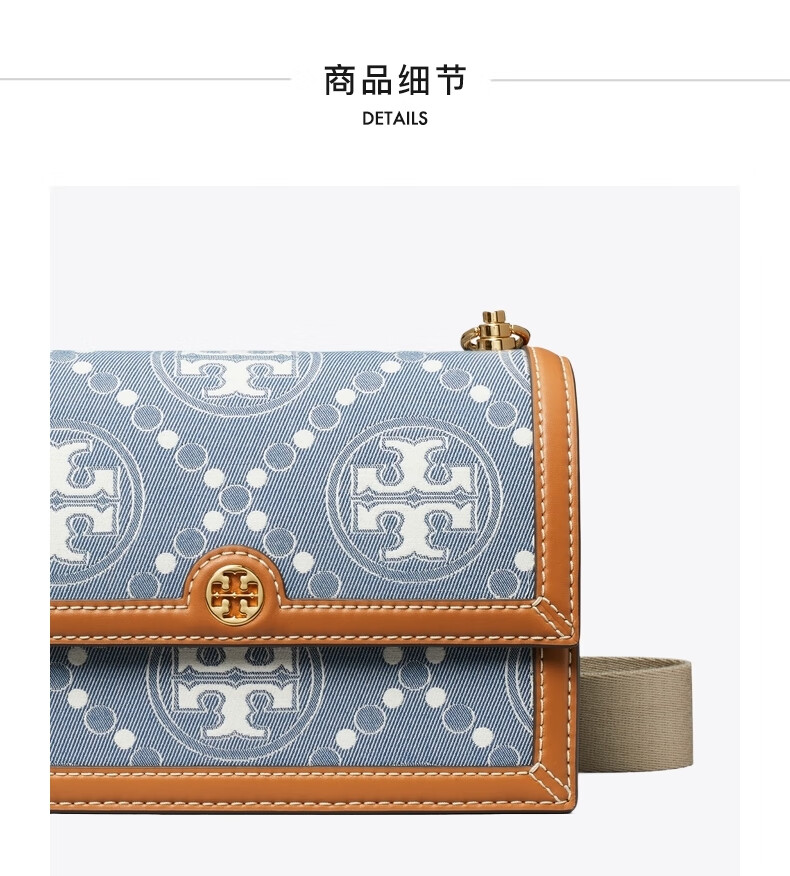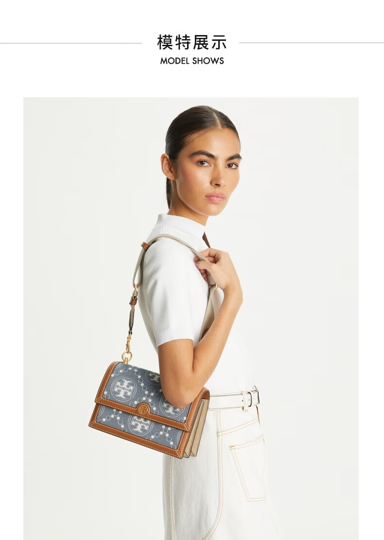 【1F】Tory Burch 汤丽柏琦【礼物】T MONOGRAM 小号丹宁单肩包