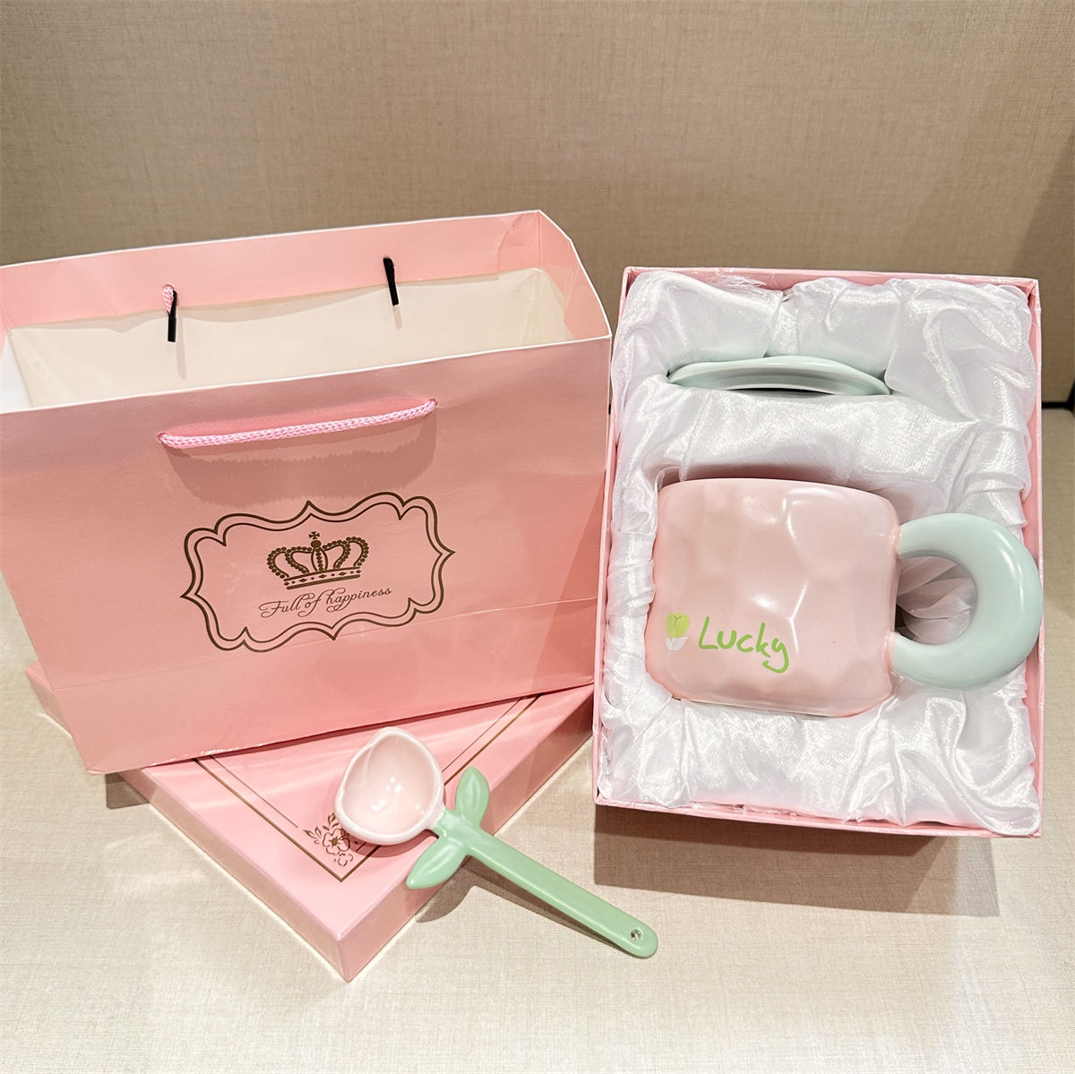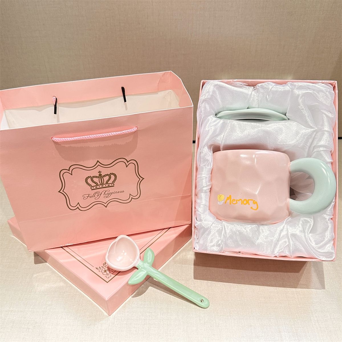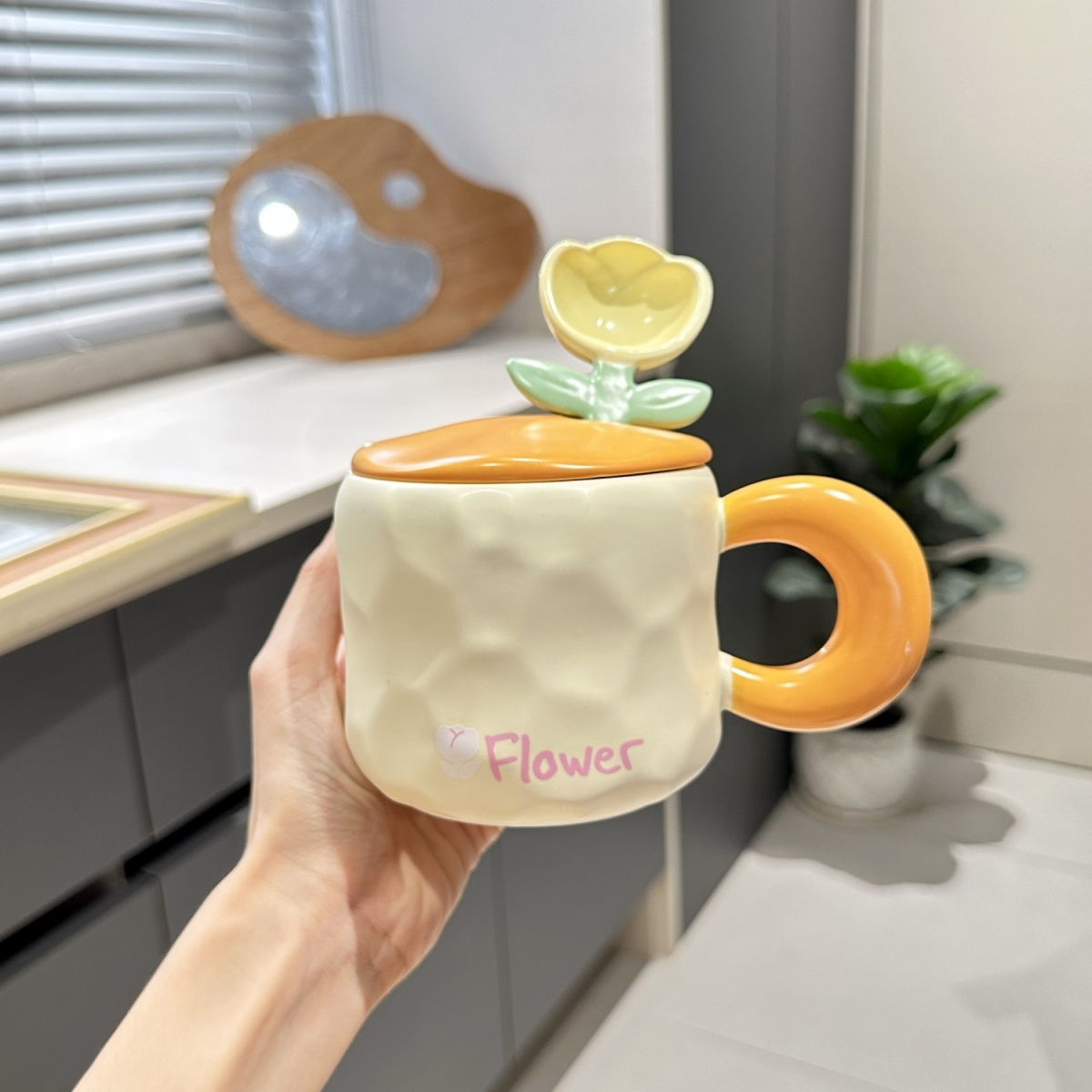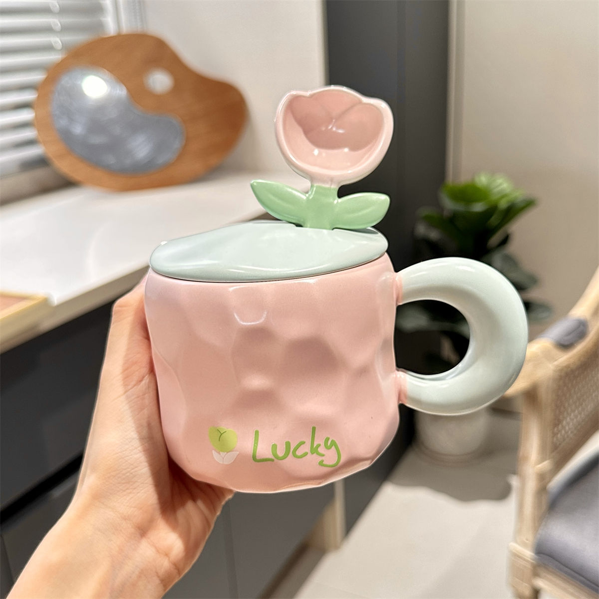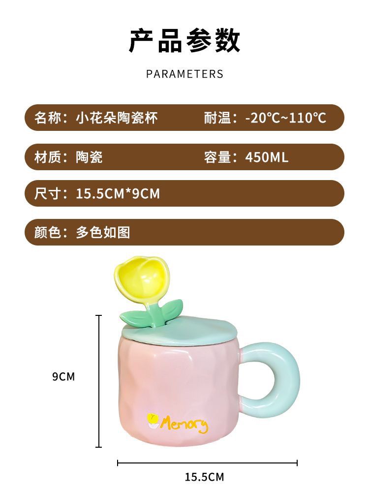 奶fufu郁金香勺子马克杯带盖子可爱男女学生情侣杯牛奶杯水杯套装