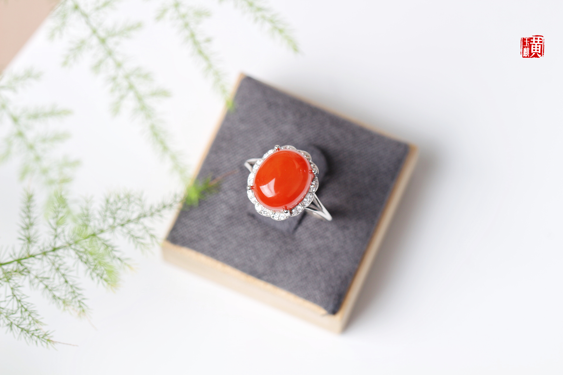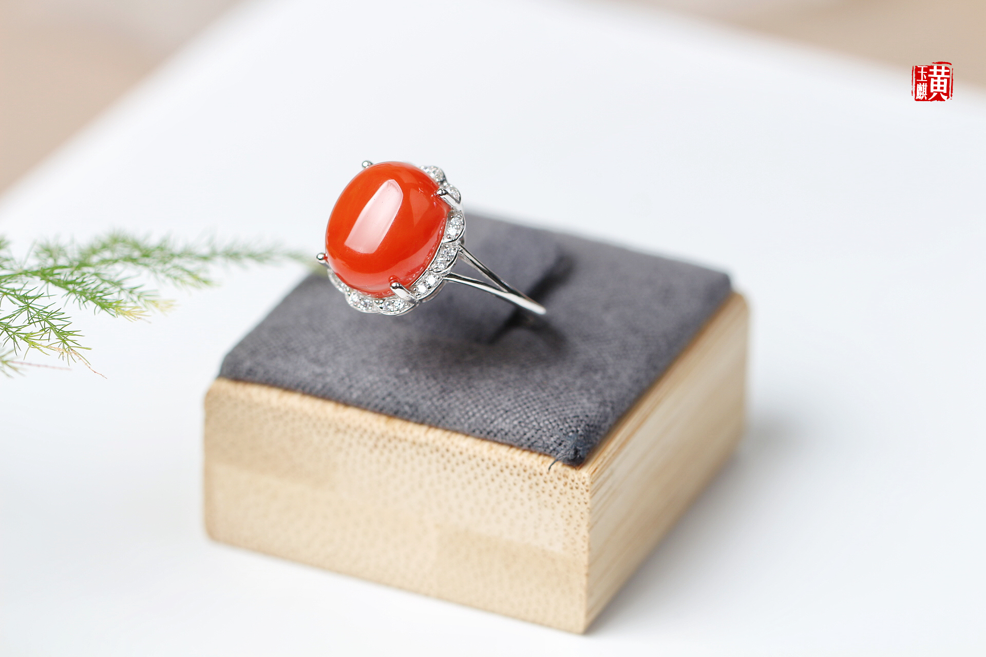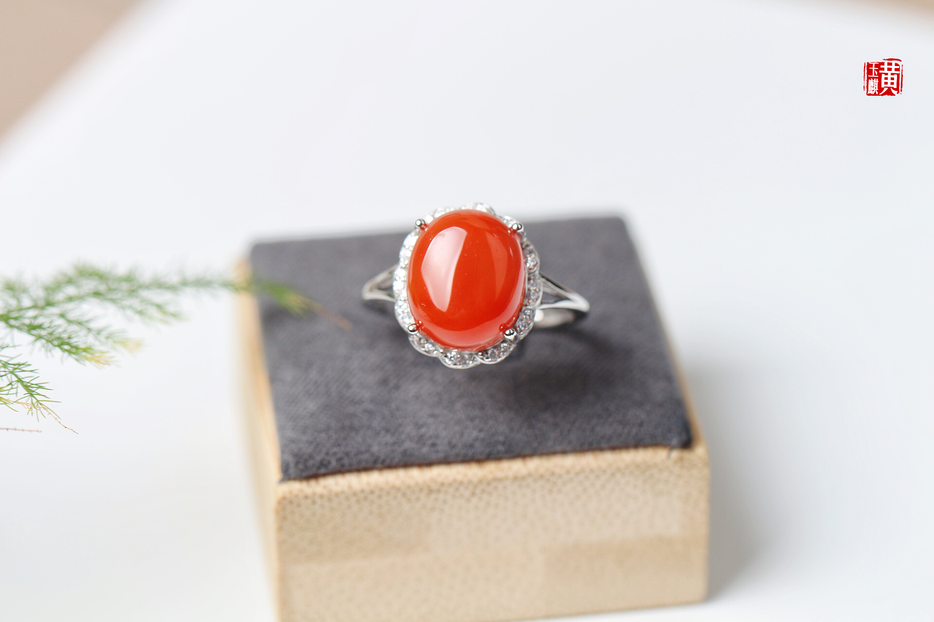 南红戒指【璇瑰】,925银镶,活扣可调节