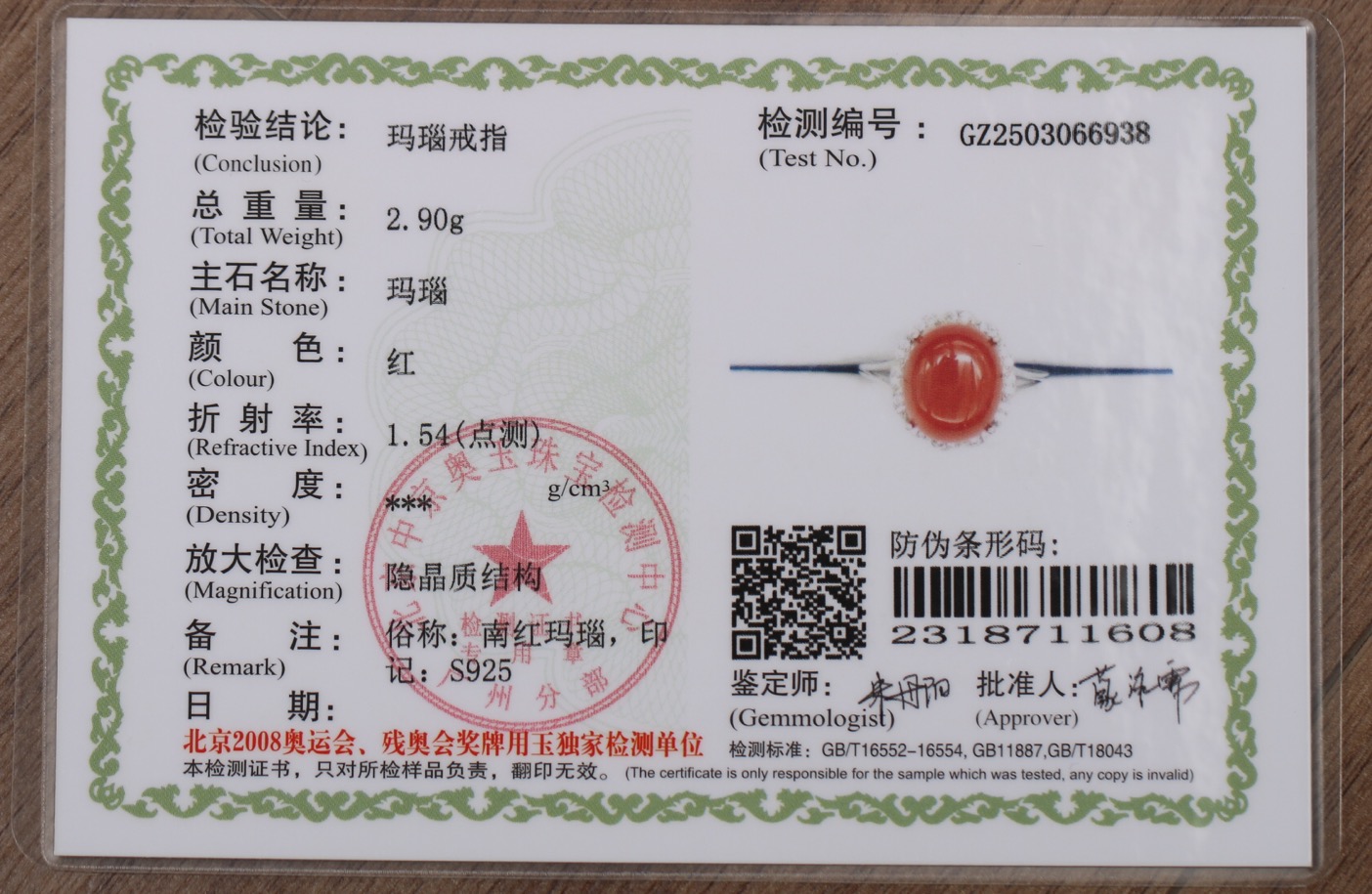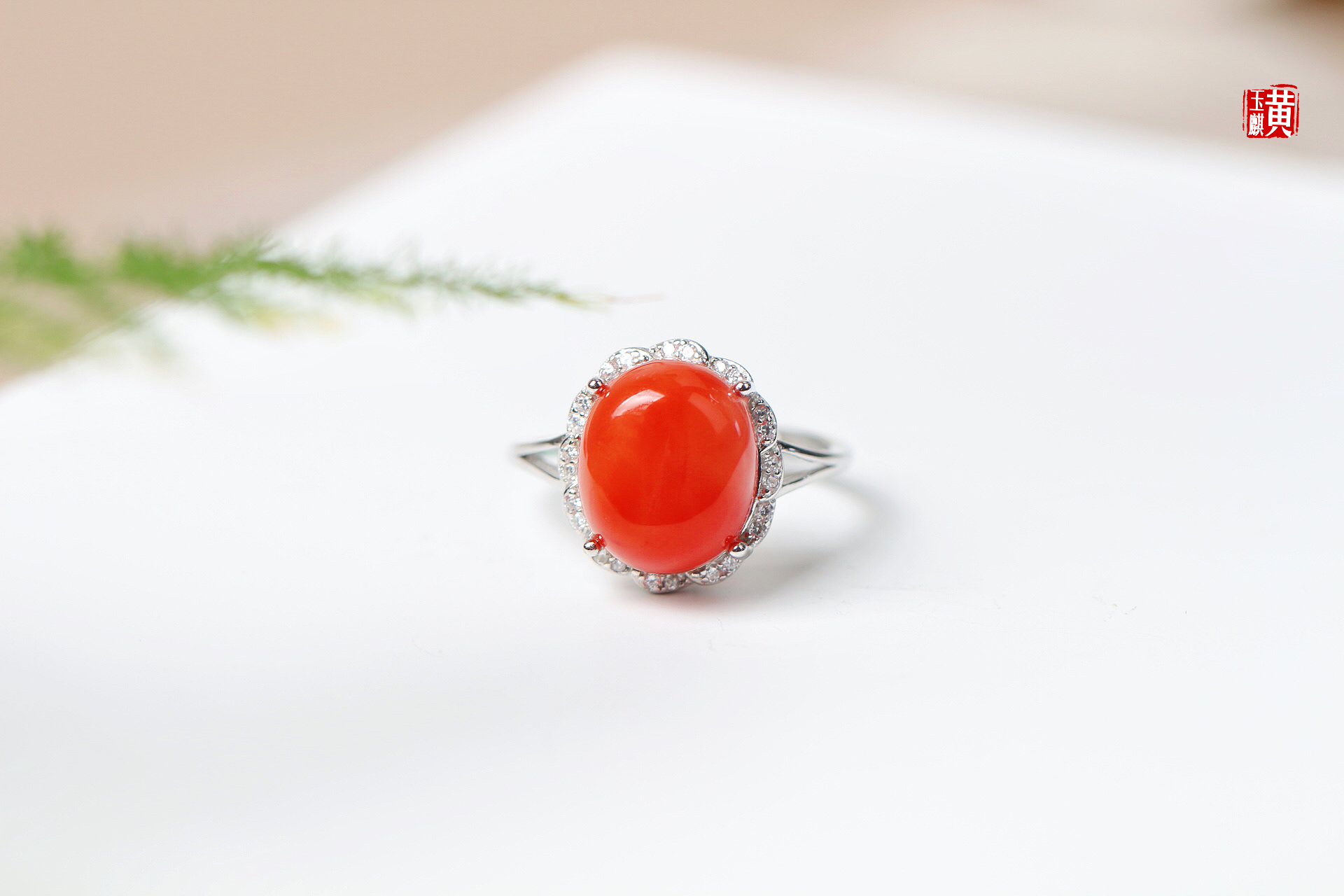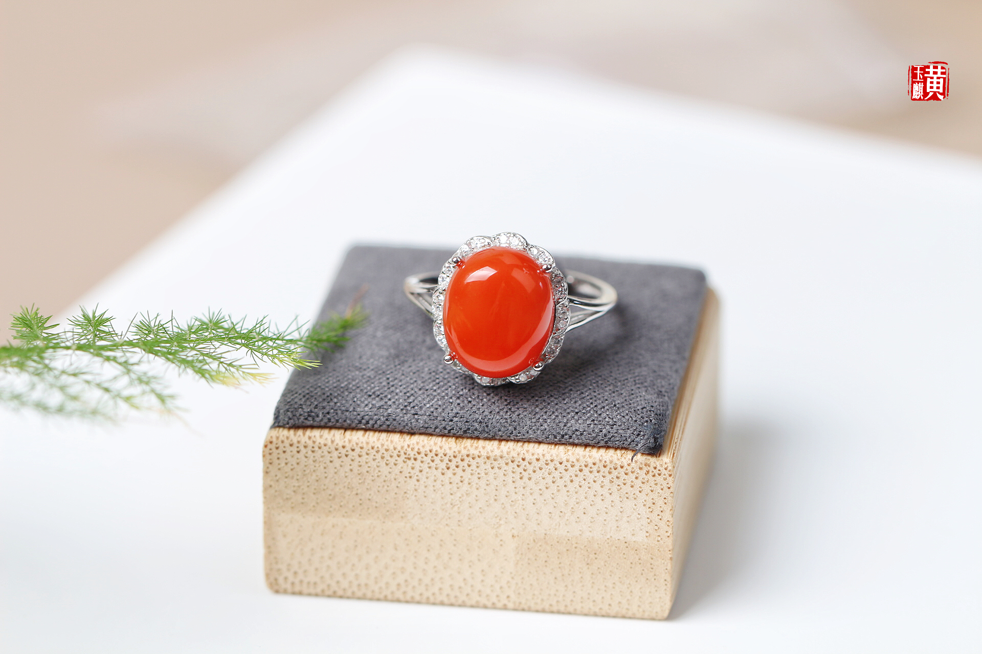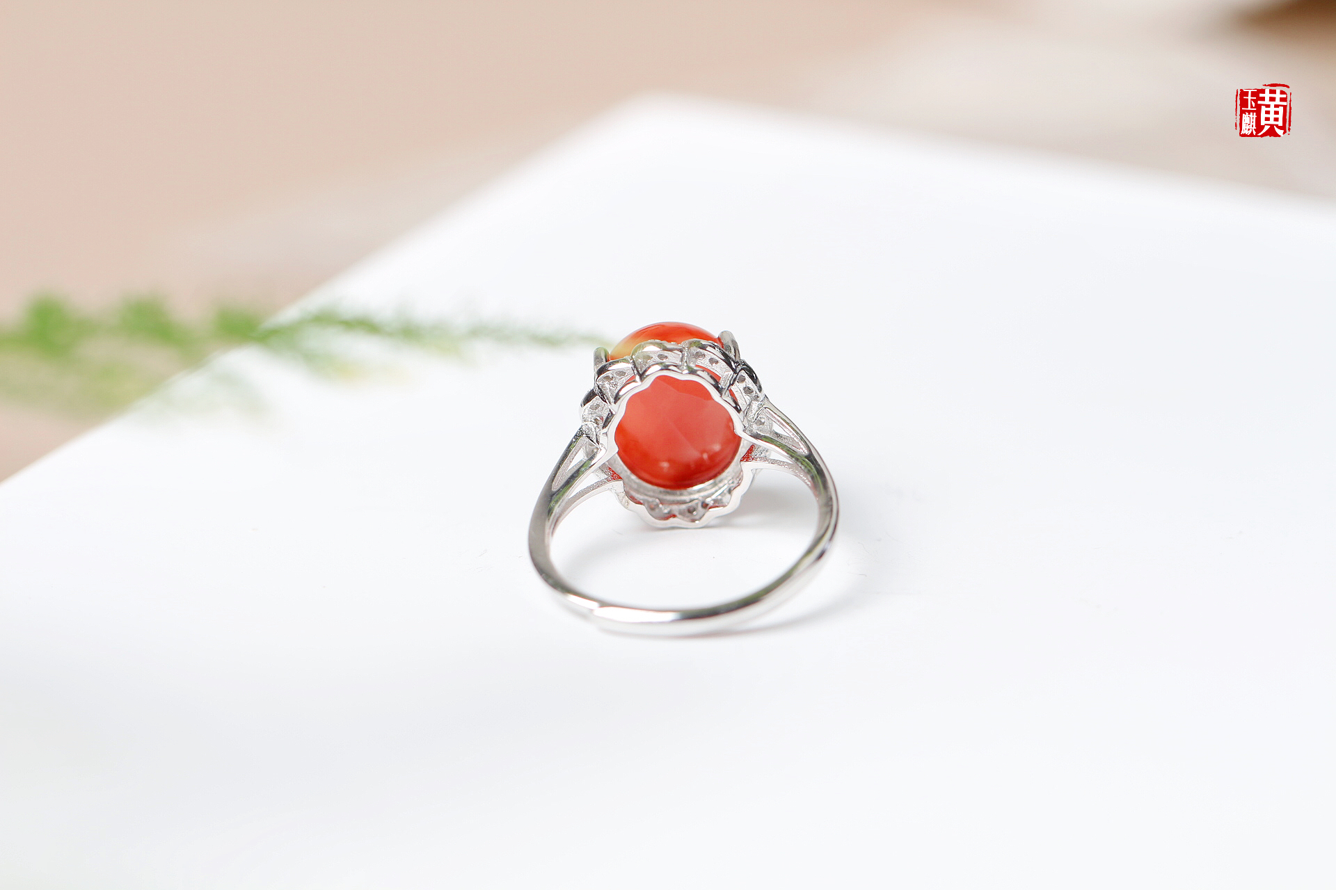 南红戒指【璇瑰】,925银镶,活扣可调节