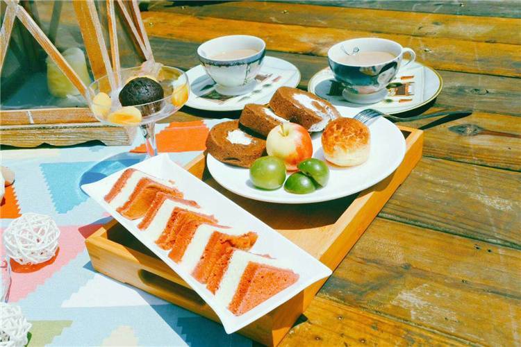 午后阳光正盛,铺起一块地毯,放上水果蛋糕