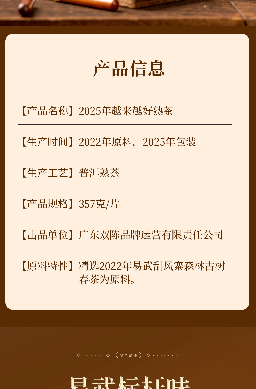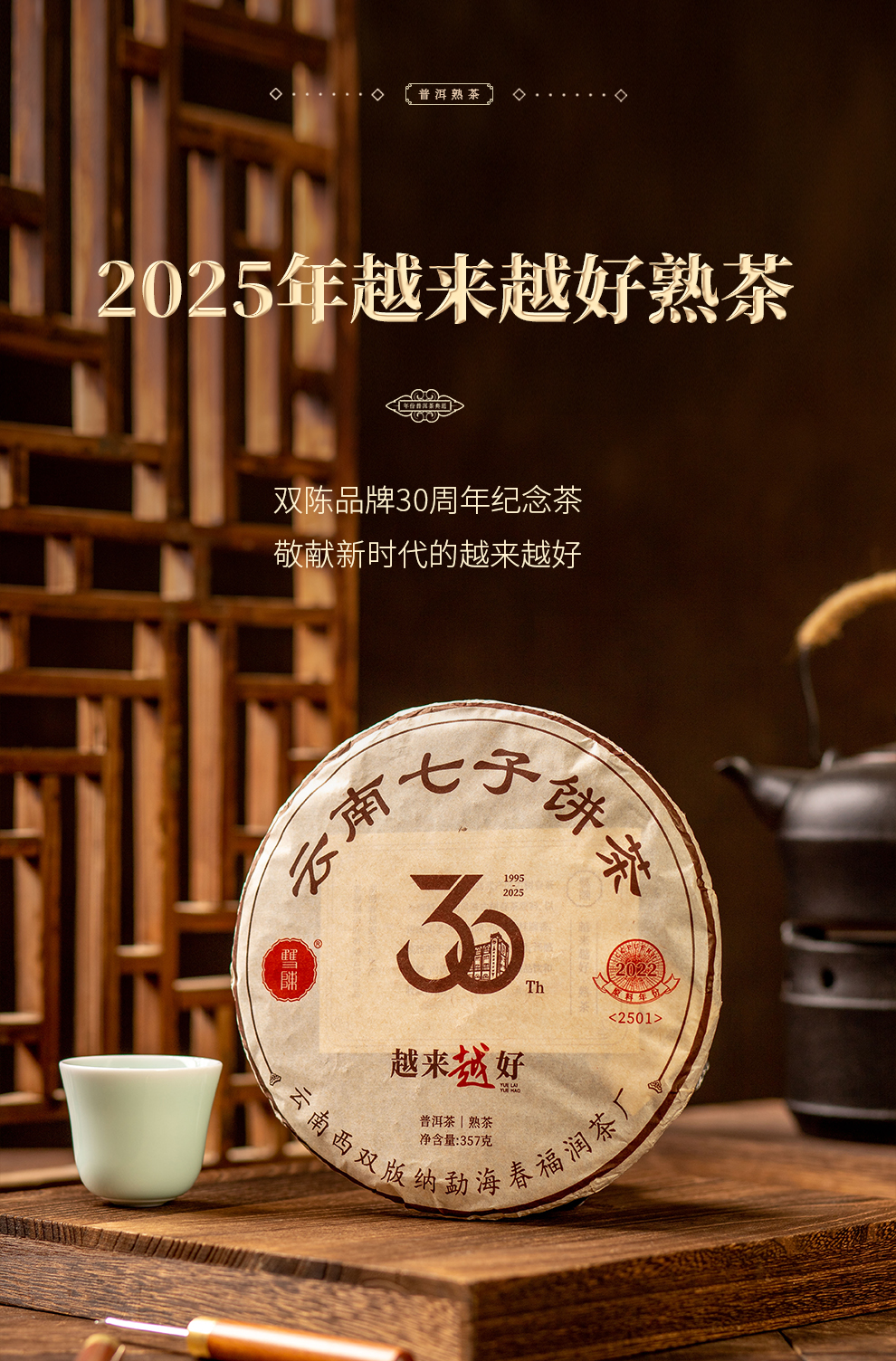双陈普洱2025年越来越好熟茶357克品牌30周年纪念茶甜顺滑甜易武标杆味