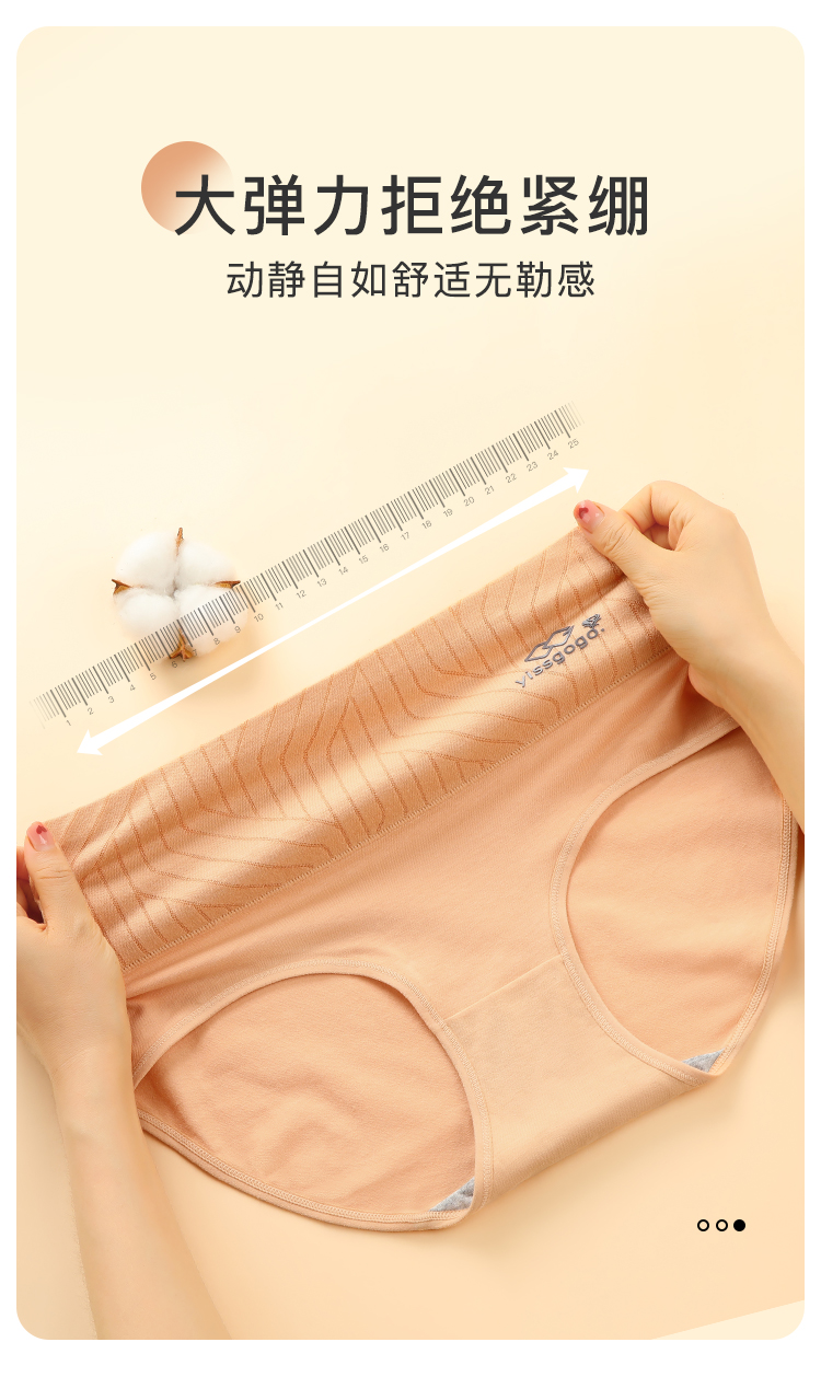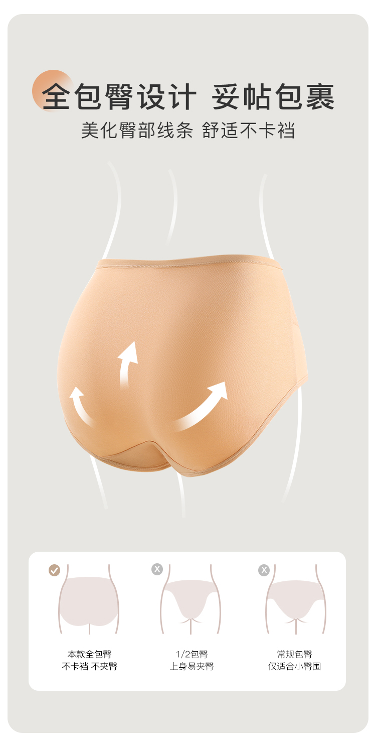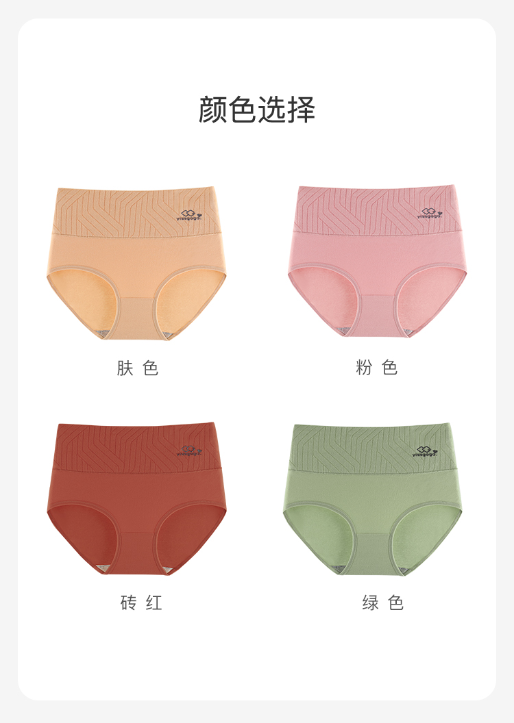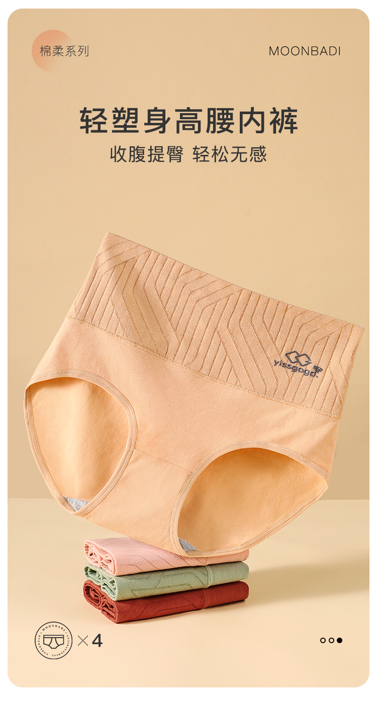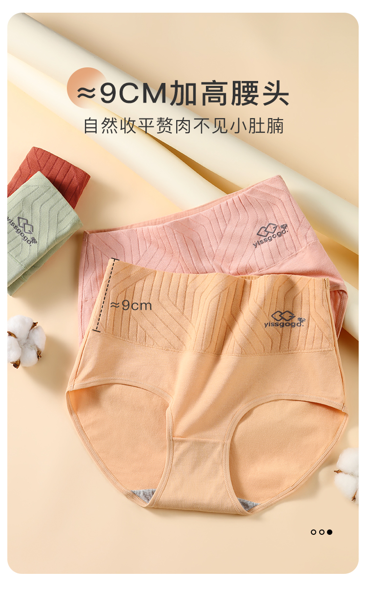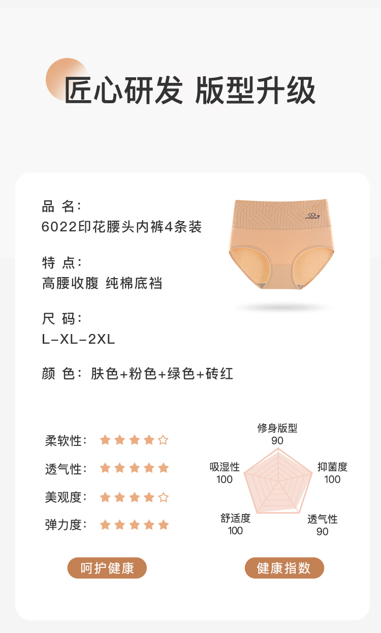 【加大码4条装】高腰轻收腹纯棉裆内裤女棉柔舒适全包臀不勒印花腰头内裤4条装