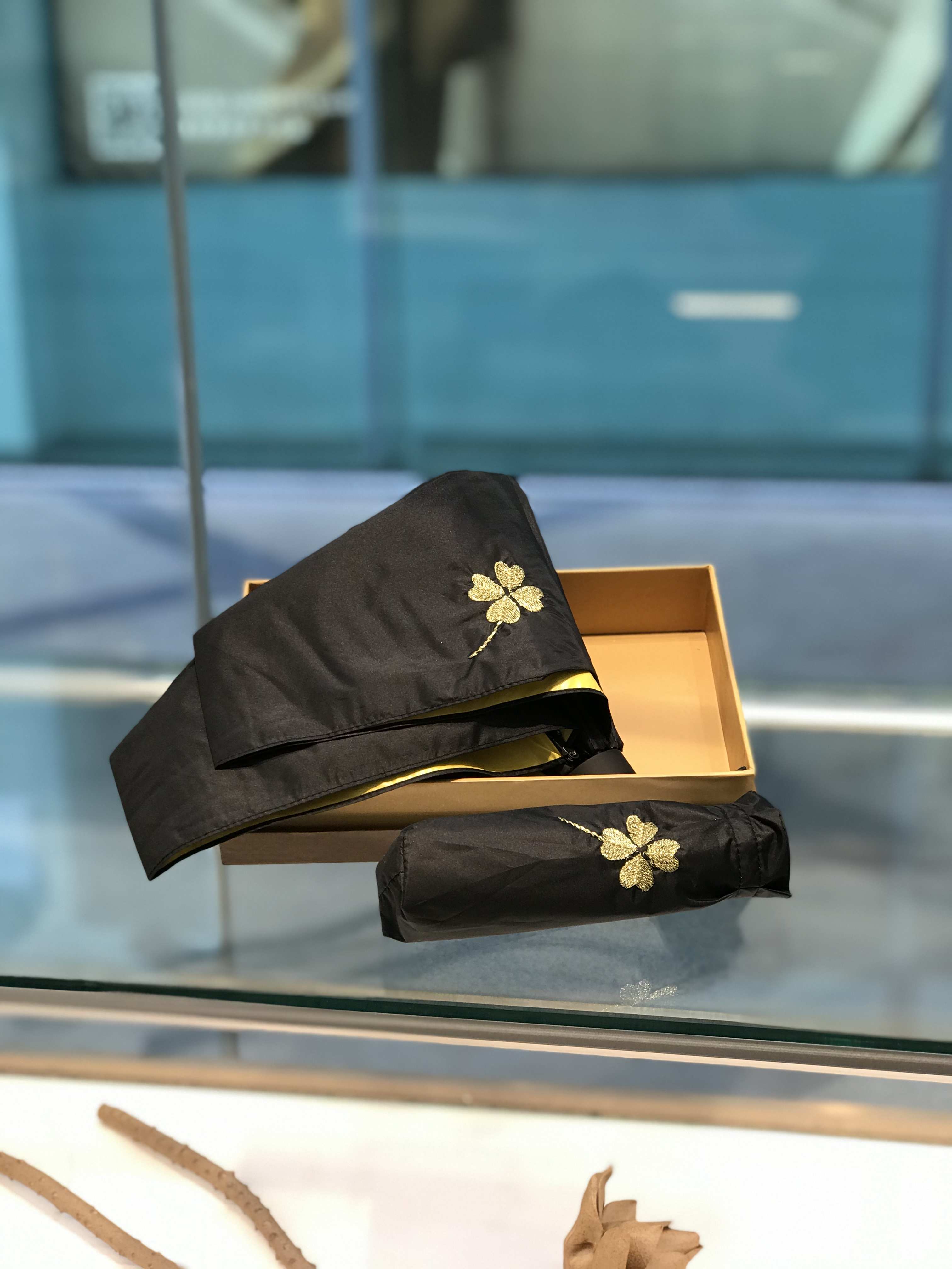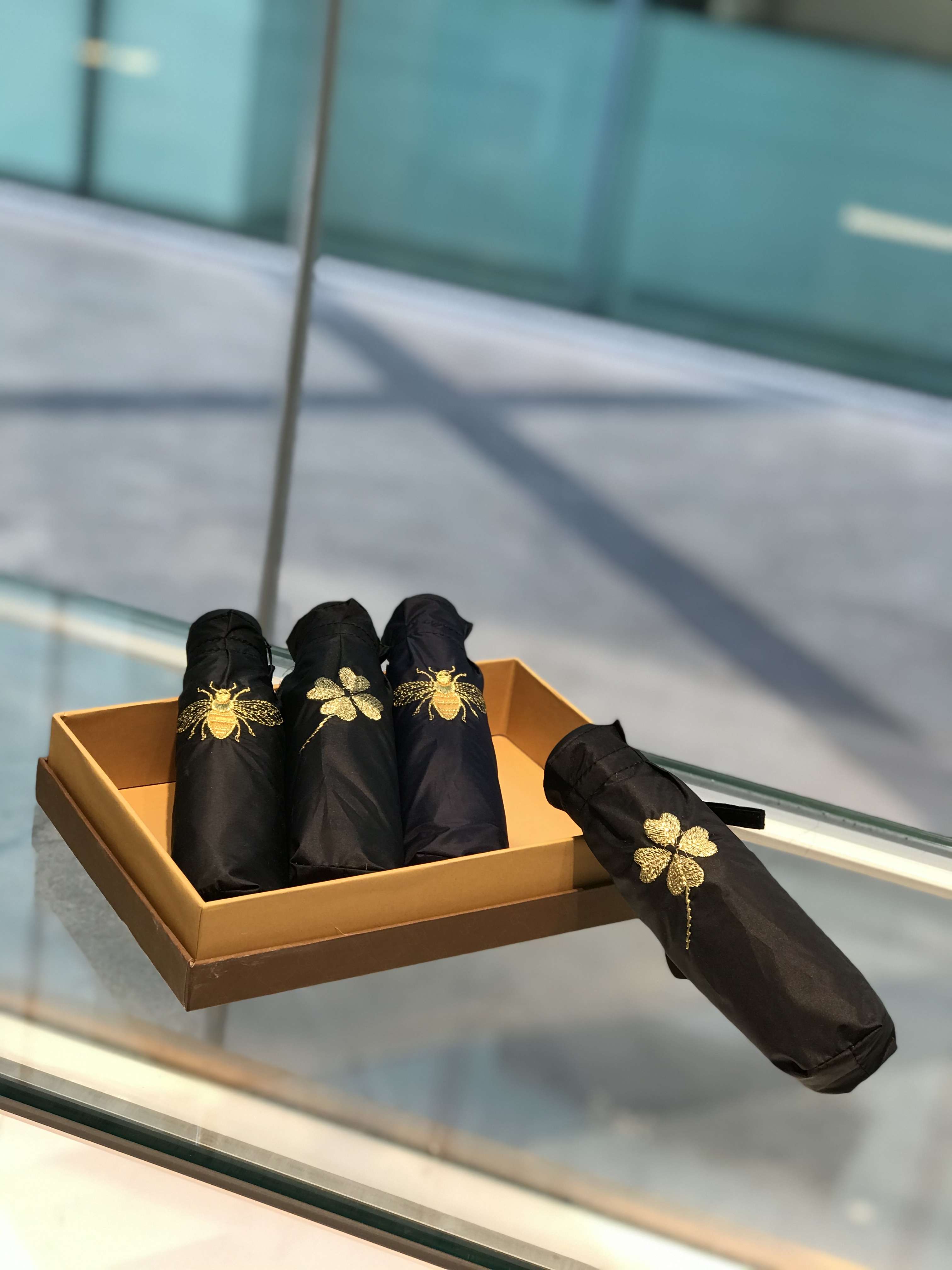 优品堂《蜂迷蝶恋》五折彩胶超轻“全遮光”防紫外线伞 商品图0