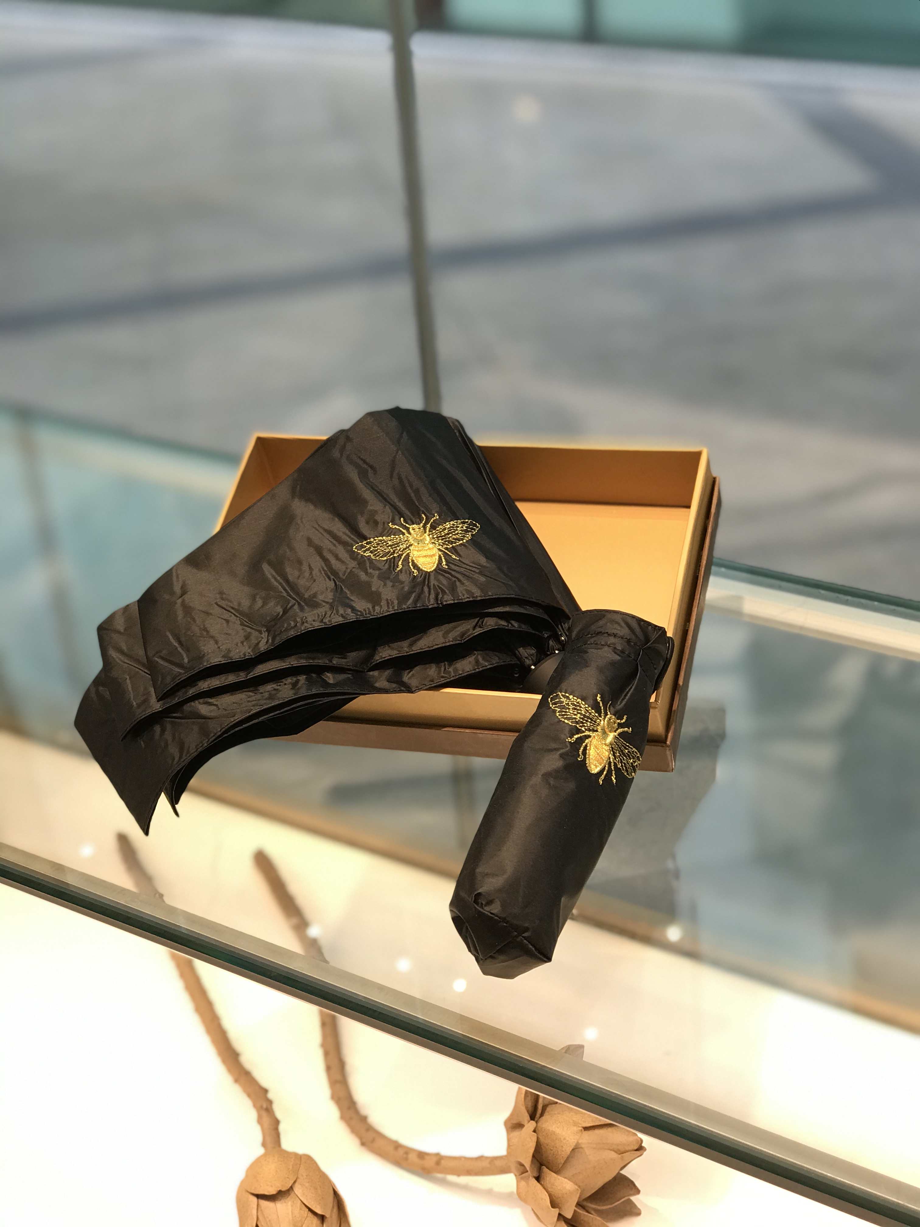 优品堂《蜂迷蝶恋》五折彩胶超轻“全遮光”防紫外线伞