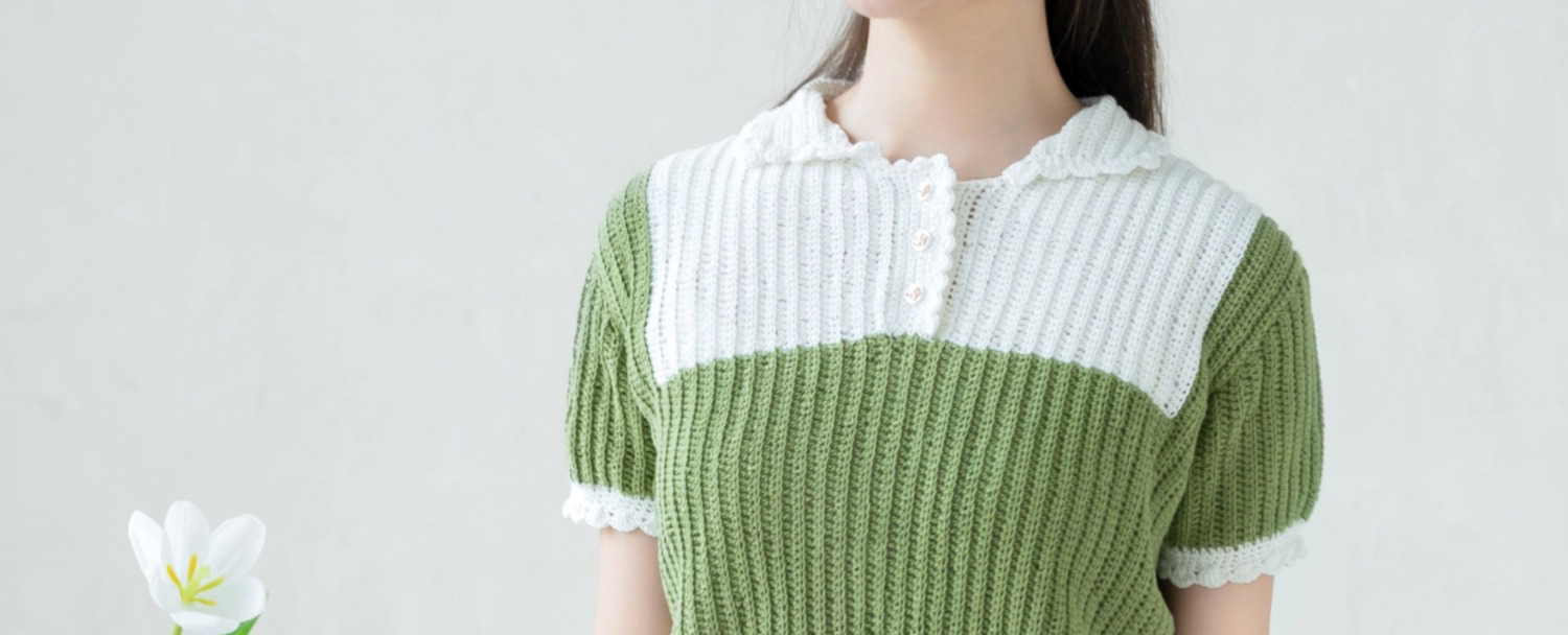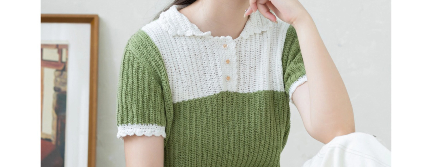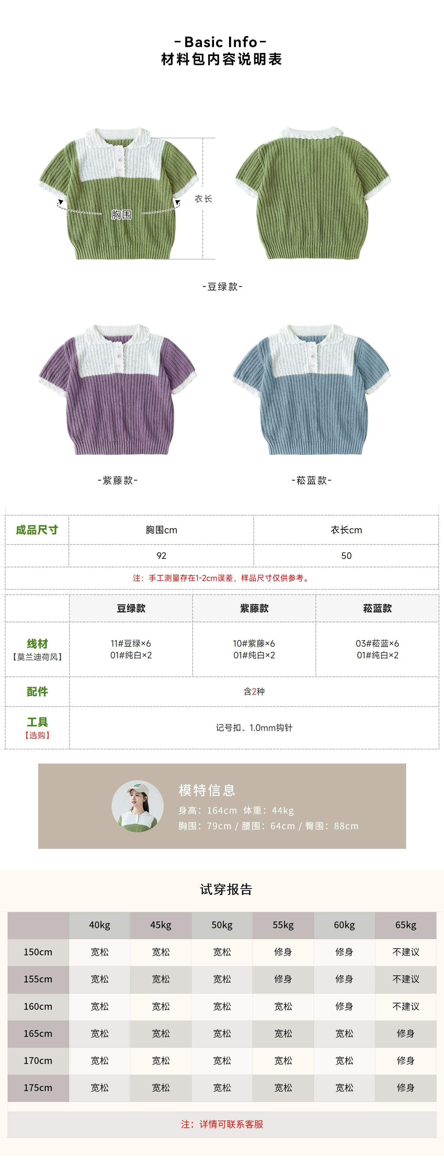 苏苏姐家法式拼色小衫手工diy钩针棉麻线毛线团上衣自制材料包