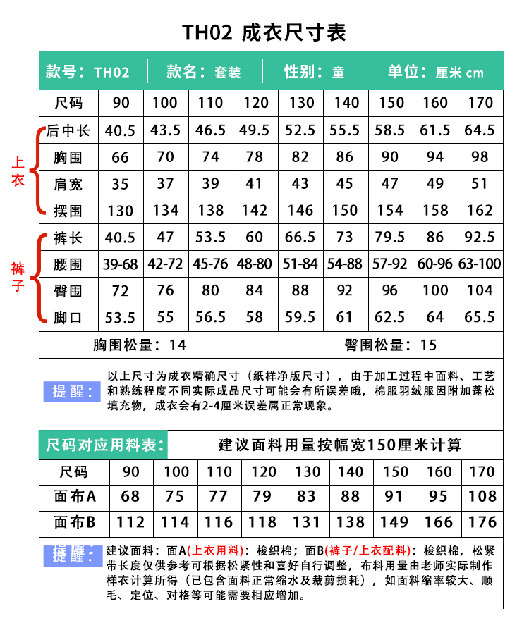 裁缝学苑TH02娃娃衫纸样阔腿裤套装儿童装上衣做衣服样板图纸