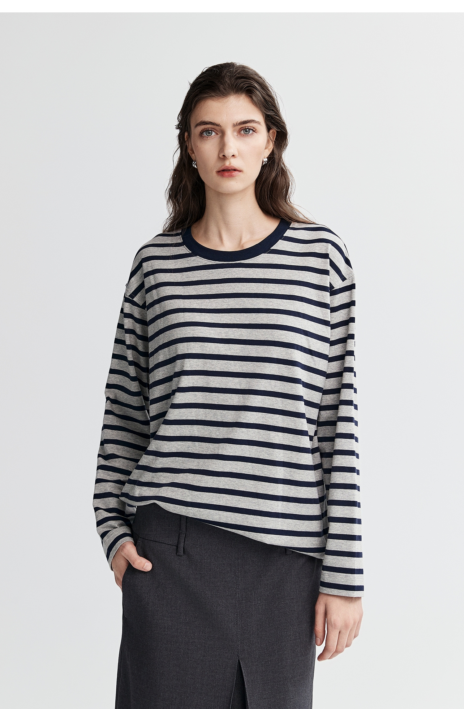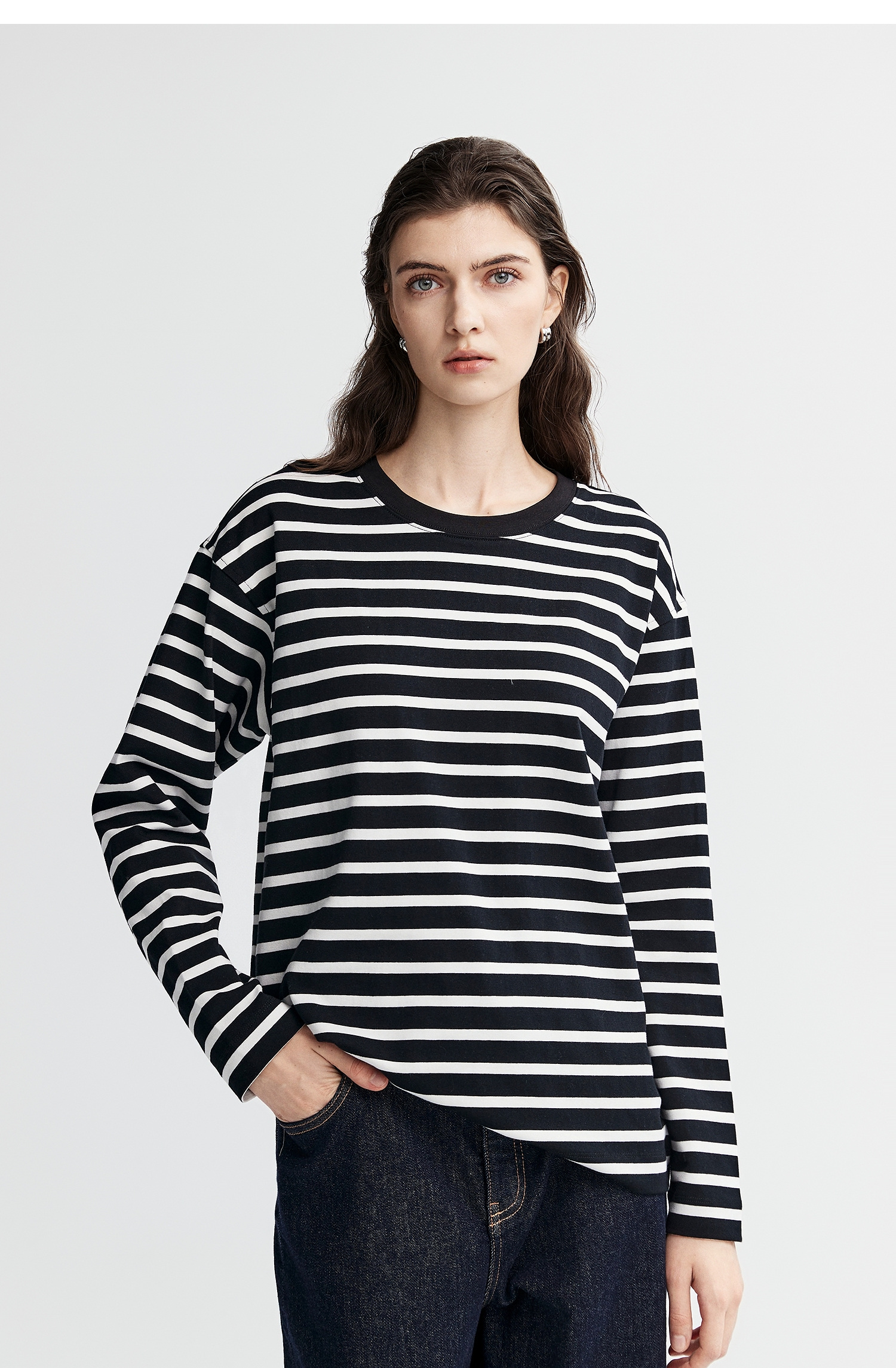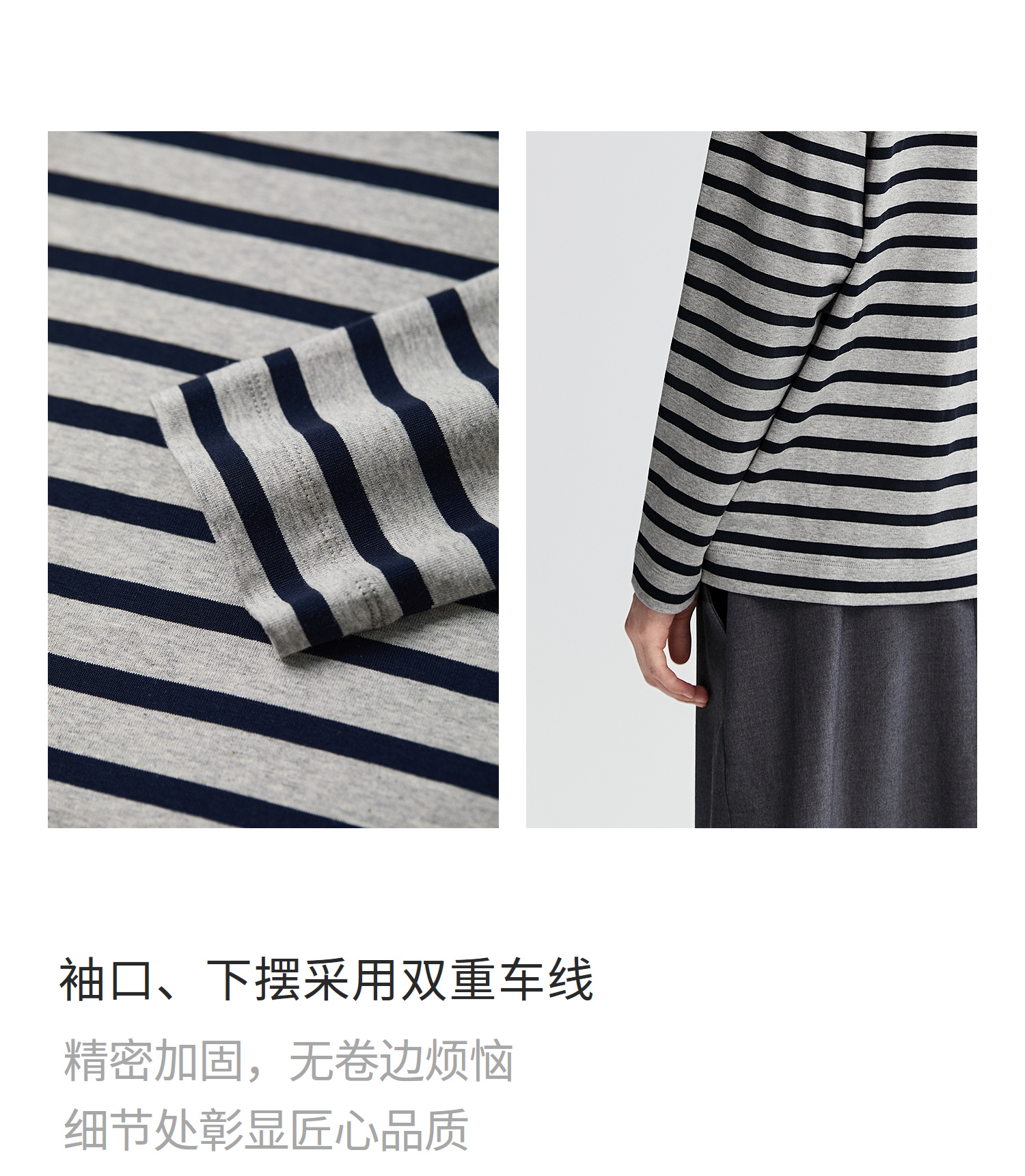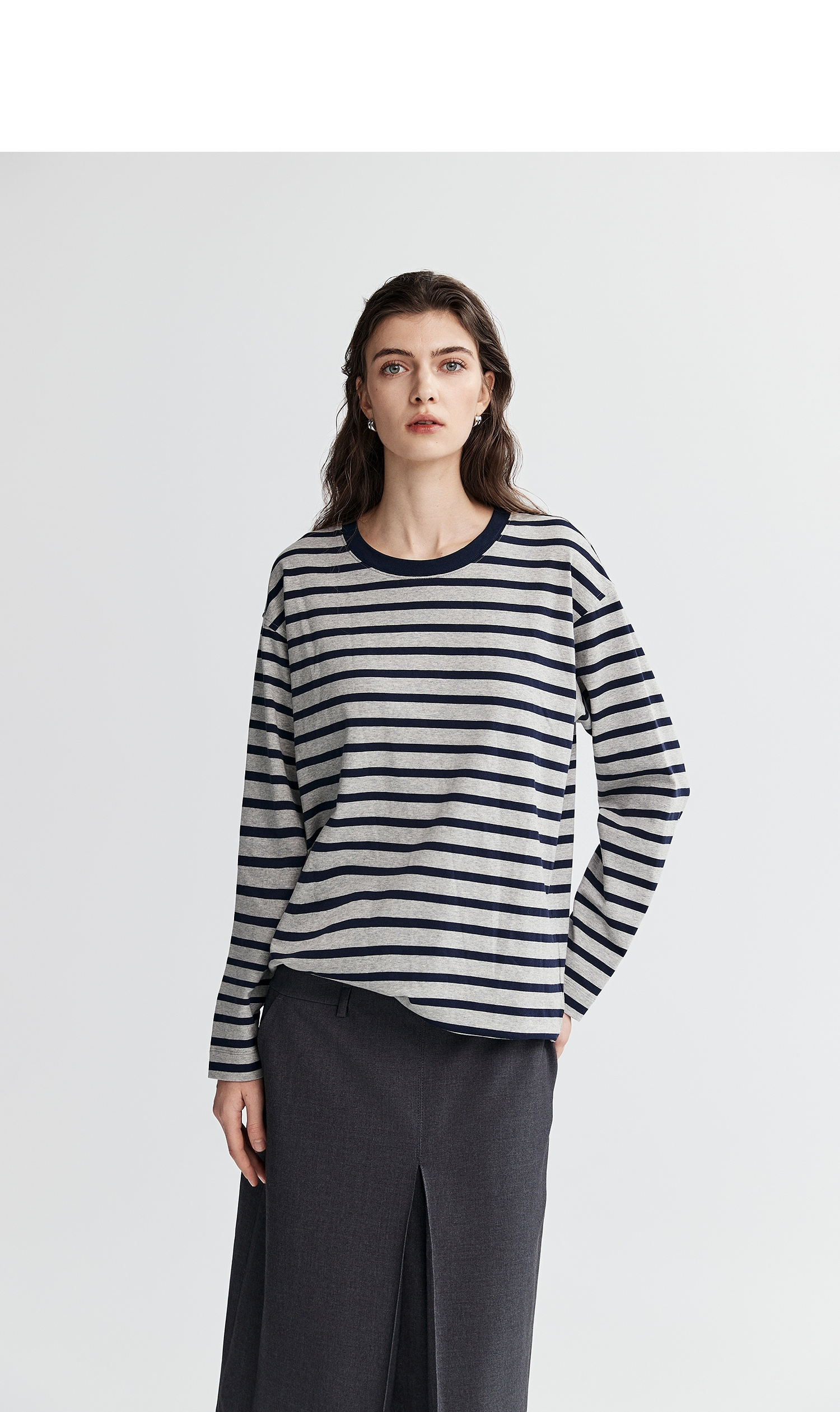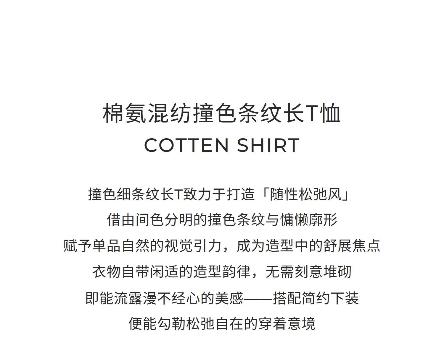 棉仓366601042-棉氨混纺撞色条纹长T恤