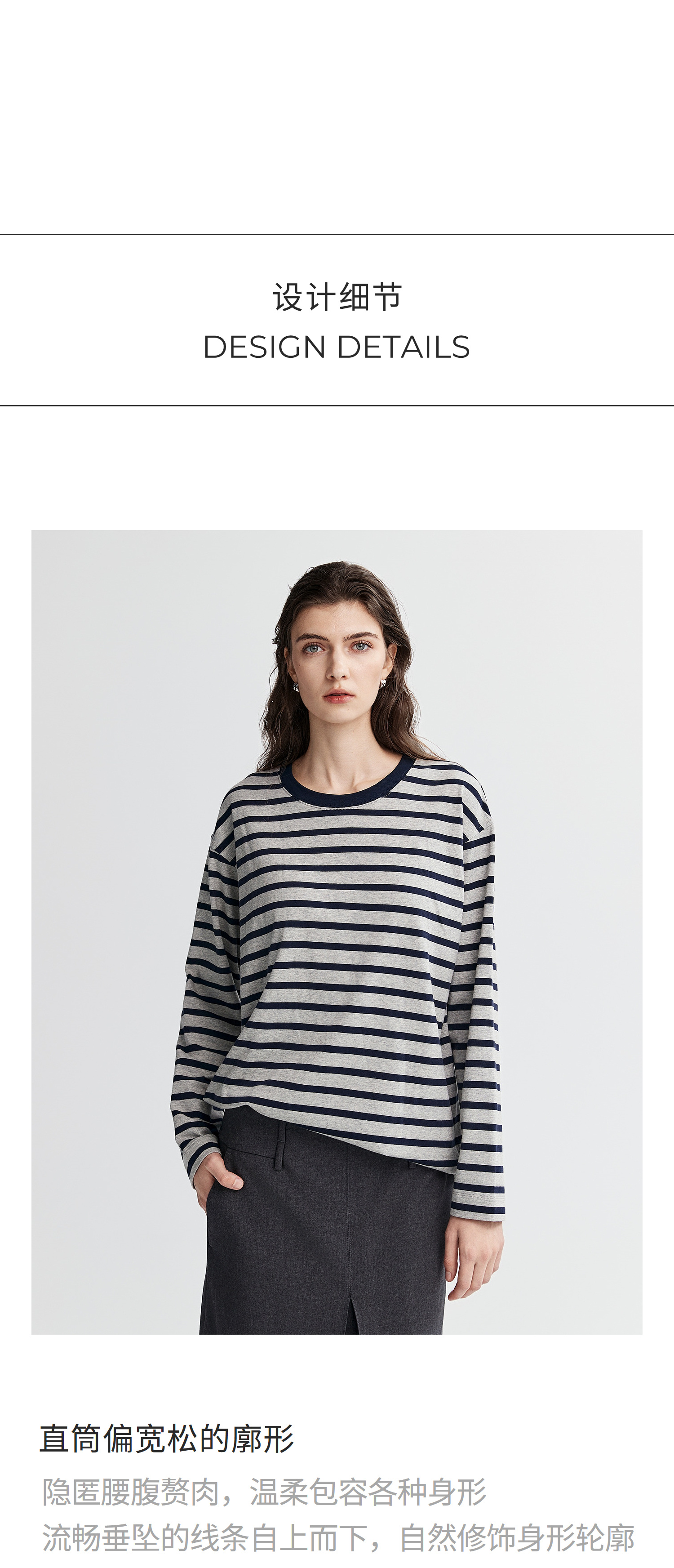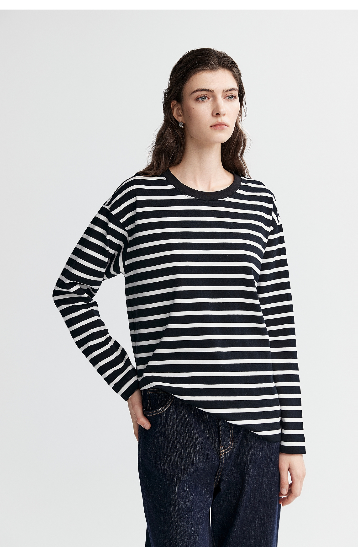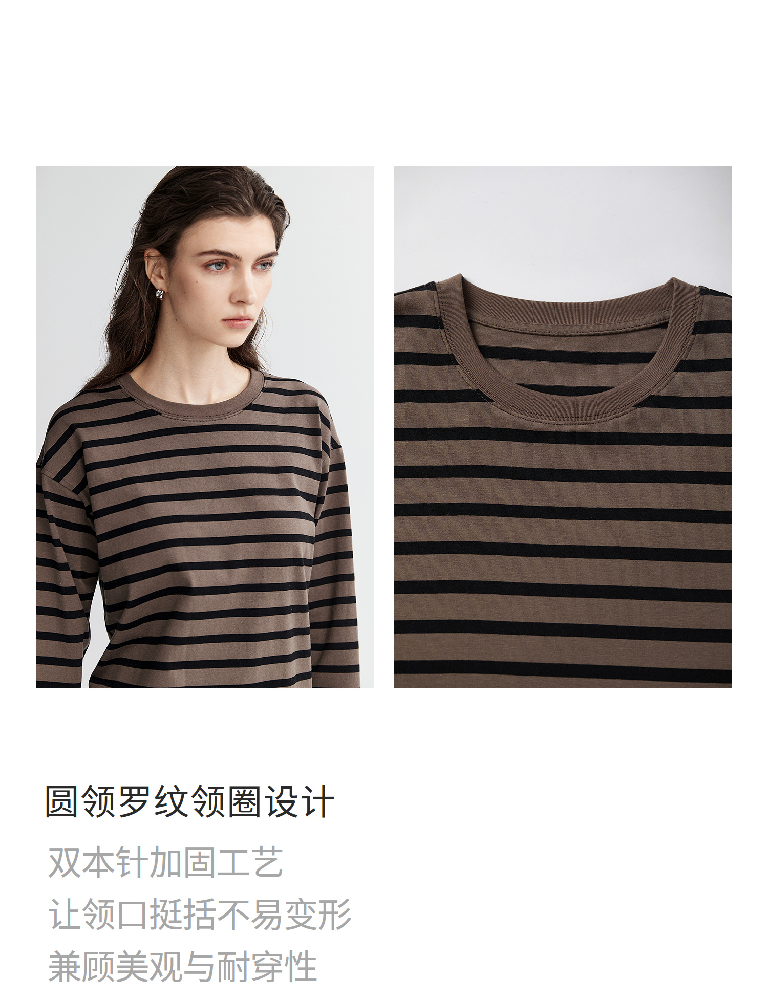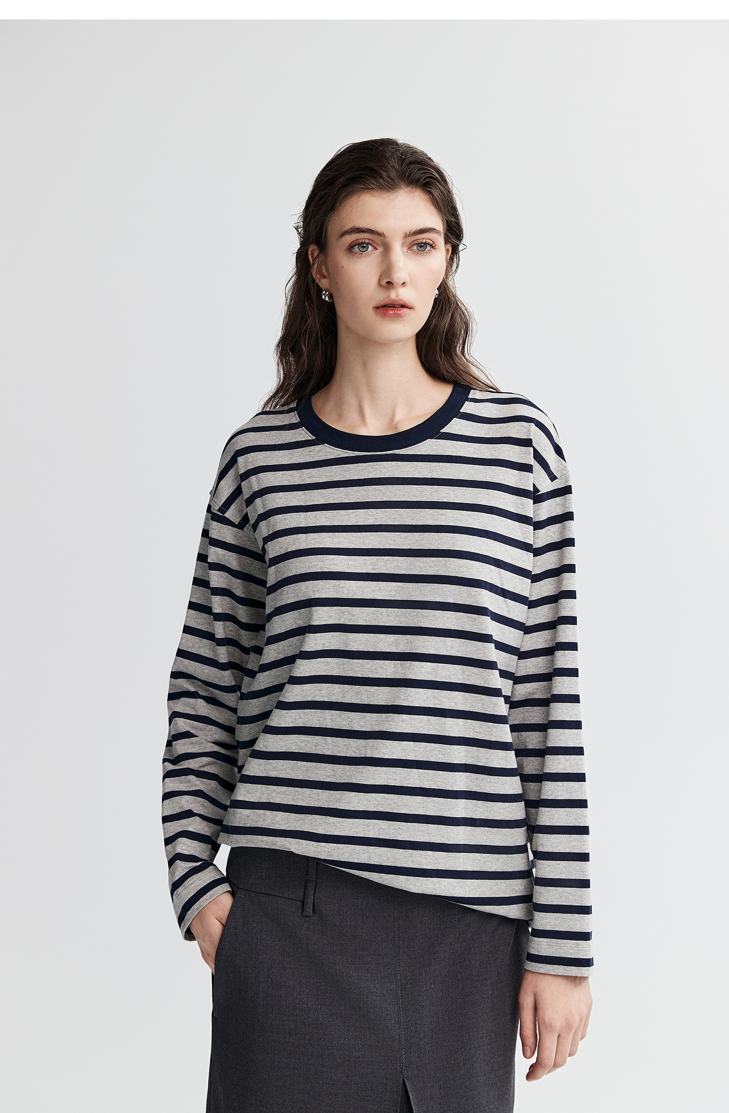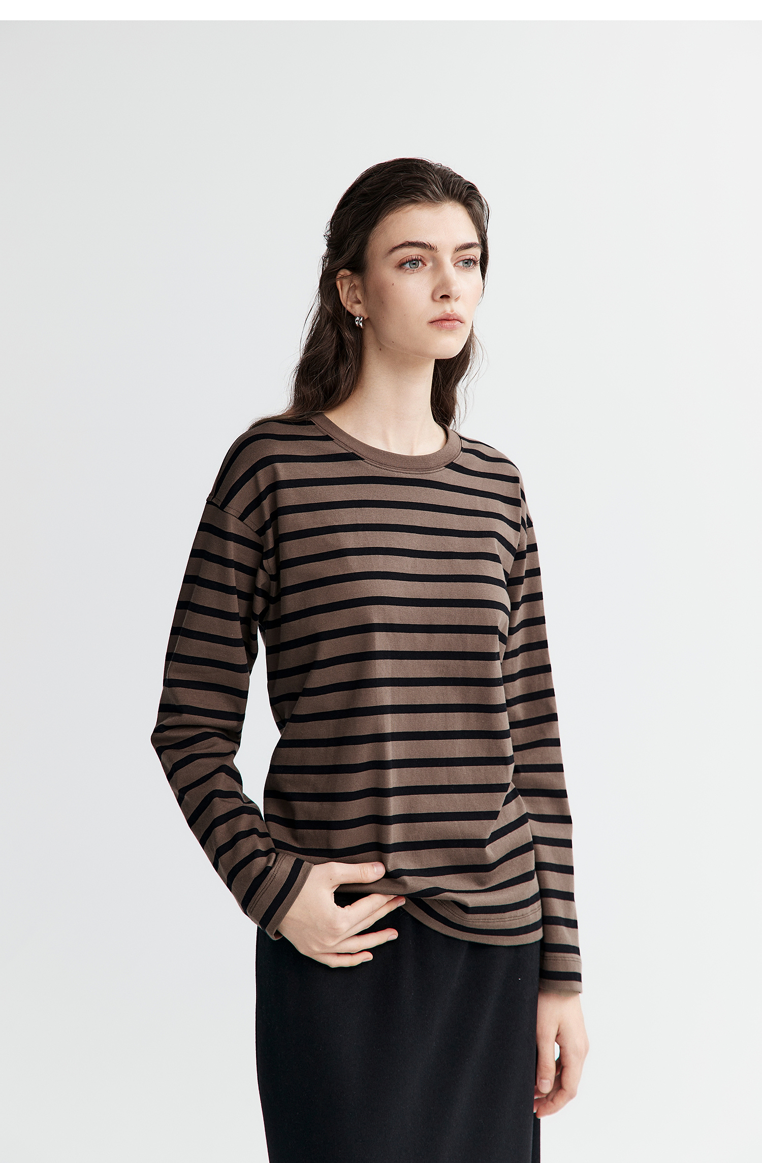 棉仓366601042-棉氨混纺撞色条纹长T恤