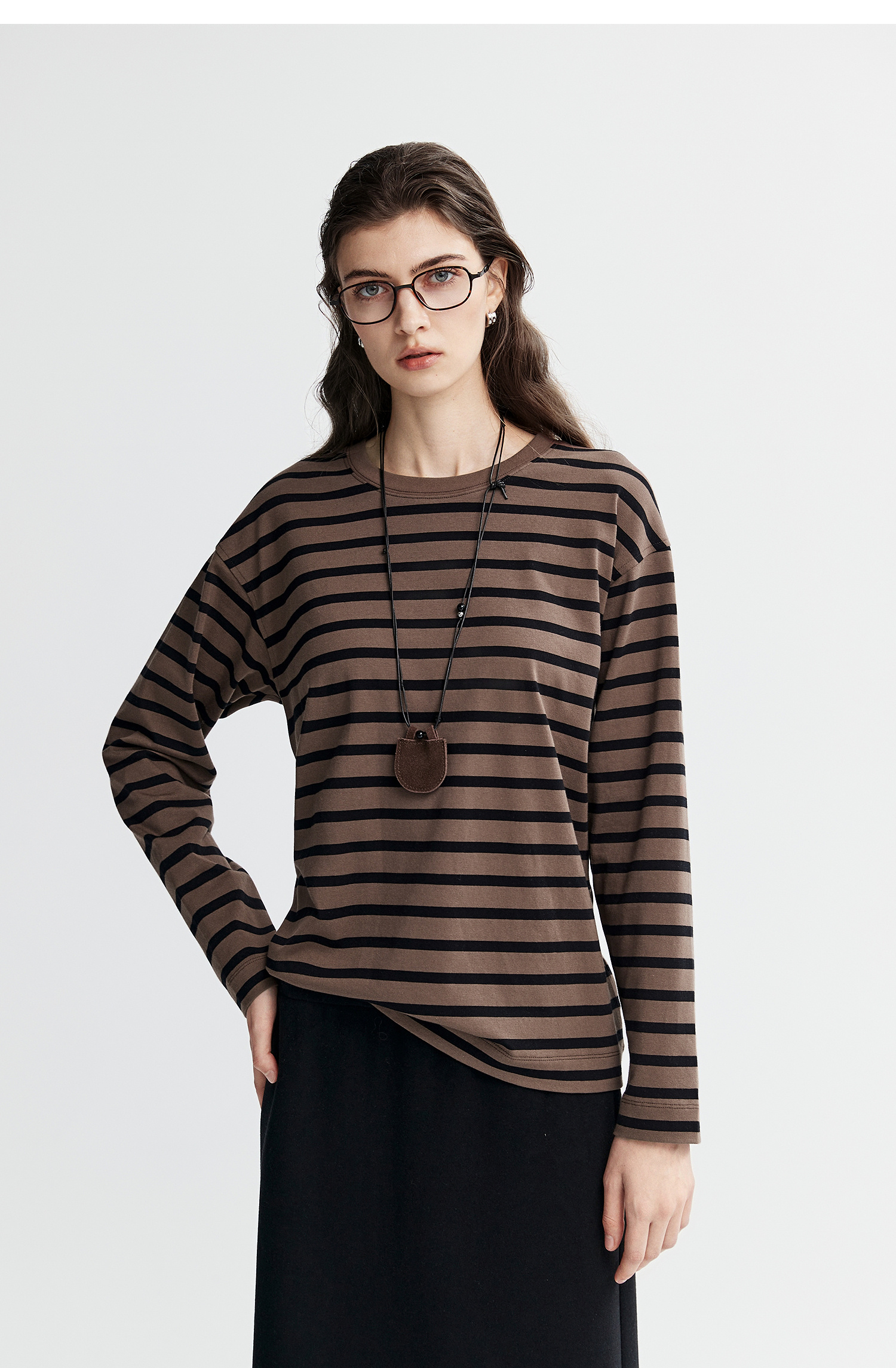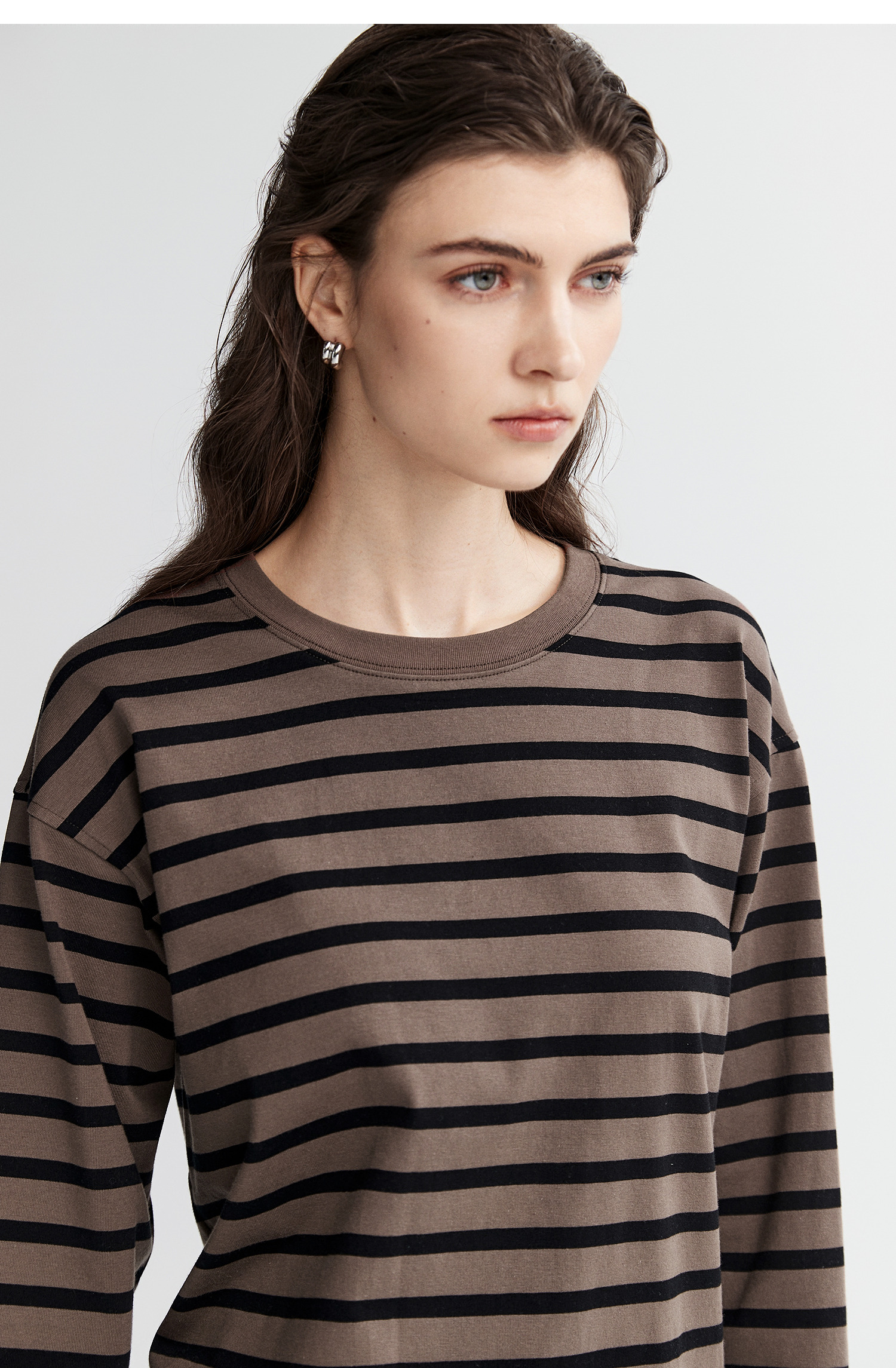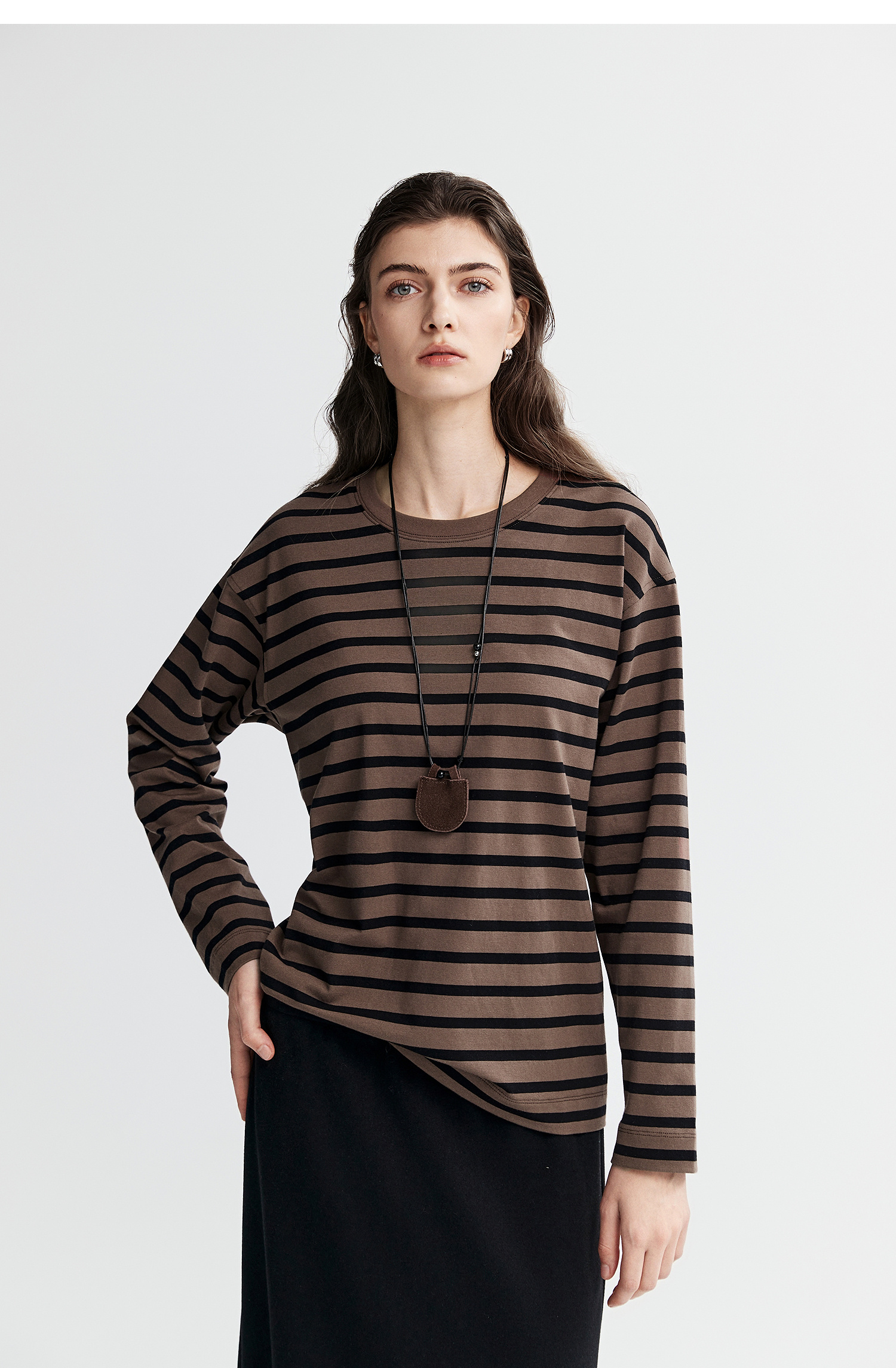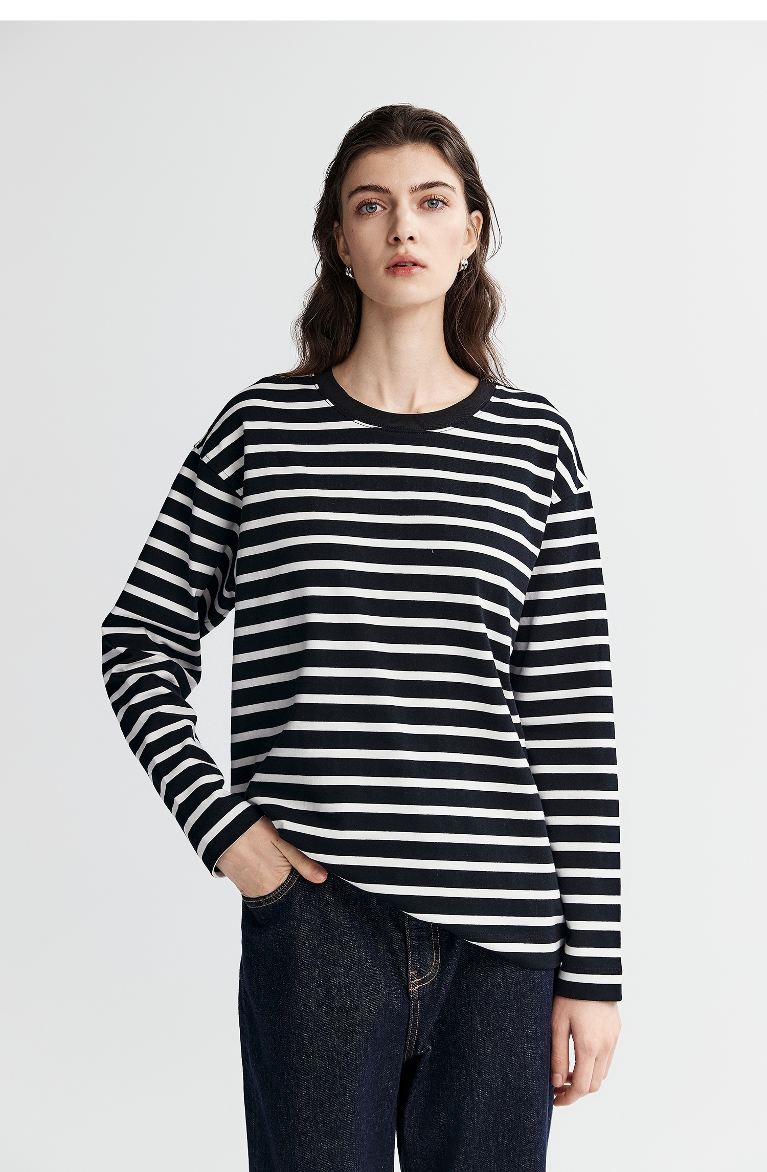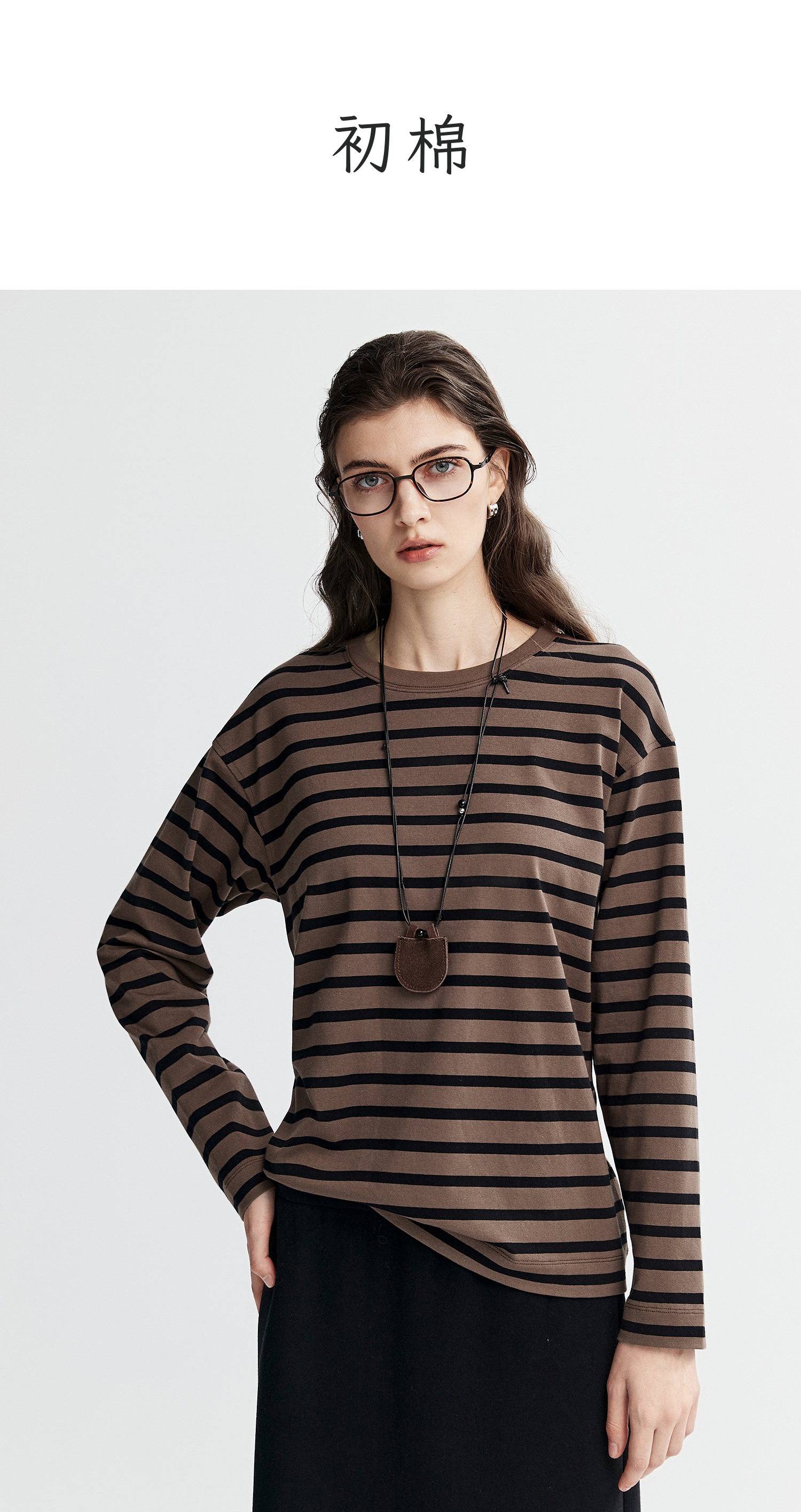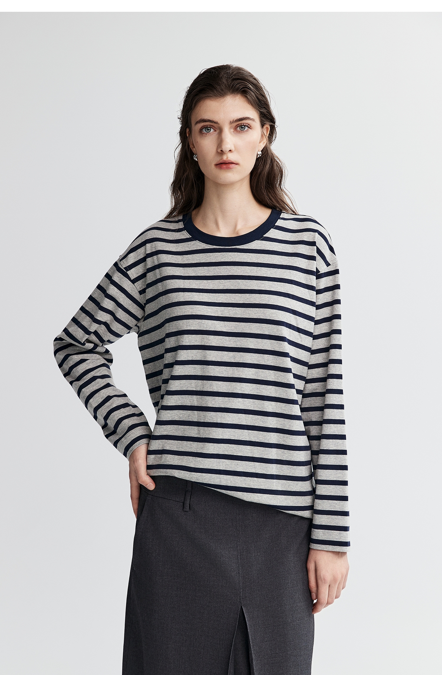 棉仓366601042-棉氨混纺撞色条纹长T恤