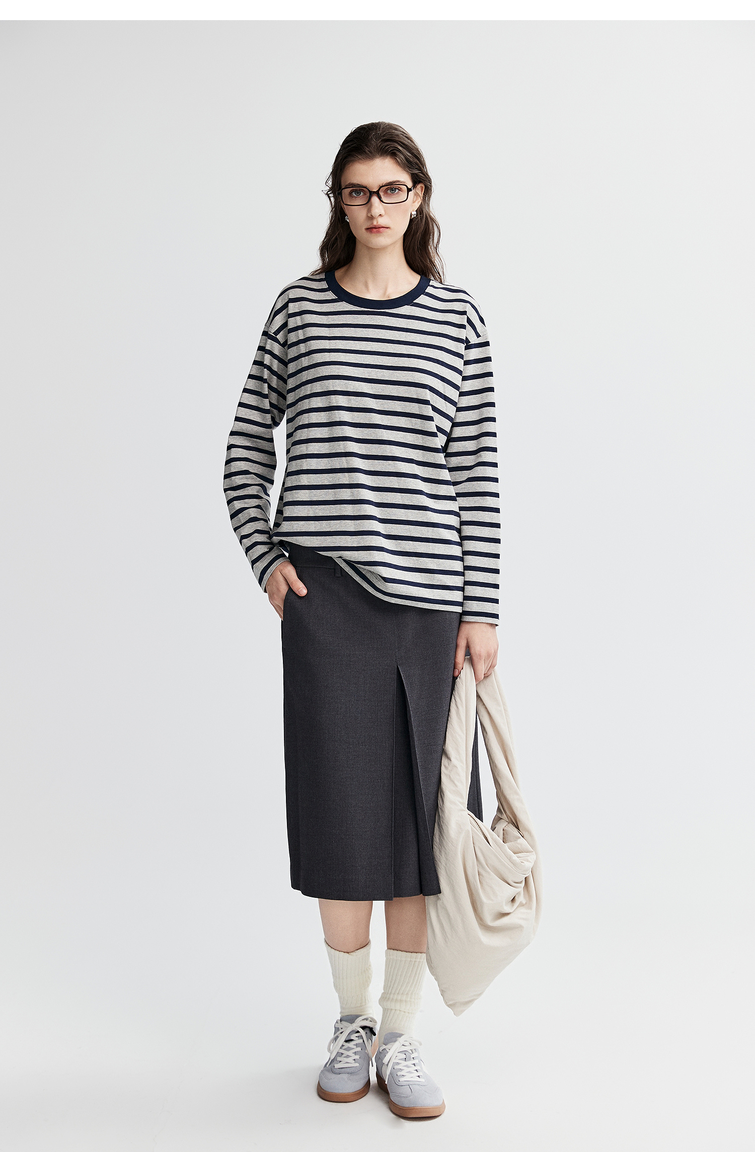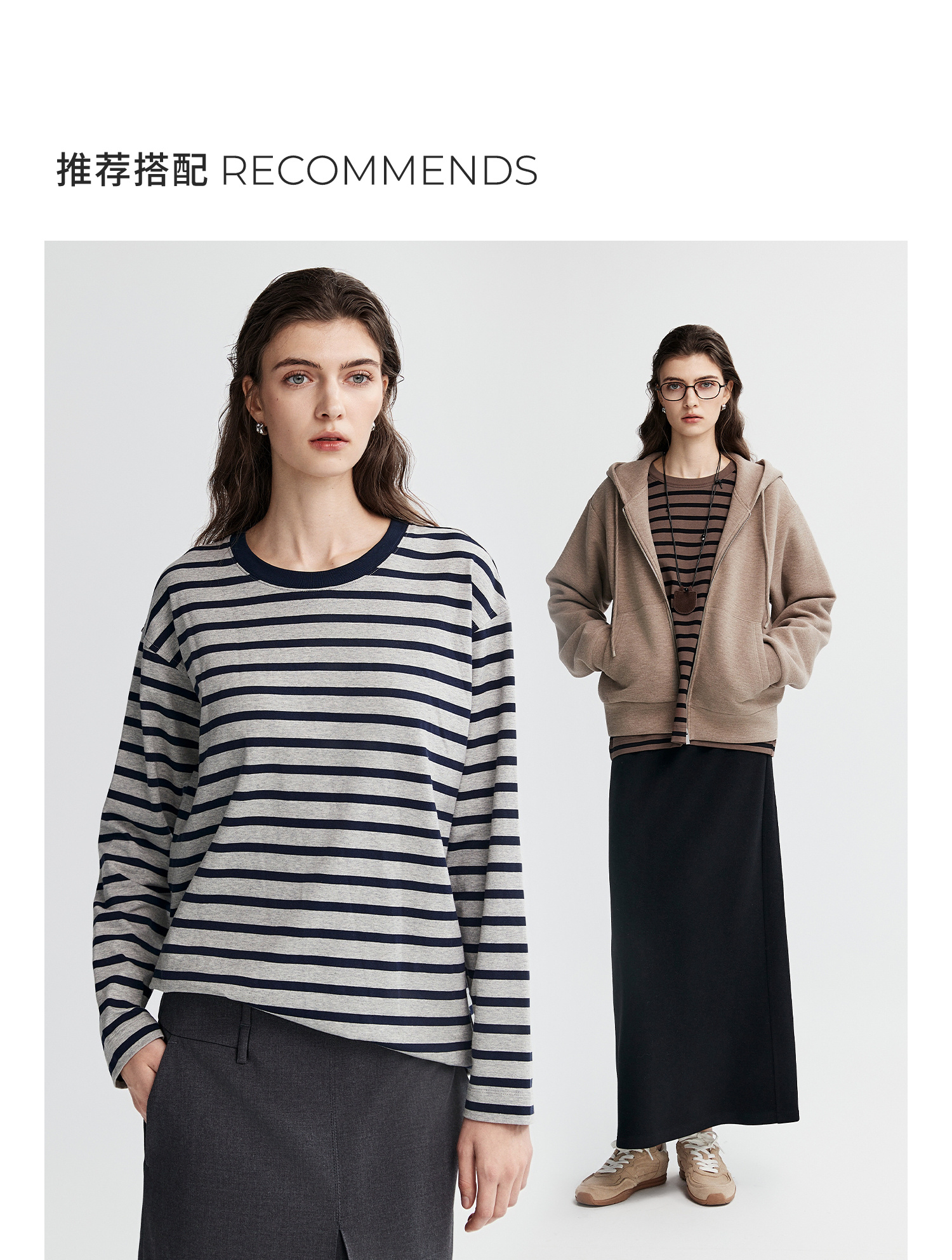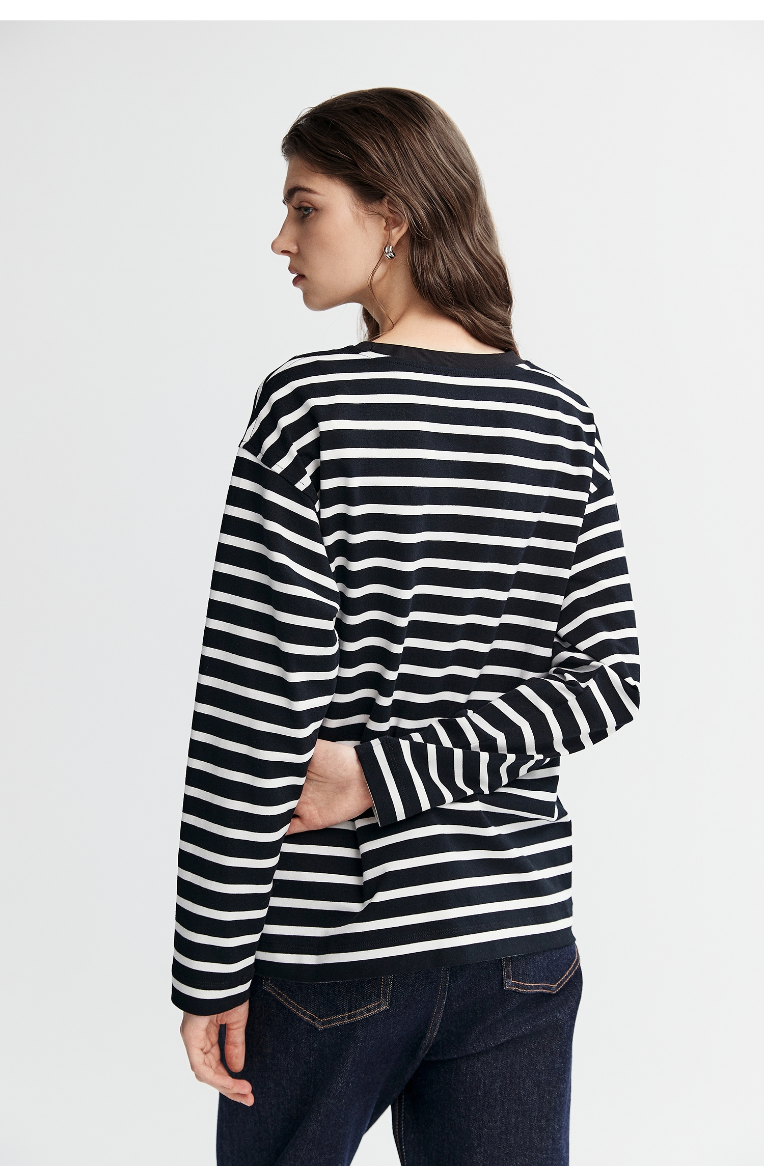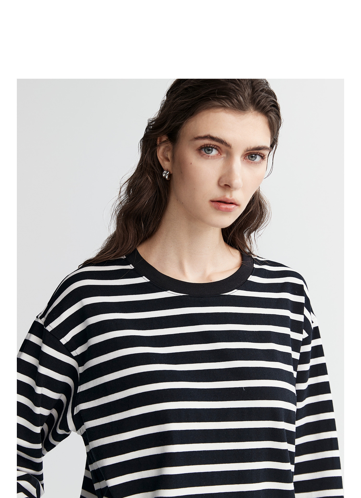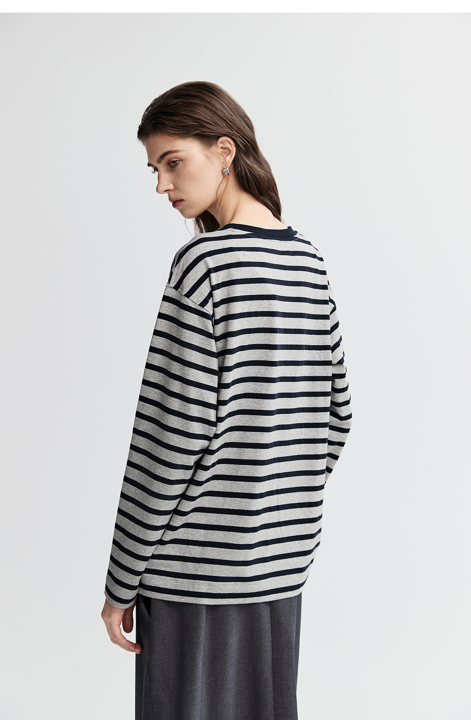 棉仓366601042-棉氨混纺撞色条纹长T恤