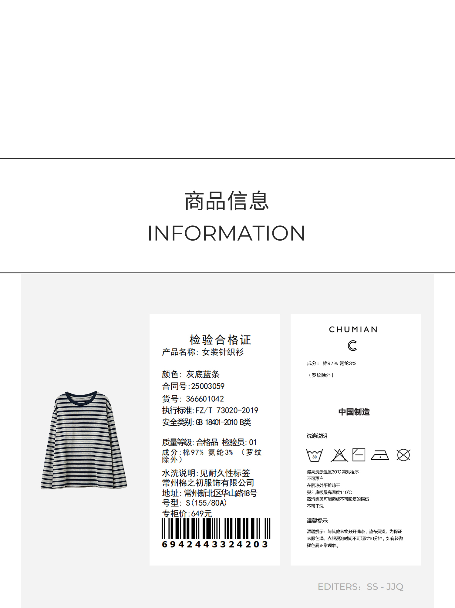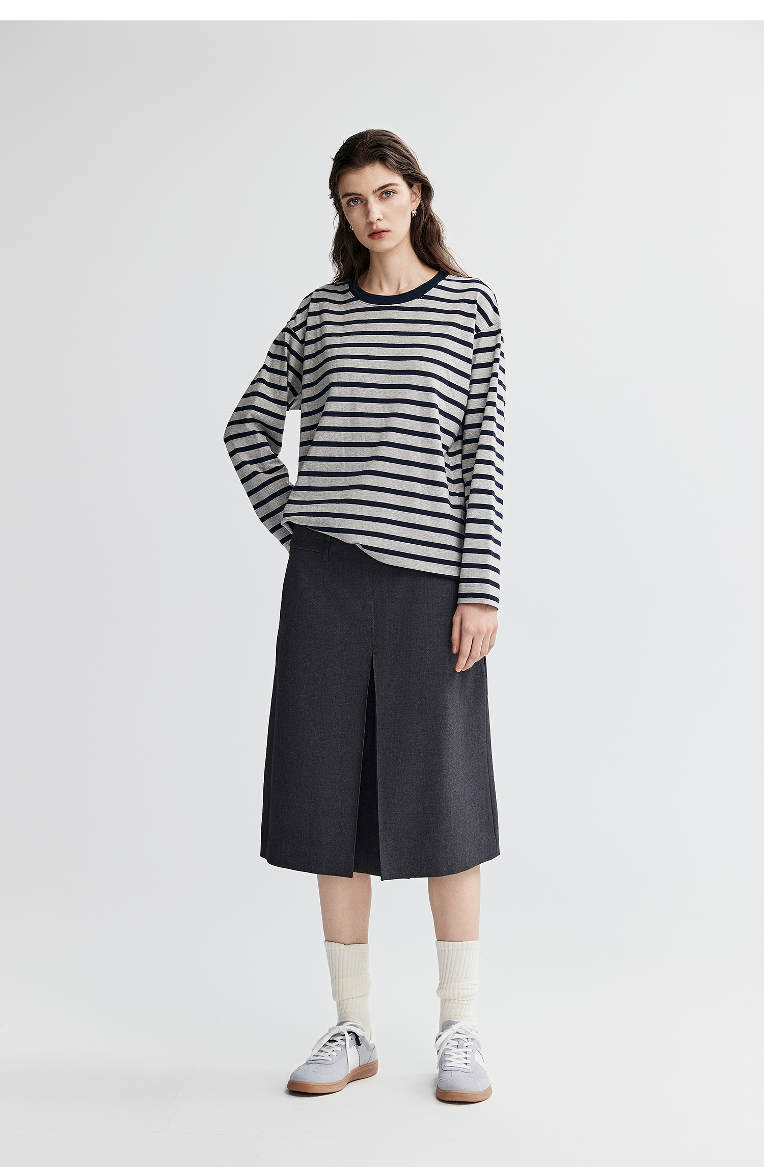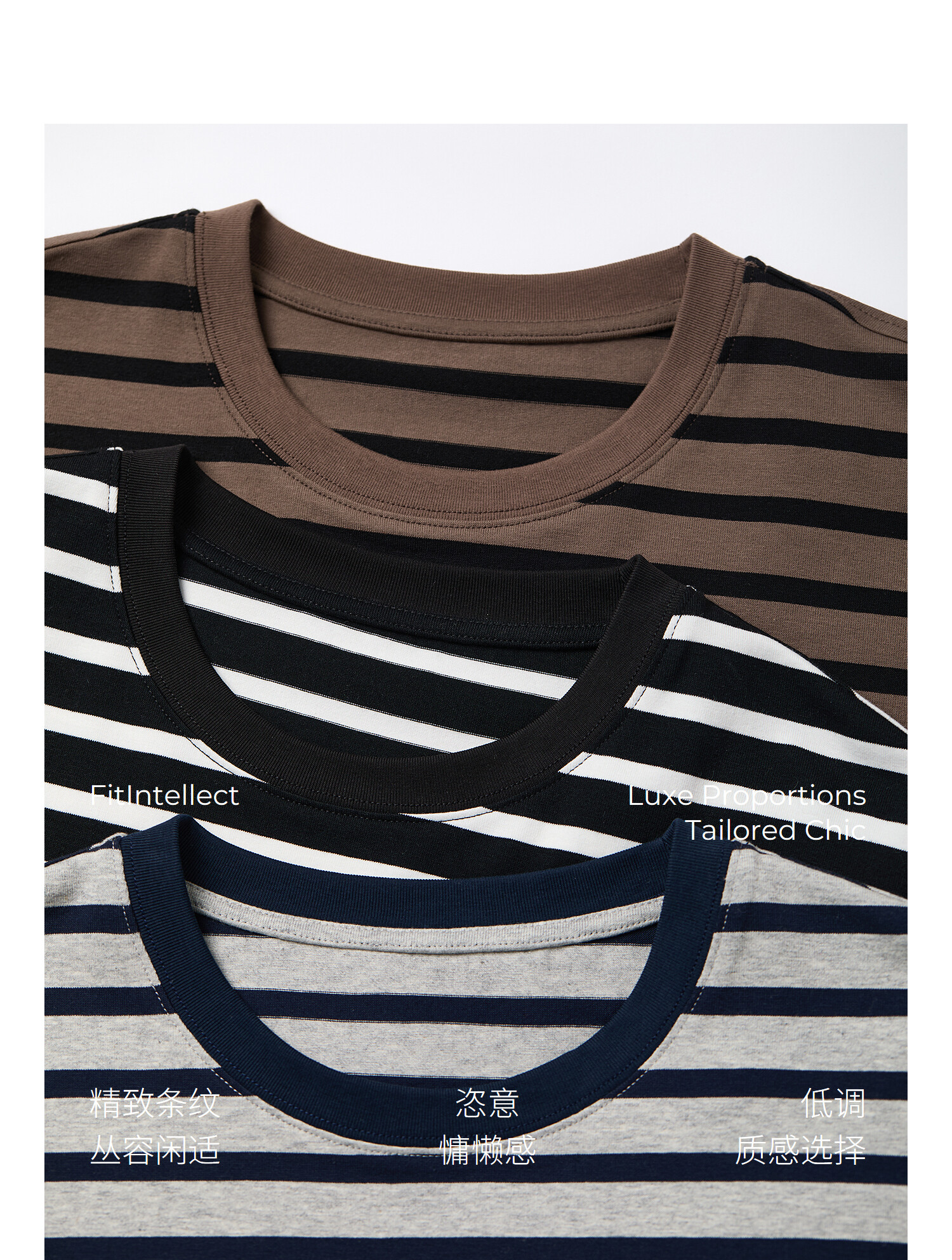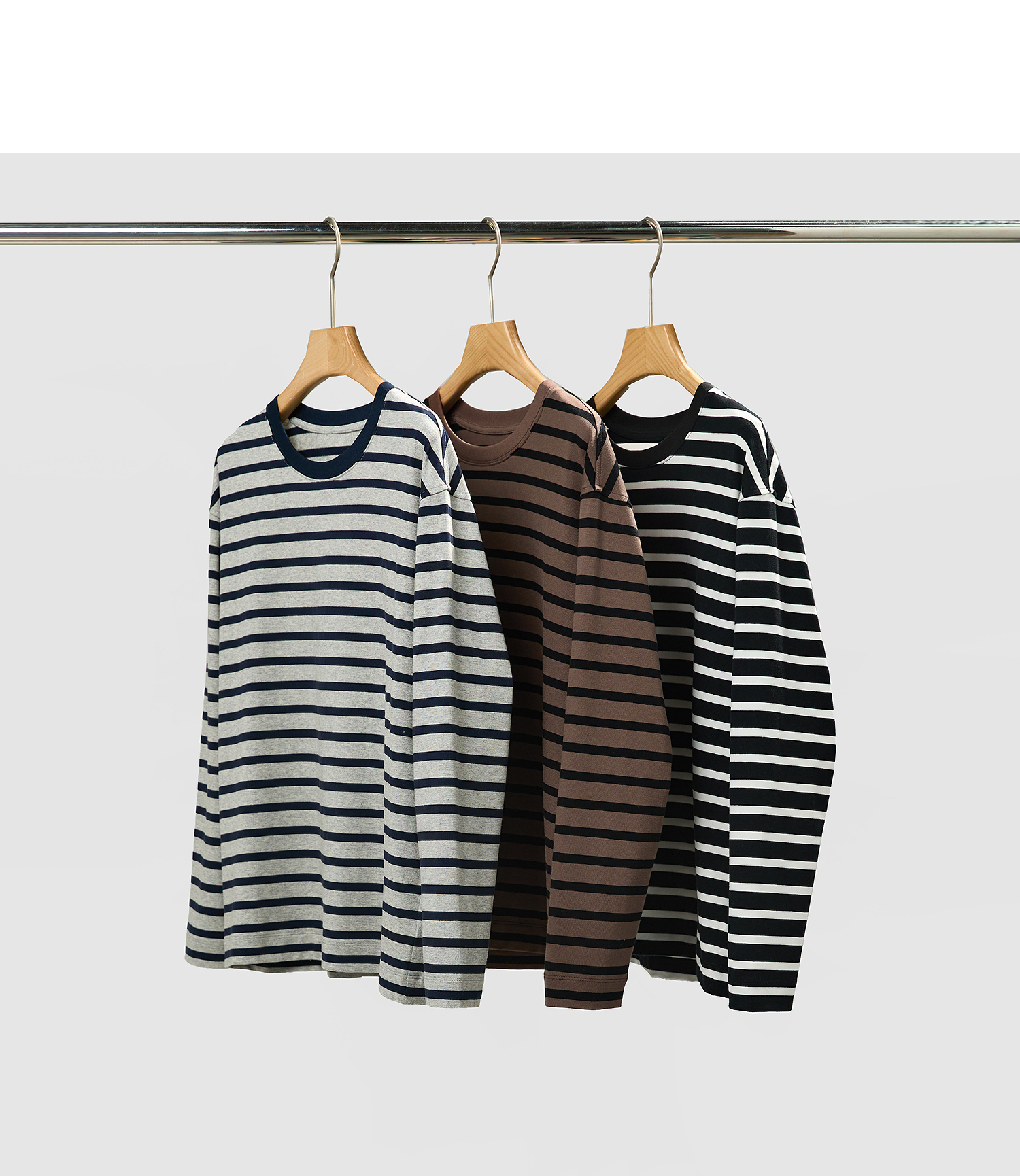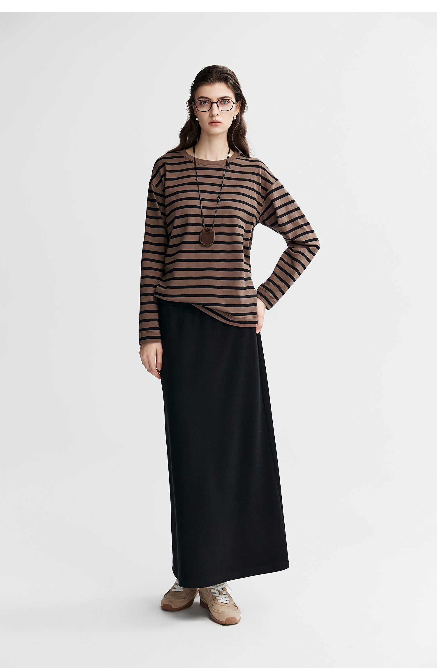 棉仓366601042-棉氨混纺撞色条纹长T恤