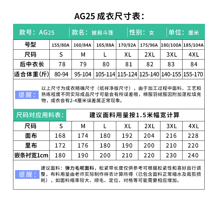 裁缝学苑 AG25披肩斗篷毛呢呢子大衣中长款11服装裁剪图牛皮纸样