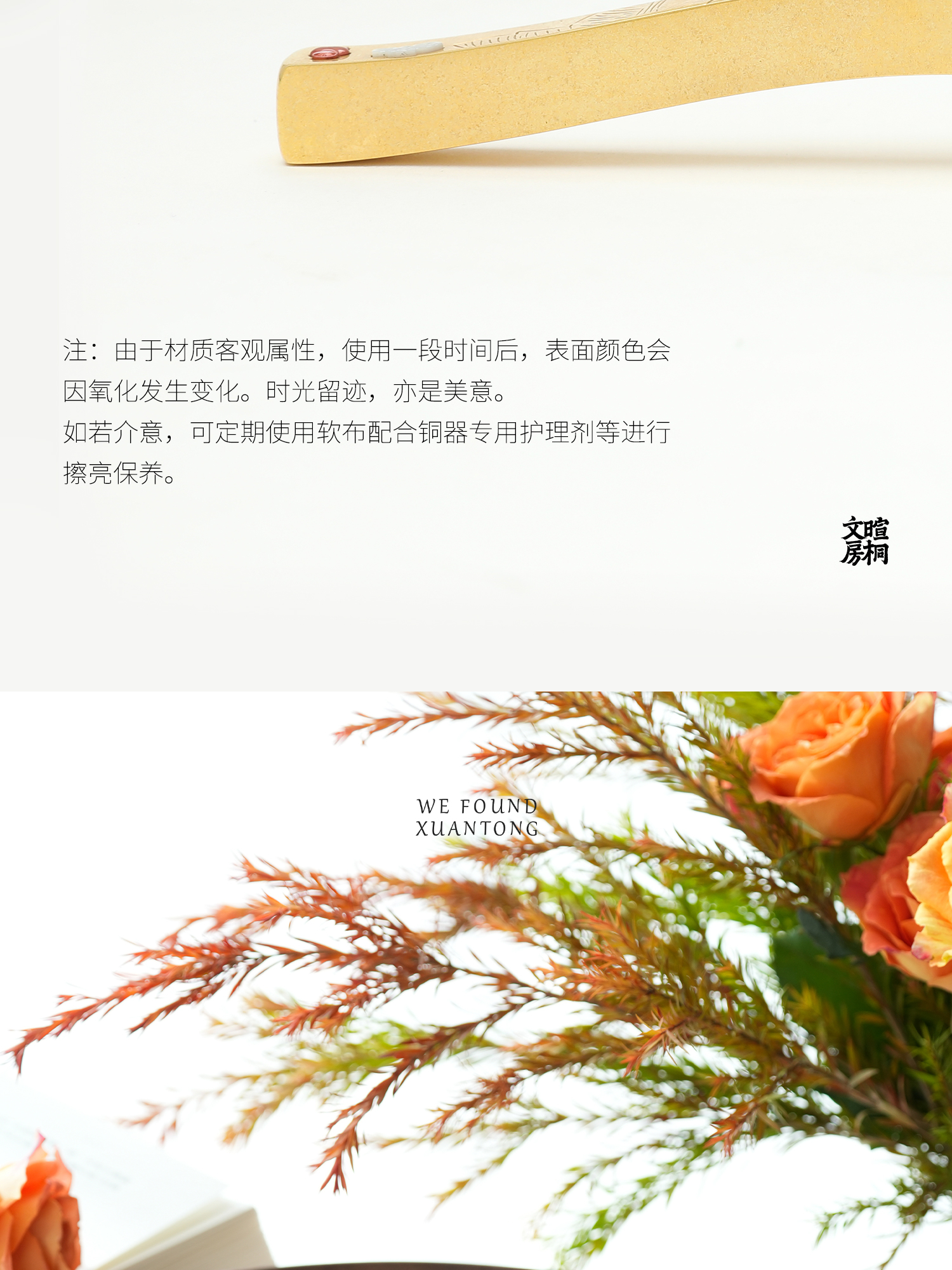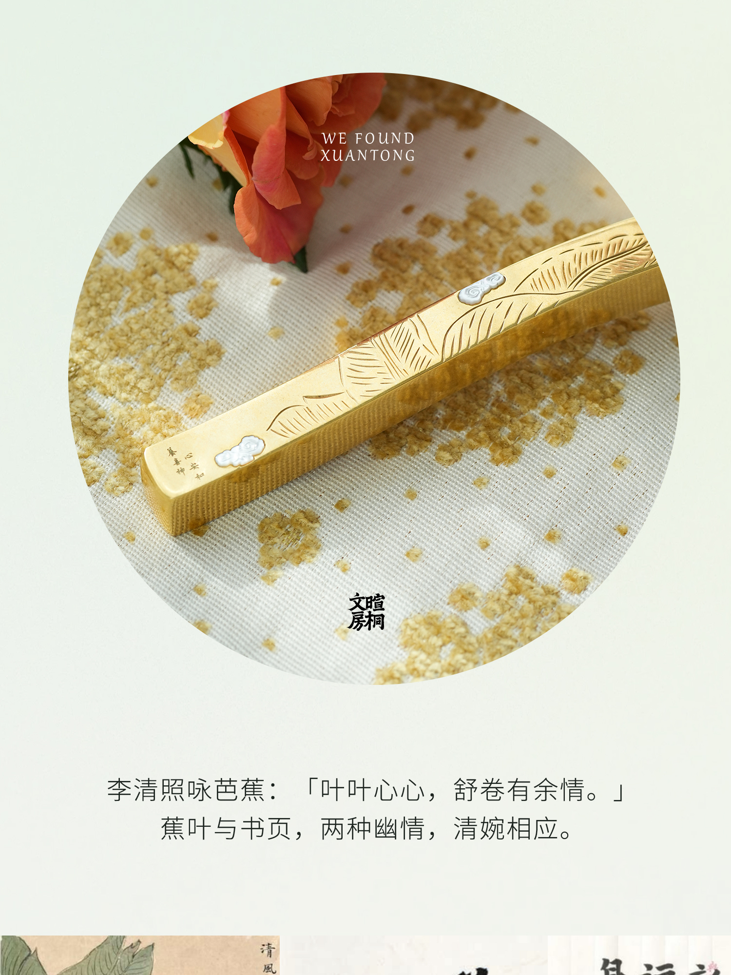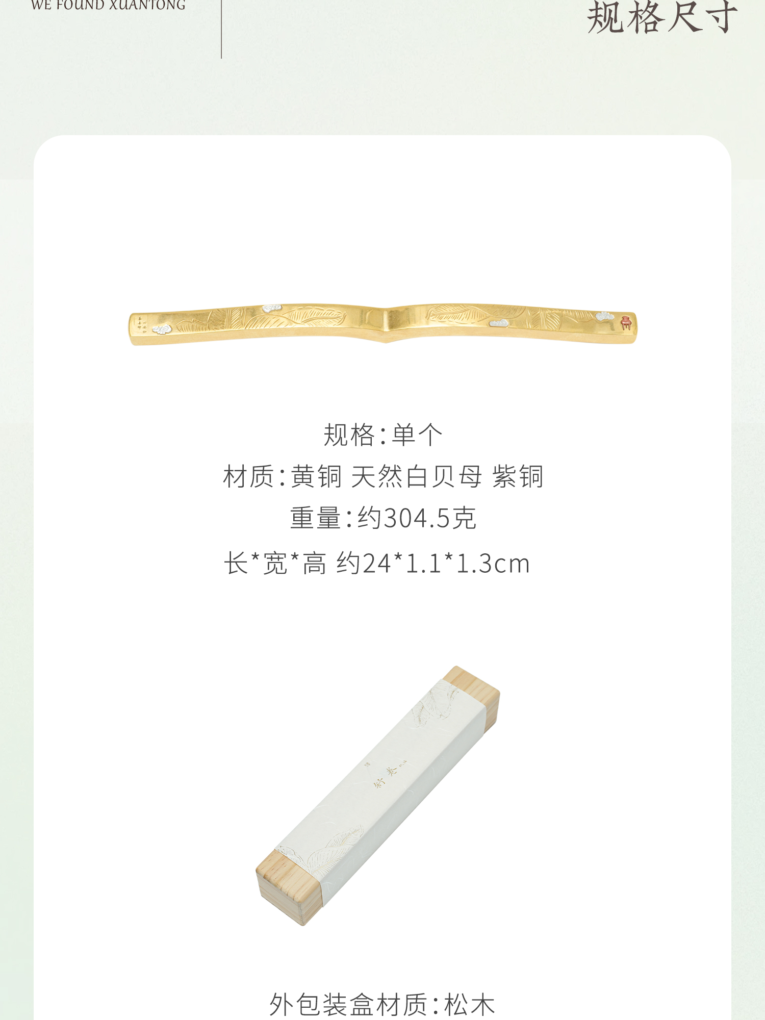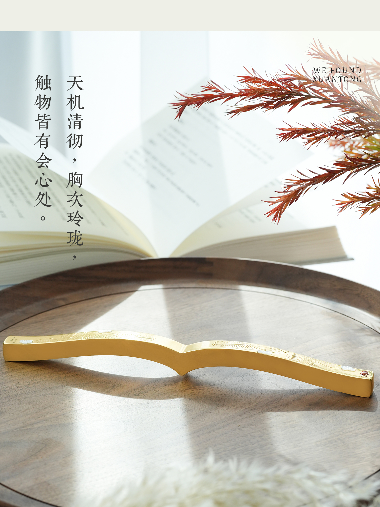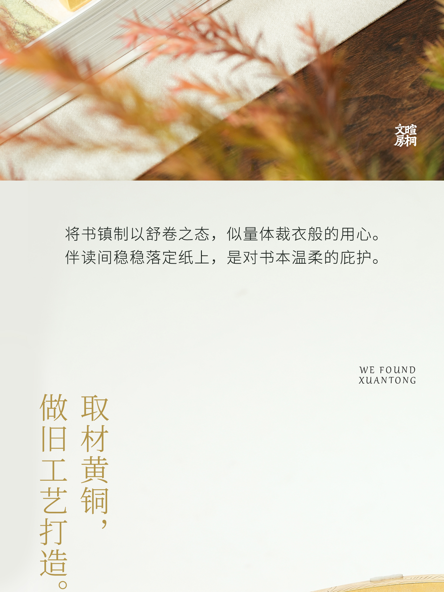 暄桐文房 舒卷纸镇 书镇 黄铜 镶嵌