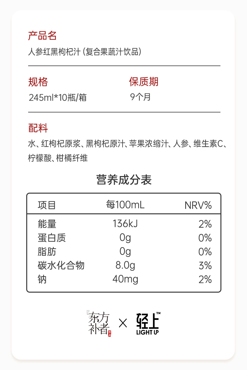 轻上人参红黑枸杞汁饮品熬夜加班补充四季常备