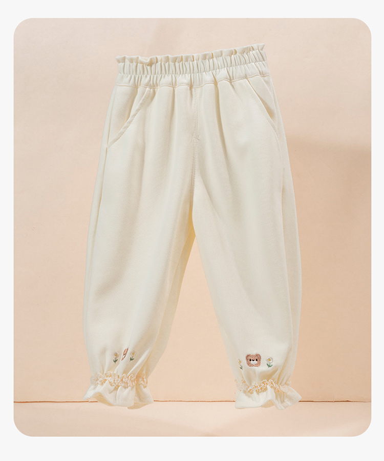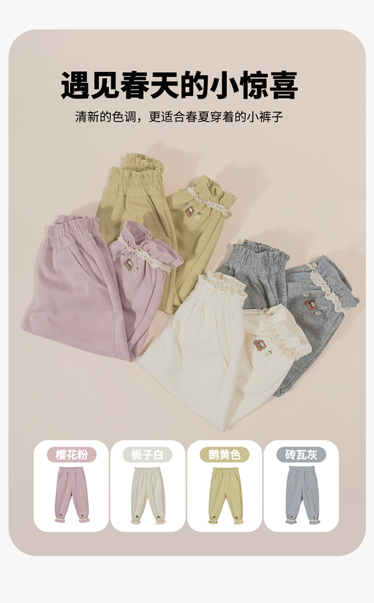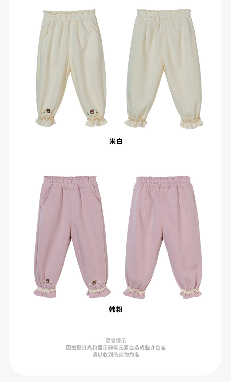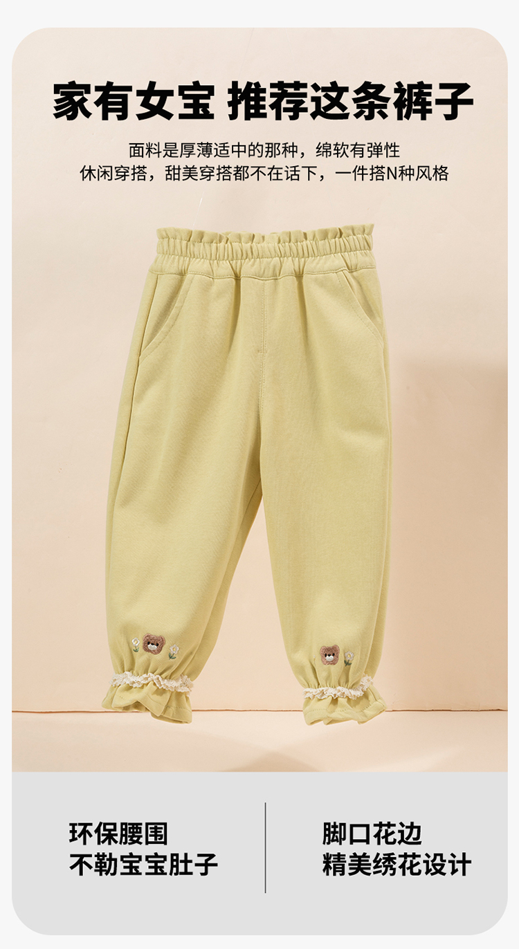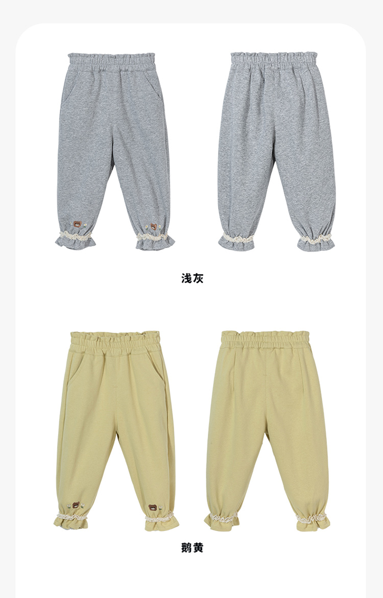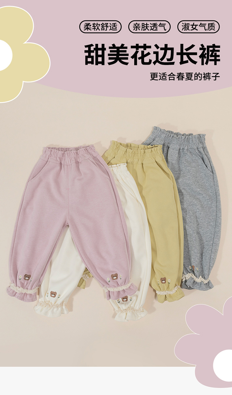 贝贝怡女童裤子2024春秋新款束脚长裤花边脚口多色百搭休闲裤学生裤
