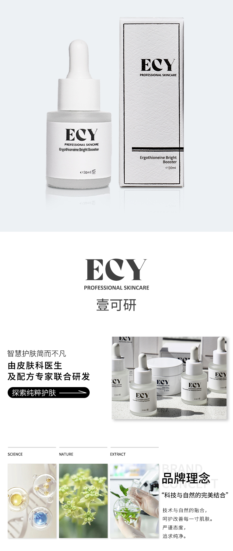 ECY壹可研 w4靓颜菁纯焕肤精华液(麦角硫因白白精华) 30ml
