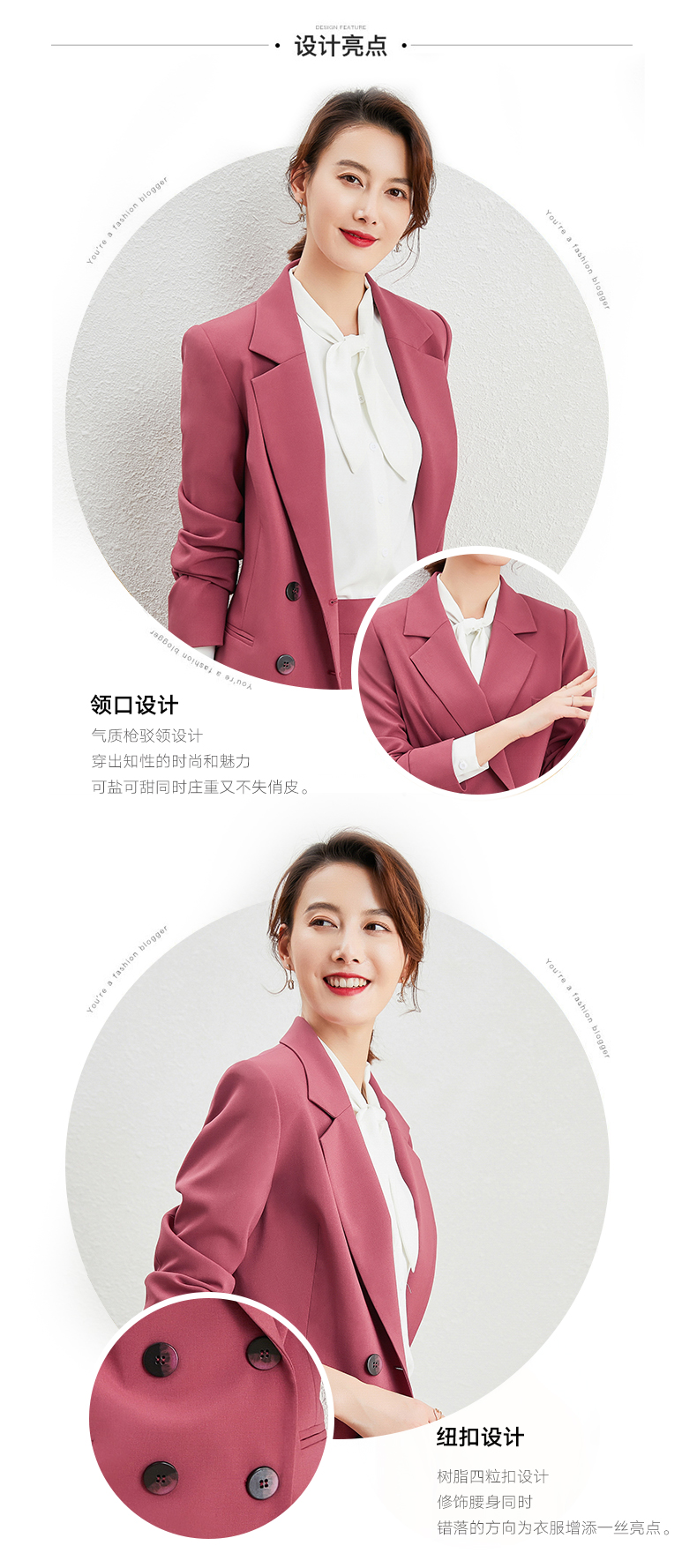 橡皮粉小个子休闲西装外套~休闲时尚通勤西服显白