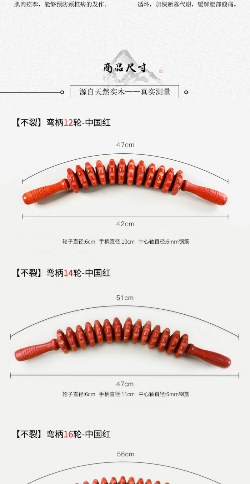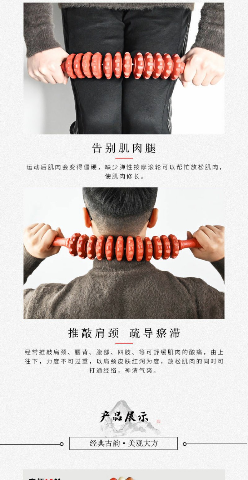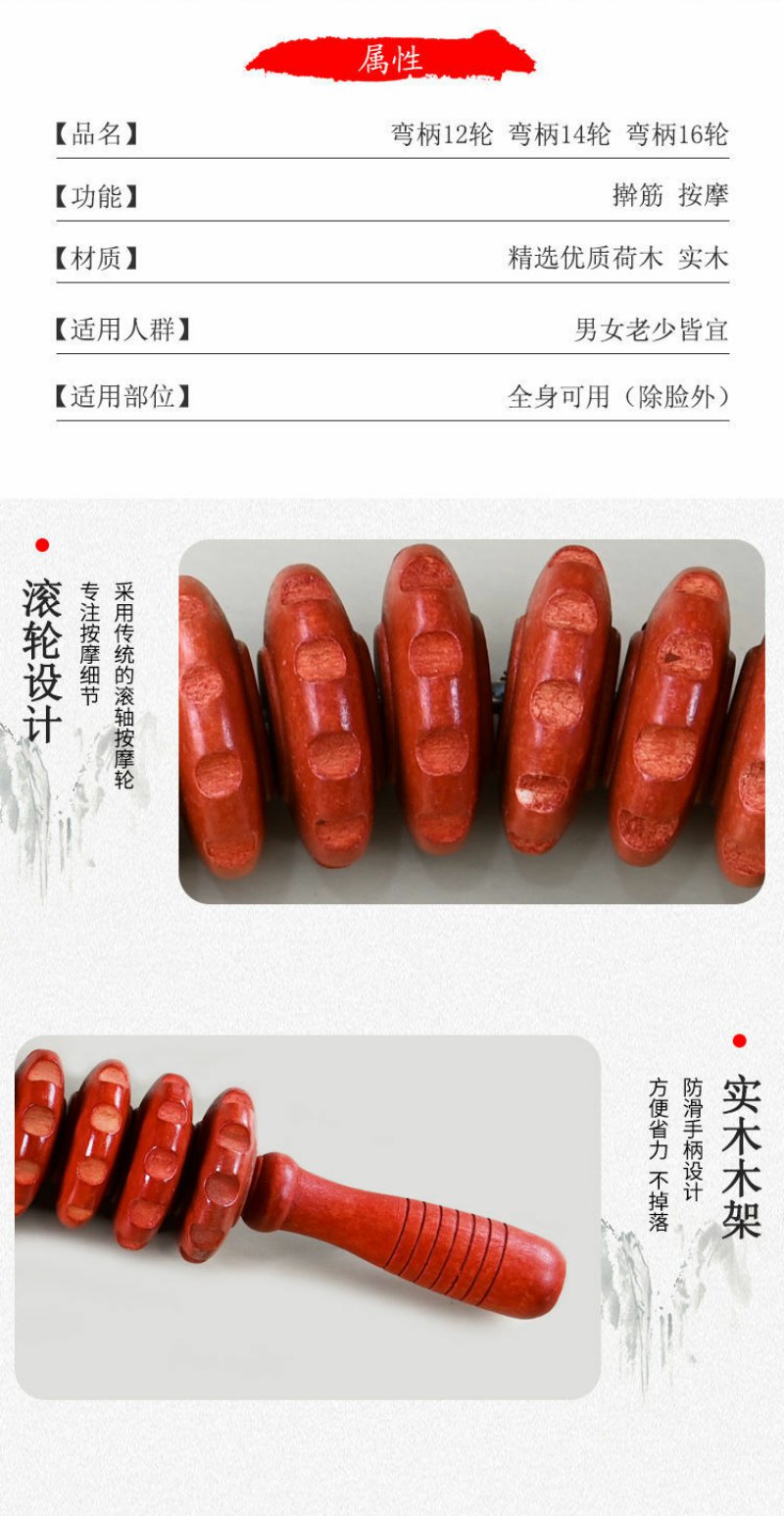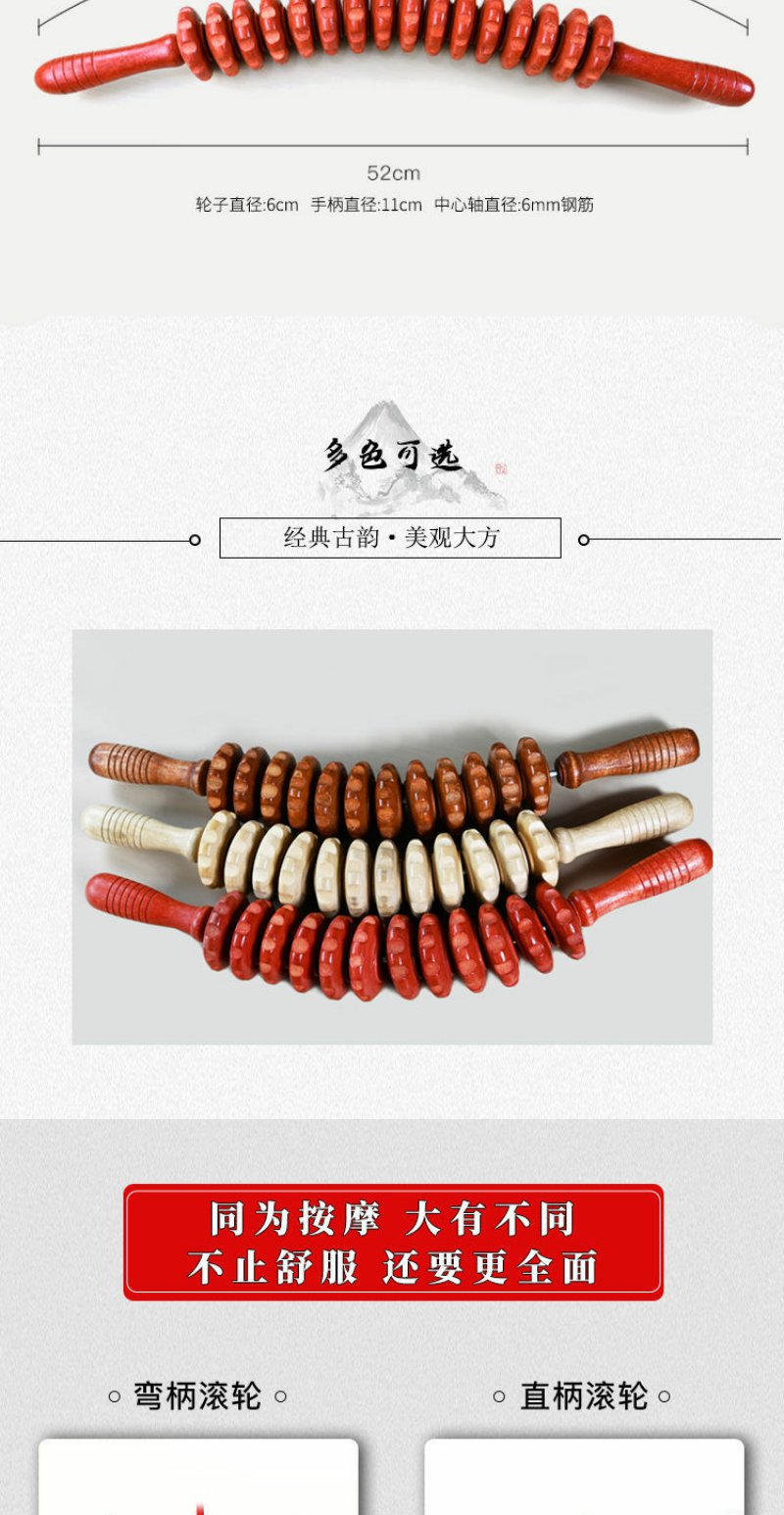 实木弯柄滚轮手动按摩器颈椎背部腰部全身滚筋肌肉放松家用